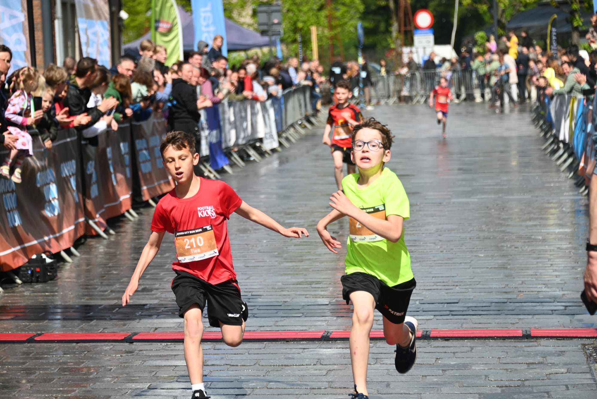 En de jongste deelnemers liepen om 13 uur hun Kids Run. Eerst de 400 meter, en de dappersten onder hen nadien de 800 meter. Hier werden géén eerste plaatsen uitgedeeld, iedere deelnemer kreeg een medaille én een bonnetje voor een ijsje, en dat werd door alle kids ten zeerste gesmaakt!