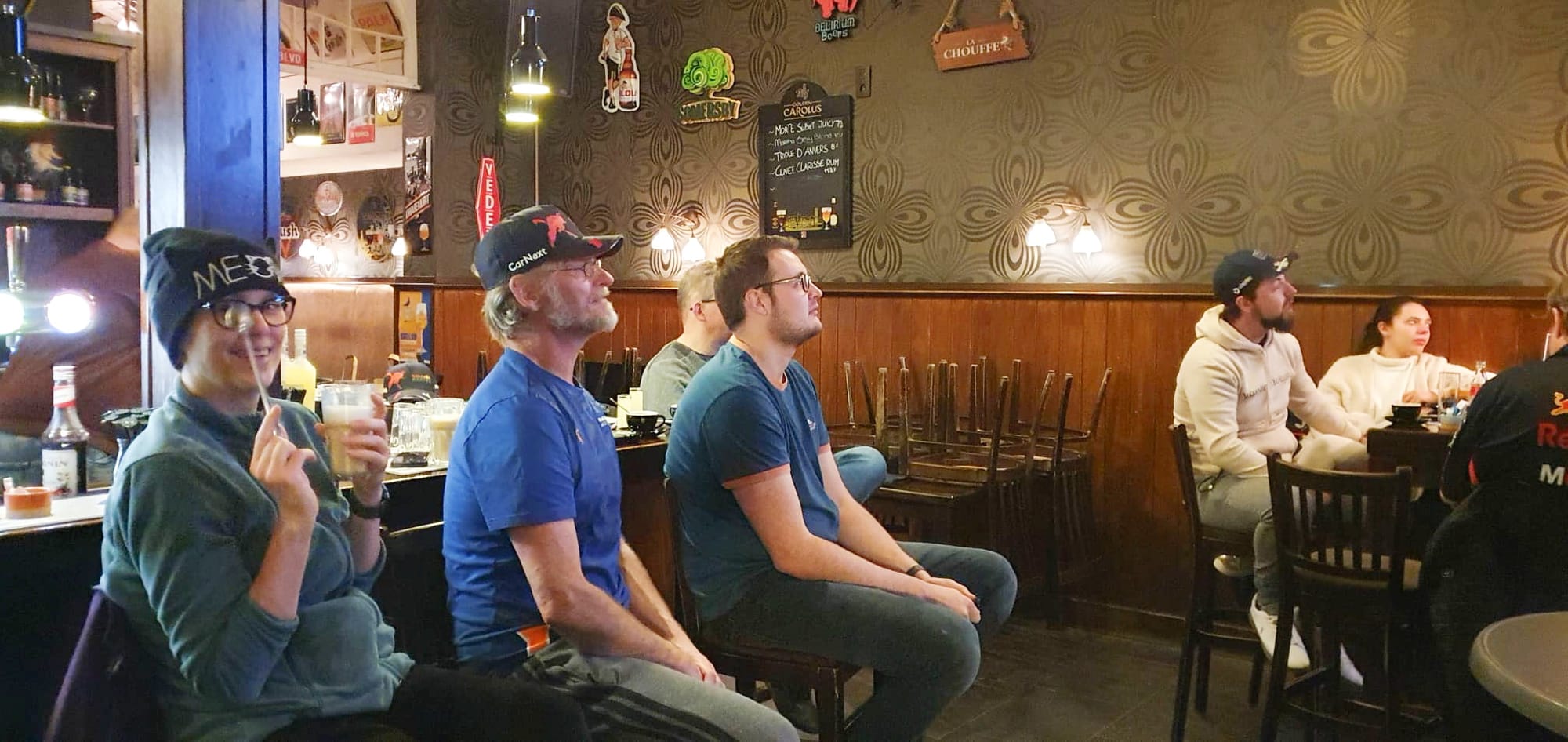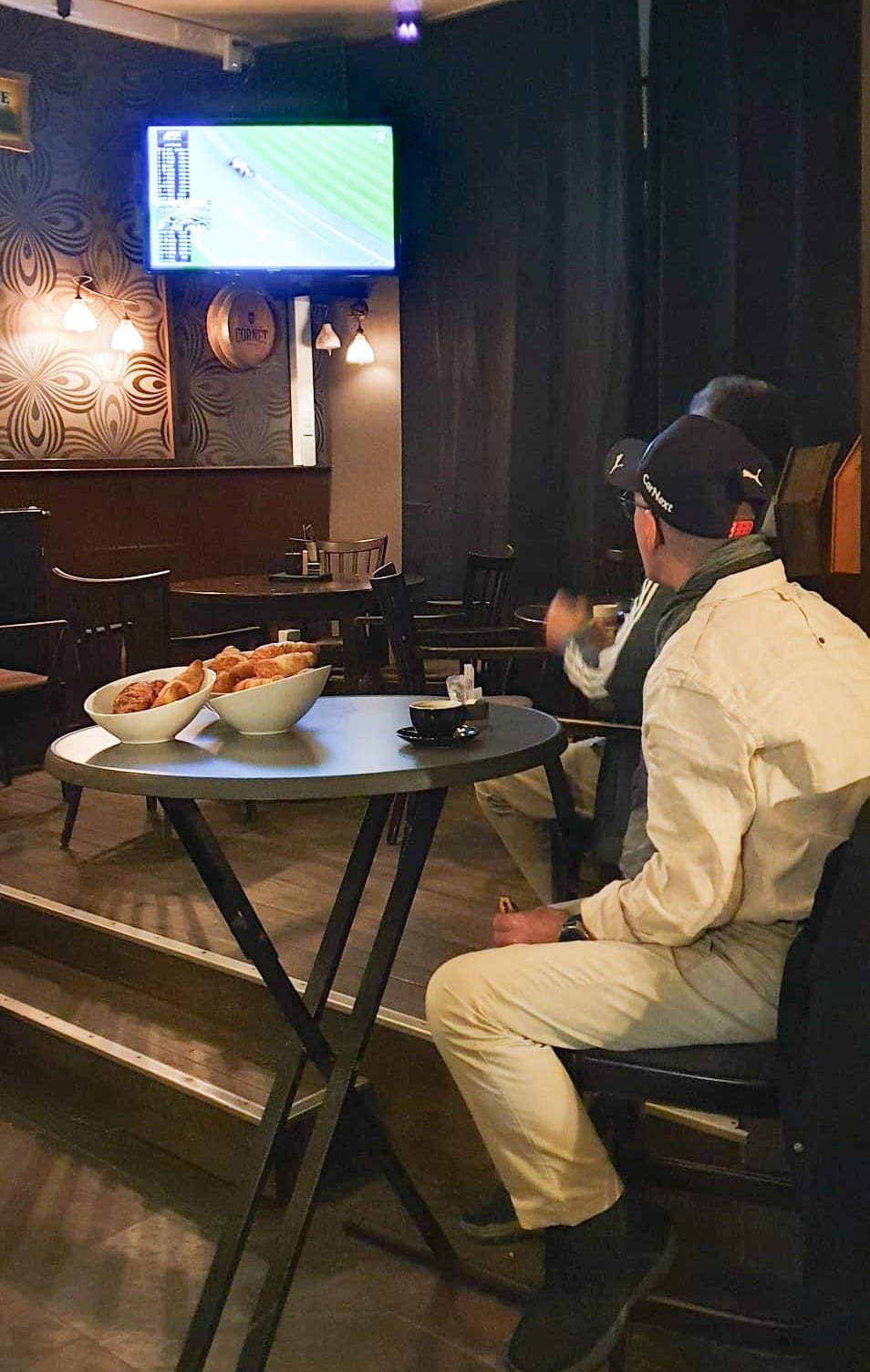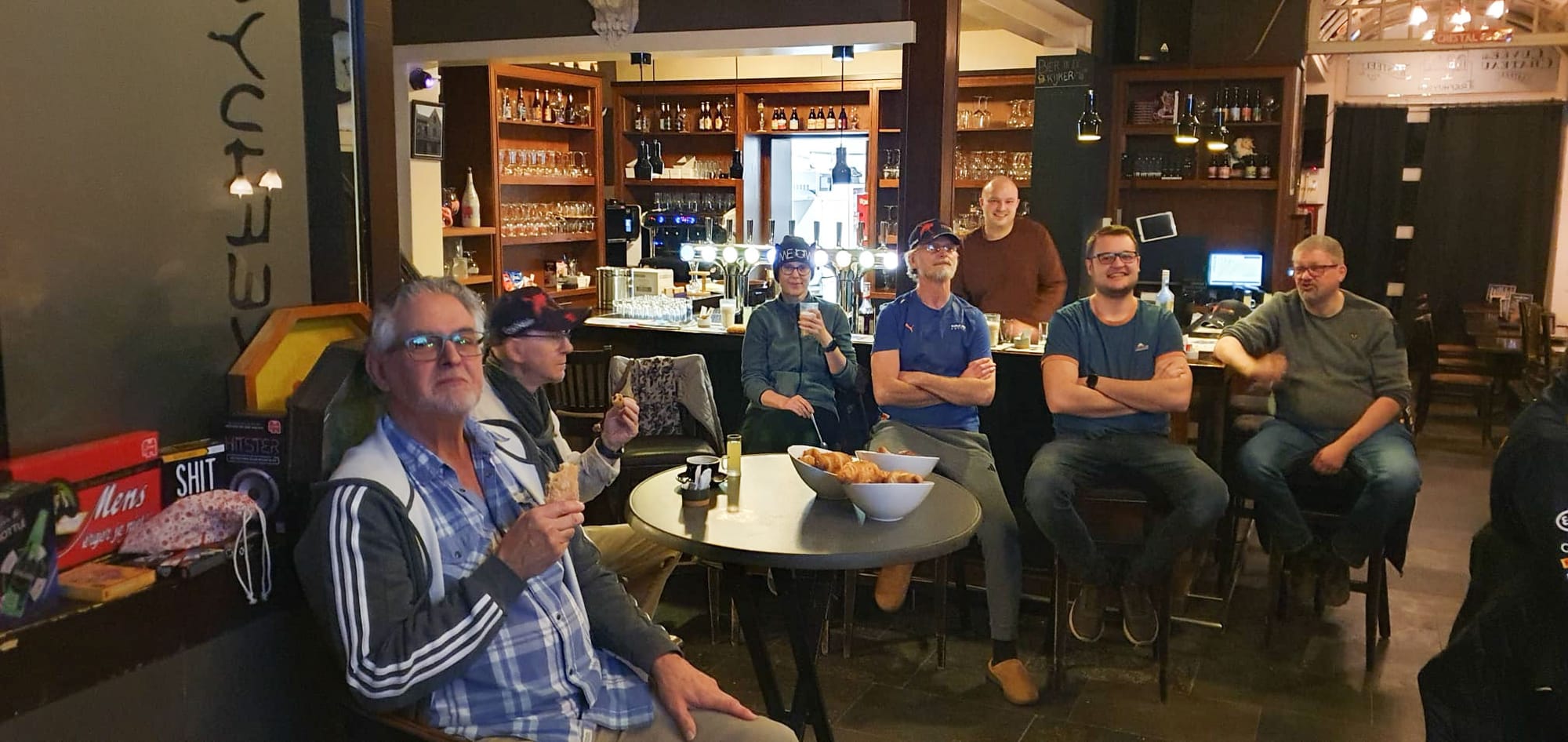 Vanmorgen om 5 uur (!!!) trakteerde het Trefhuysch de klanten op een ontbijt terwijl ze naar de Formule 1 keken. Er waren zelfs koffiekoeken voorzien, en koffie, maar ook limocello. Het was er bijzonder gezellig zo op een vroege zondagmorgen...