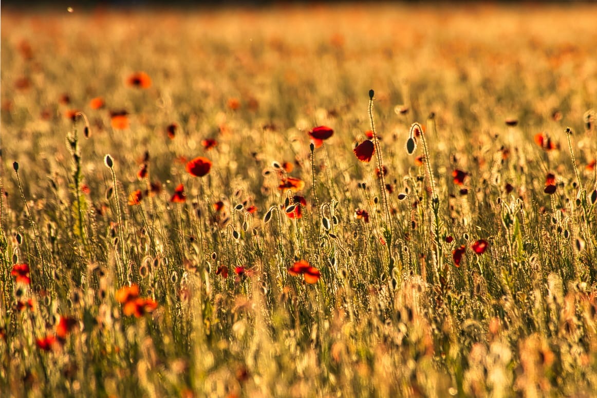 Alweer zo een bijzonder knap reeksje van Jan Thomas... Een veld vol klaprozen, dansend in het zachte licht van de zonsondergang.
