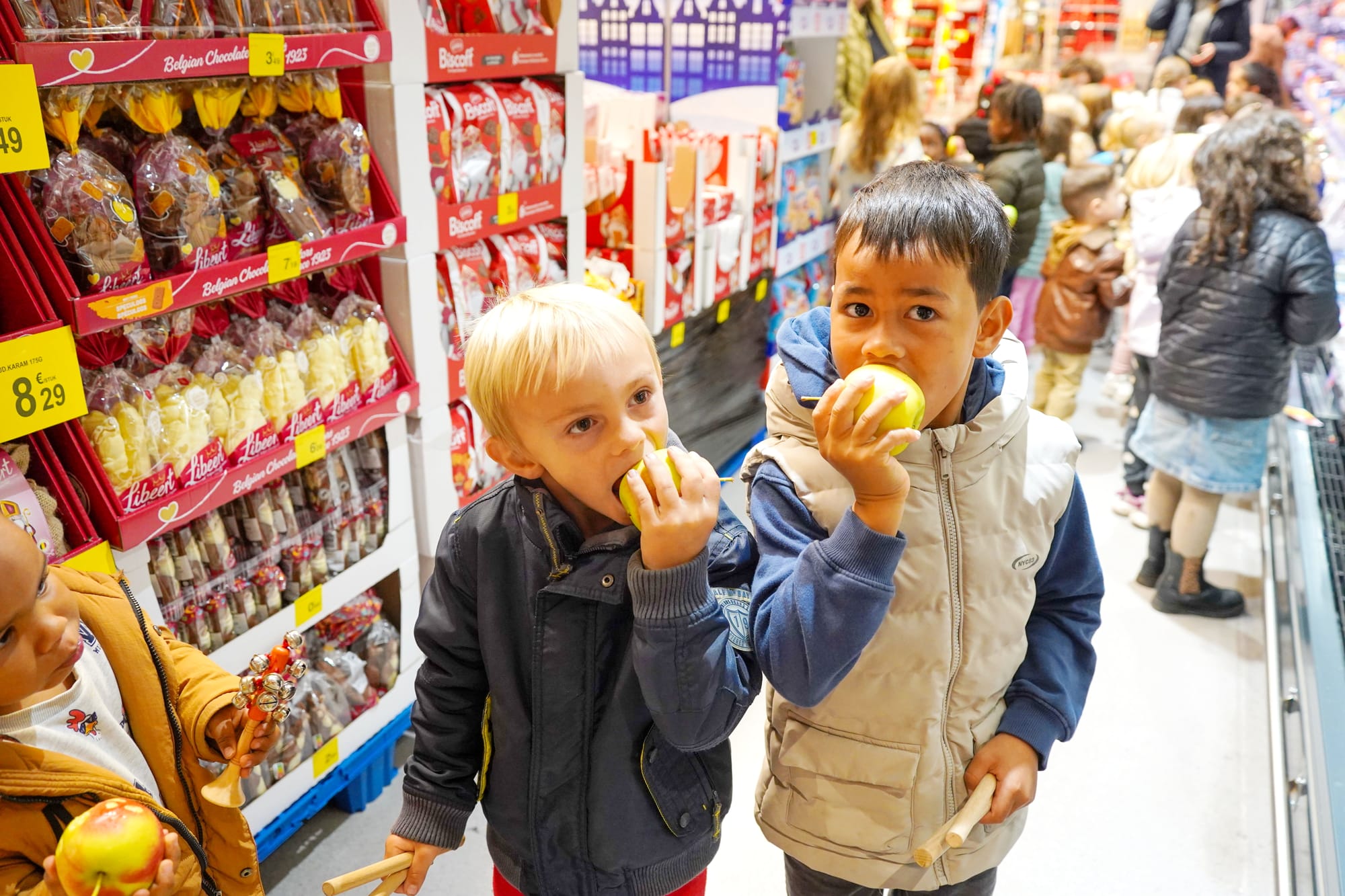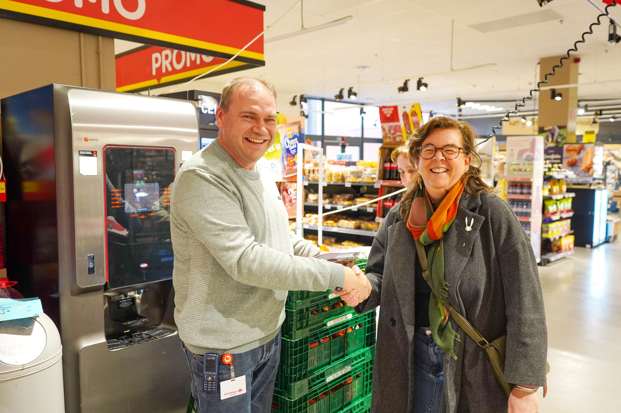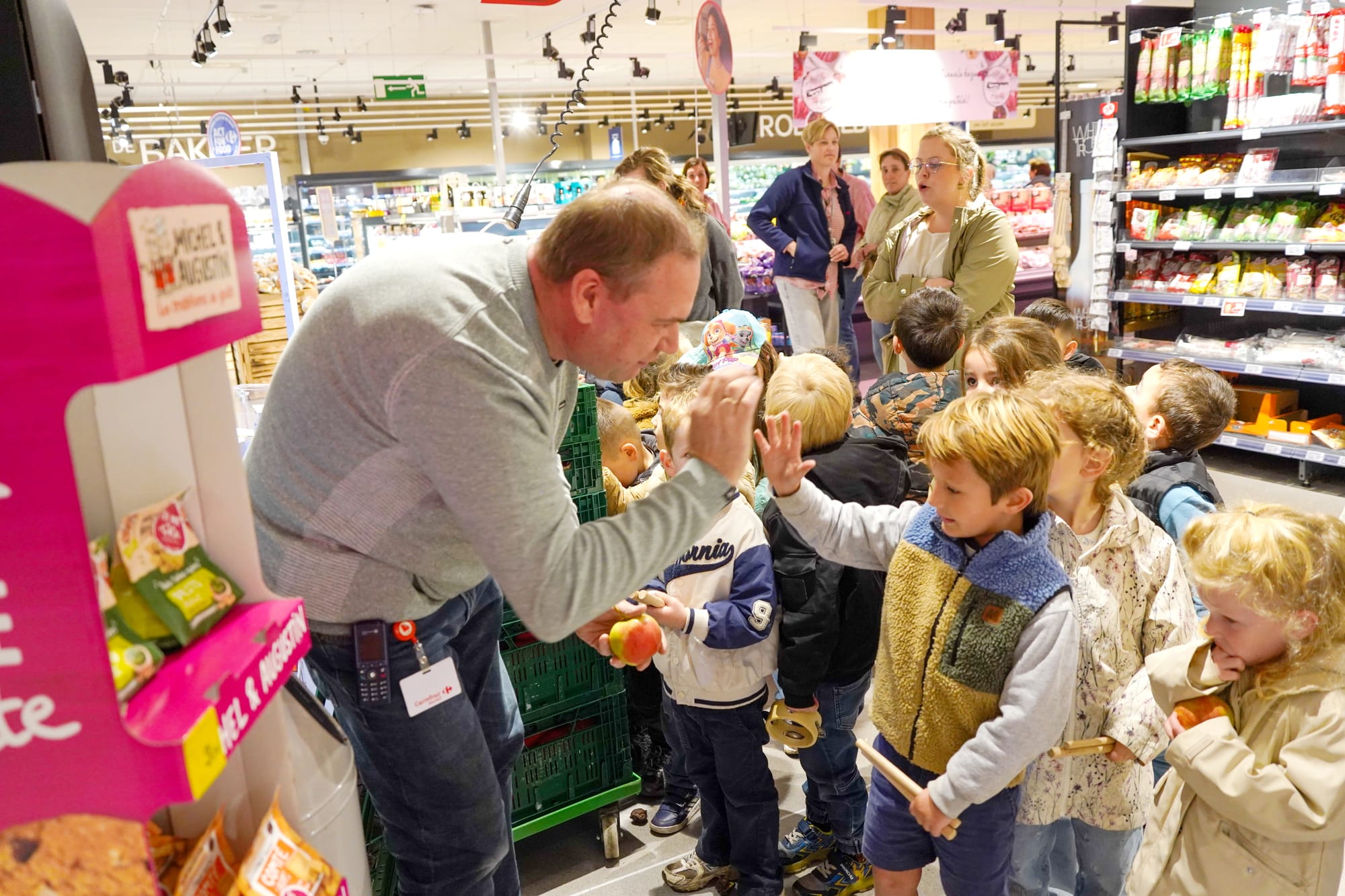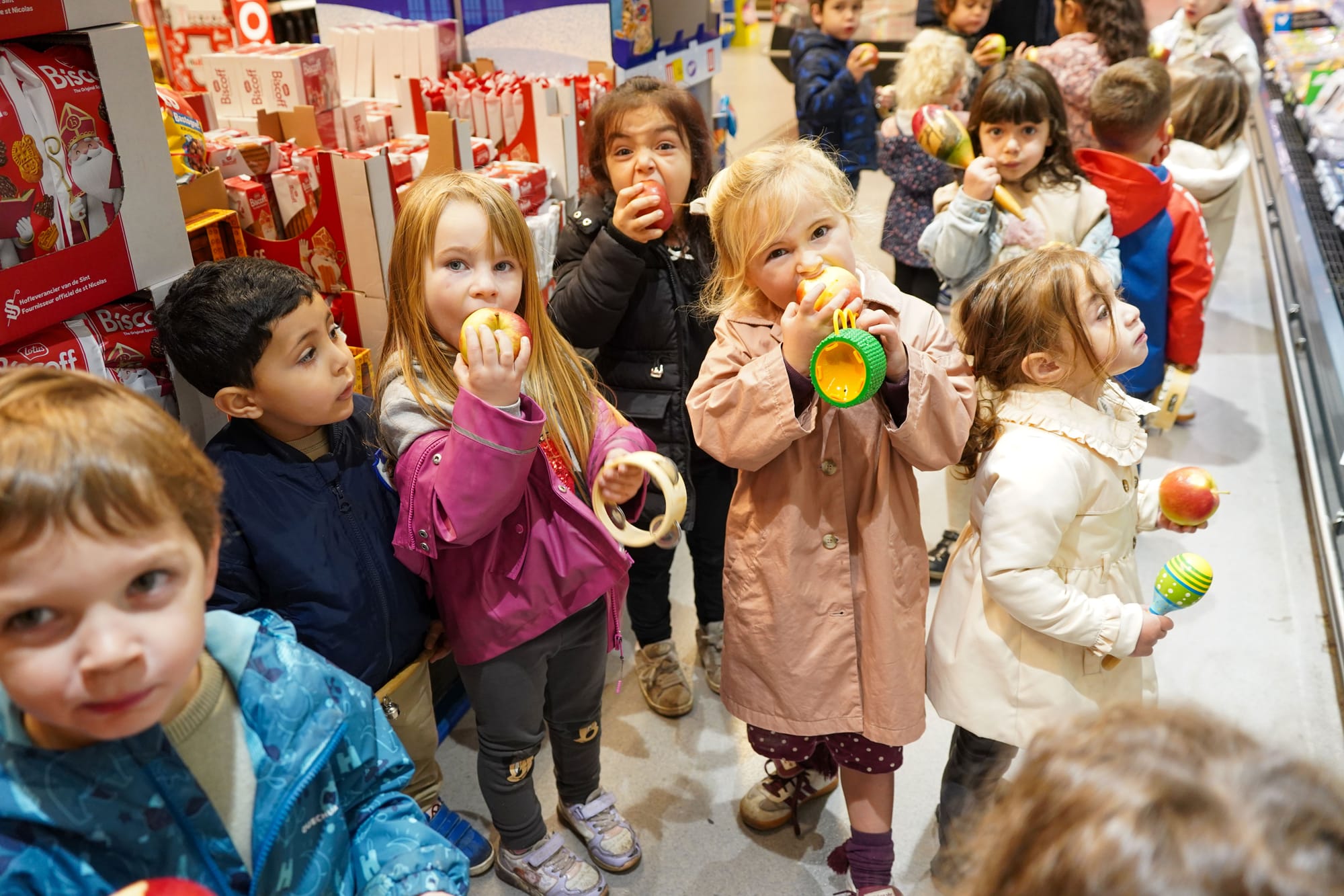 Ook bij Carrefour Alma konden ze het gebaar van de kleuters duidelijk waarderen. “De zang en glimlach van de kinderen maakten onze dag helemaal goed,” aldus een medewerker. Om hun waardering voor de school uit te drukken kreeg de school nog iets lekkers mee voor alle kleuters.