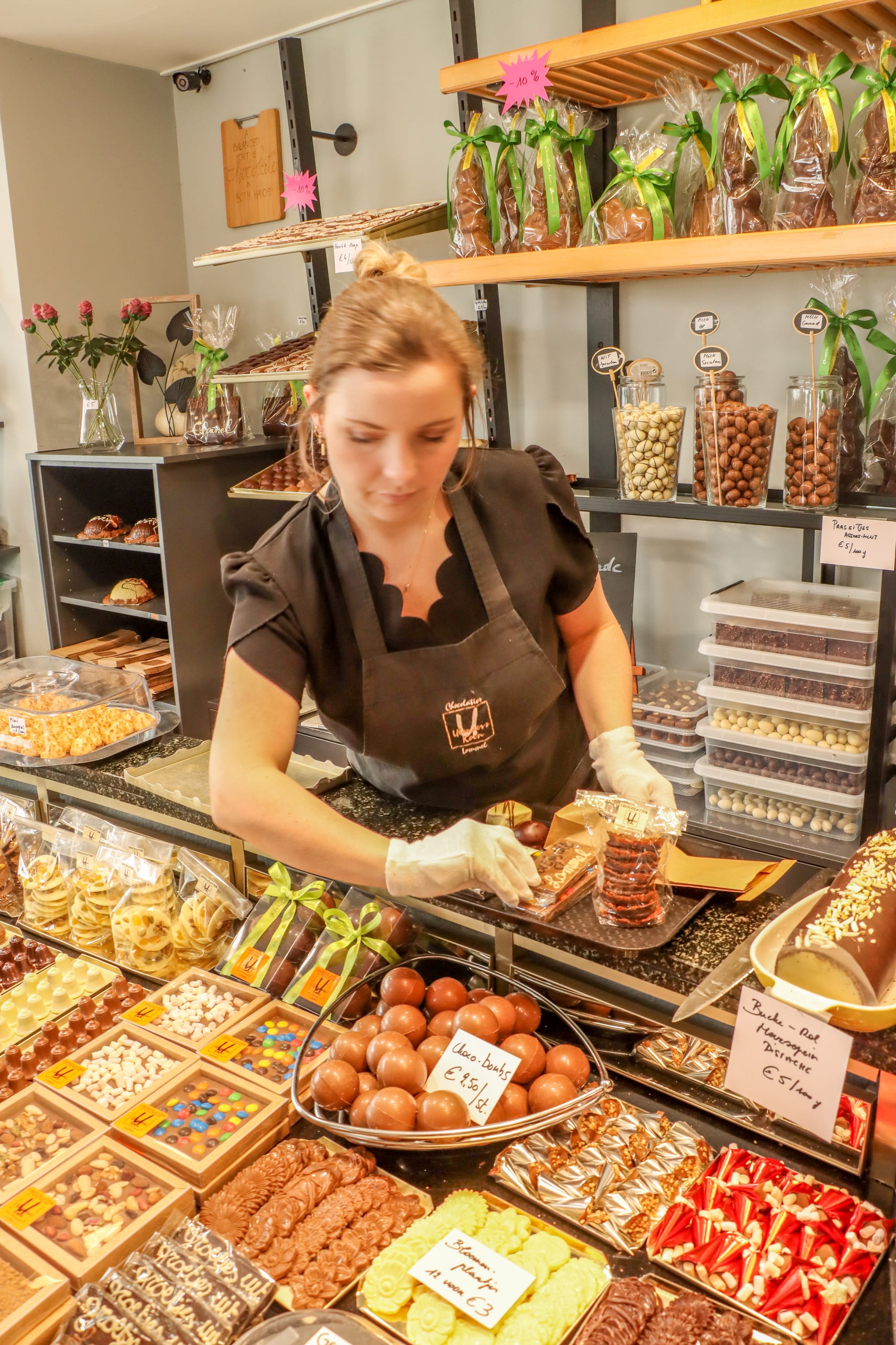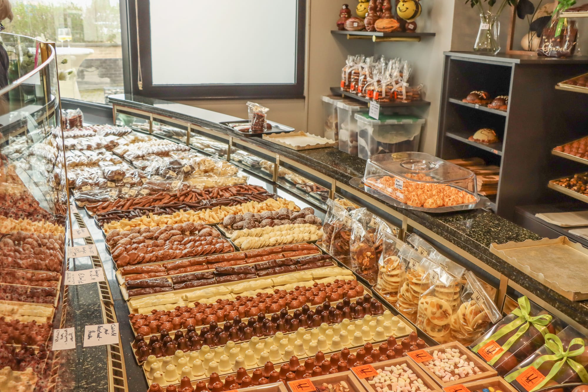 “Wij zijn misschien niet de grootste chocolaterie,” vertelt Ulenaers, “maar we zijn wel de enige in de buurt waar alles nog volledig in eigen chocolaterie gemaakt wordt.”