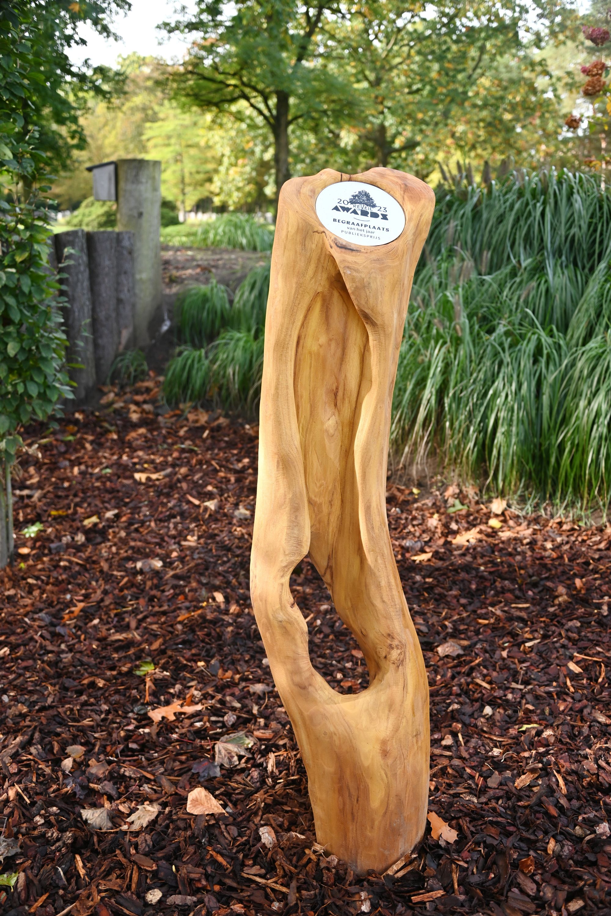 Afgelopen donderdag werd deze titel al officieel overhandigd in Sint-Niklaas, vandaag volgde de onthulling van het daaraan gekoppelde kunstwerk. Het werd helemaal vooraan op de begraafplaats geplaatst, zodat alle bezoekers het onmiddellijk in het oog krijgen... Het behelst een houtsnijwerk van de hand van kunstenaar David Daems geplaatst.