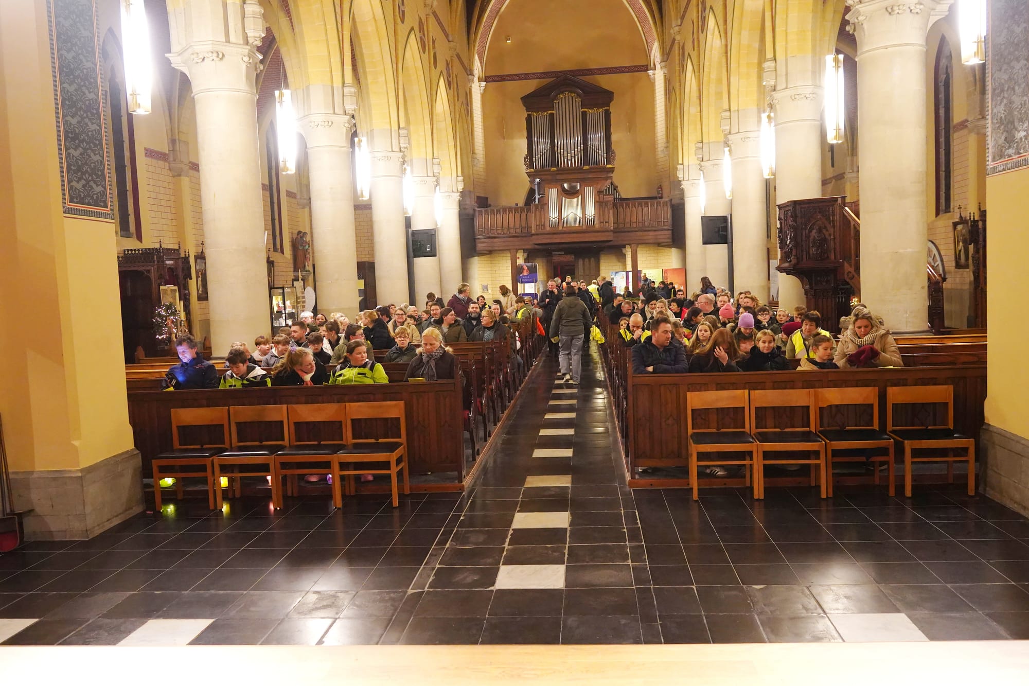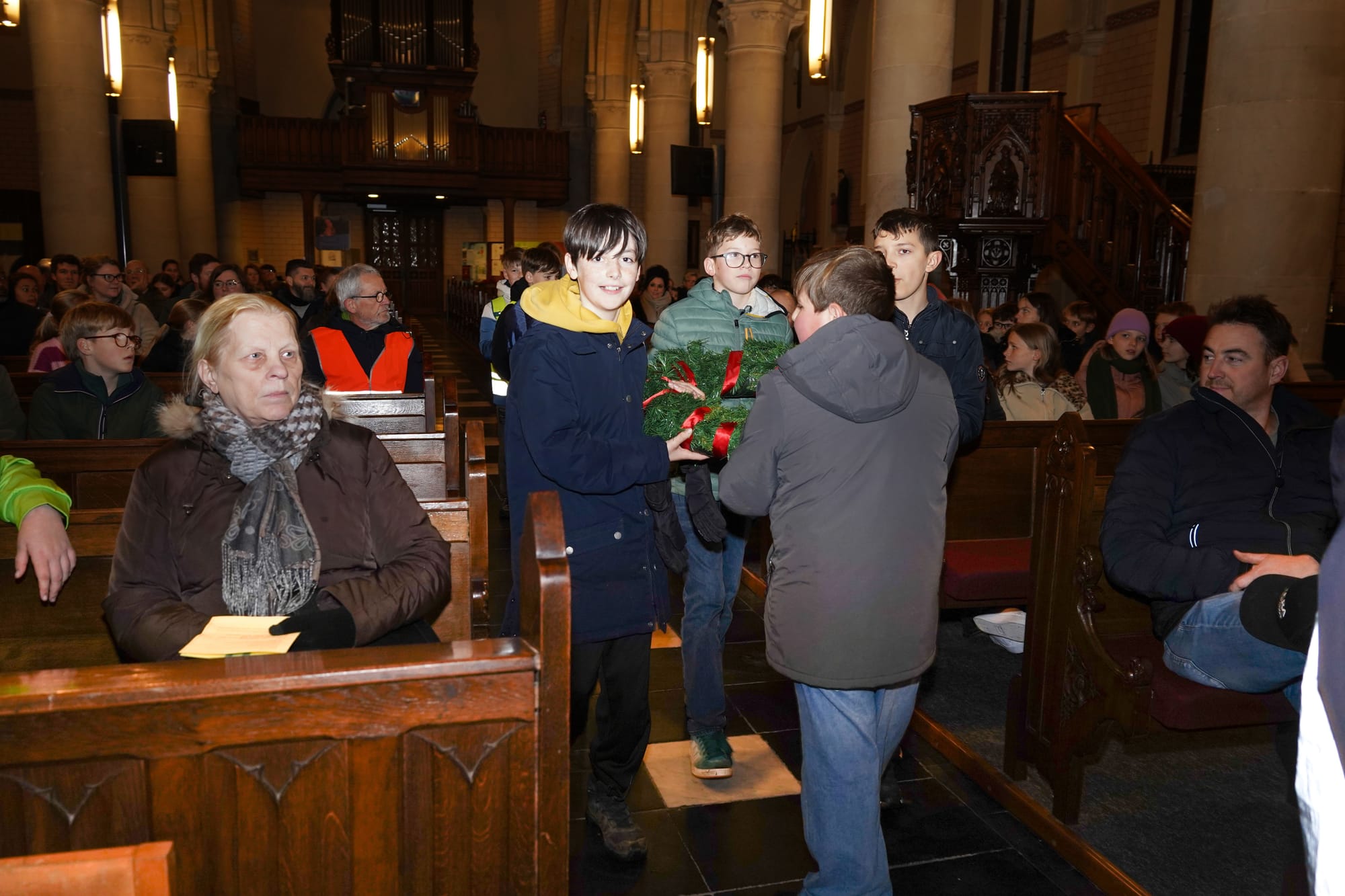 Daarna ging het samen naar de kerk waar er gezongen en gebeden werd. Ook werd er een tekst gelezen over de vier engelen, waarbij een kaars werd aangestoken en bij de adventkrans werd gezet. Tot slot konden de kinderen een foto laten maken bij de engelenvleugels en kregen ze ook nog een koetjesreep bij het buitengaan. Het was een mooie tocht met heel veel volk...
