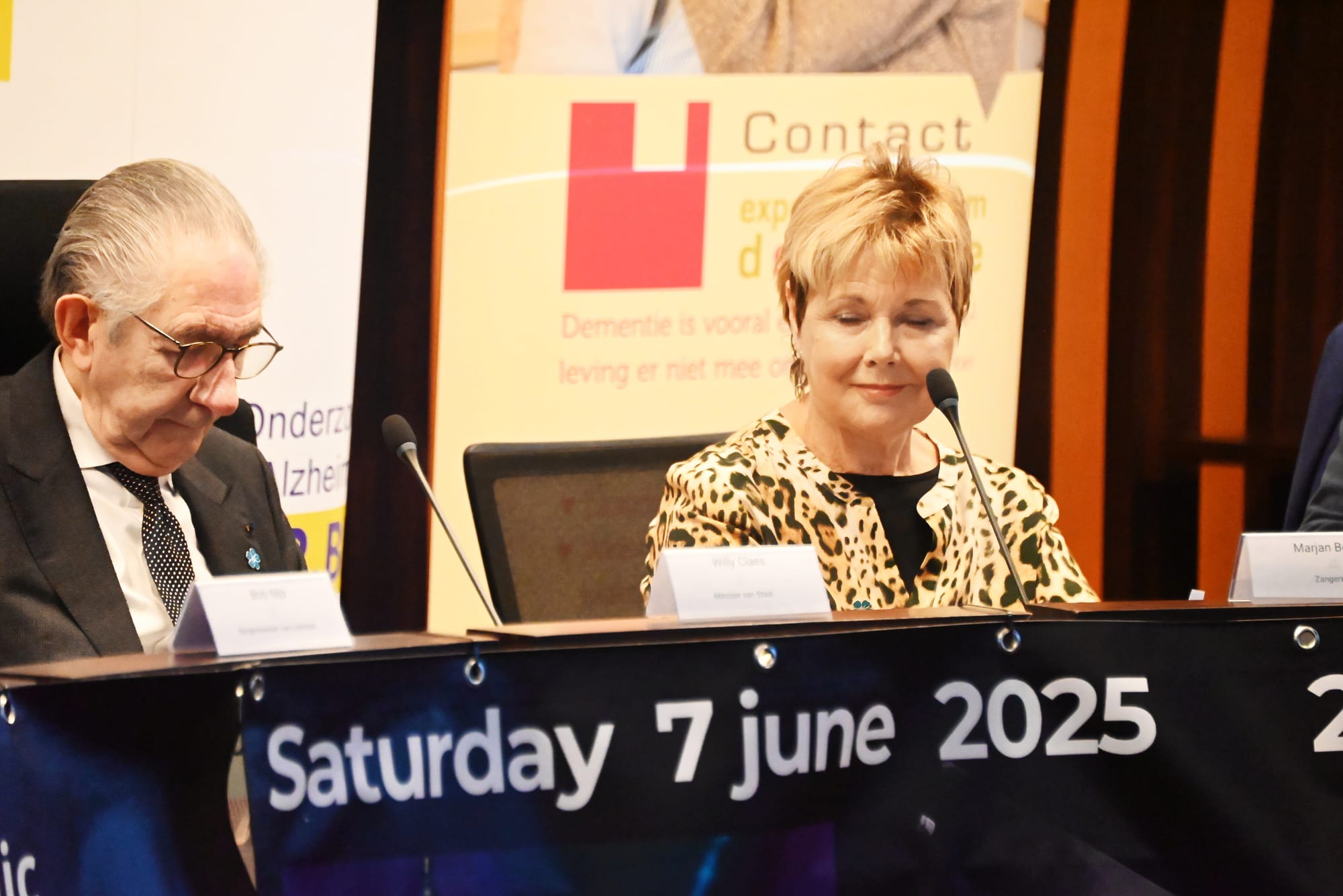 Tijdens dit persmoment kregen we een aantal sterke persoonlijke verhalen van Andrea Croonenberghs die vertelde over haar moeder, Marjan Berger die het had over haar man Guy, en Willy Claes die ook een persoonlijk verhaal had over een persoonlijke vriend van hem, nl. Willy Declerck. Daarnaast brachten de experts/professoren ook hun kijk op het Alzheimeronderzoek, waaruit bleek dat de komende decennia vooral Limburg zwaar zal getroffen worden door deze ziekte, nl. met 31% van de bevolking, tegenover 24% in de rest van Vlaanderen. Ook kwamen we te weten dat er ondertussen een eerste medicijn op de markt is, al sinds vorig jaar in China en de US, maar dat Europa eerst weigerde. Maar sinds twee weken is Europa bijgedraaid, en gaat het ook hier verkrijgbaar zijn.