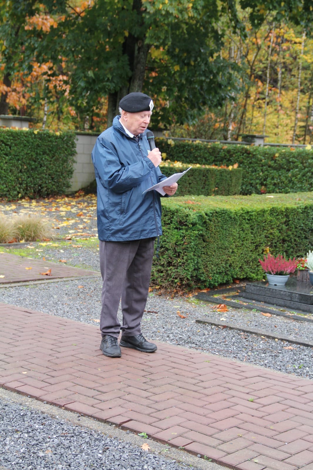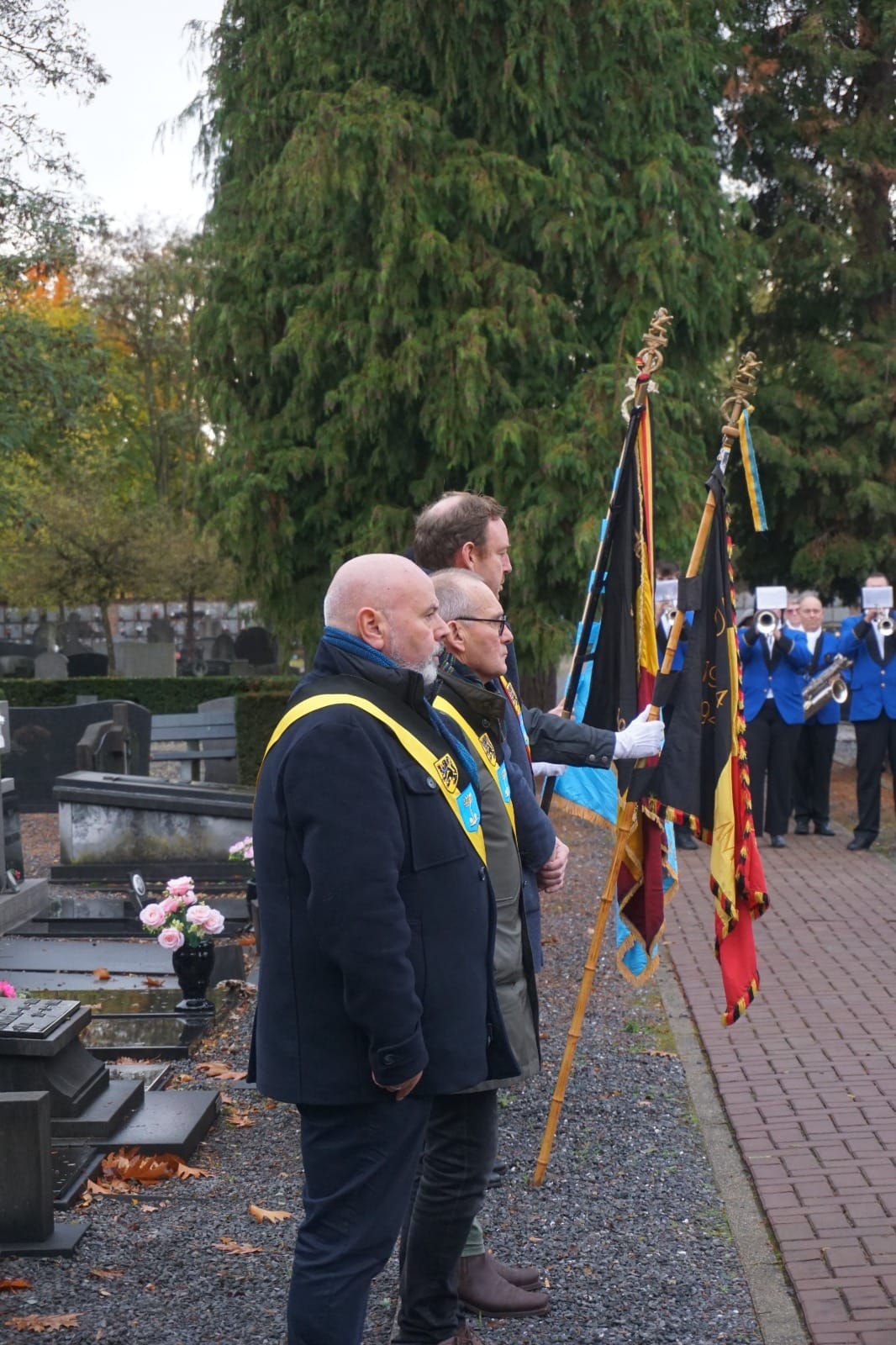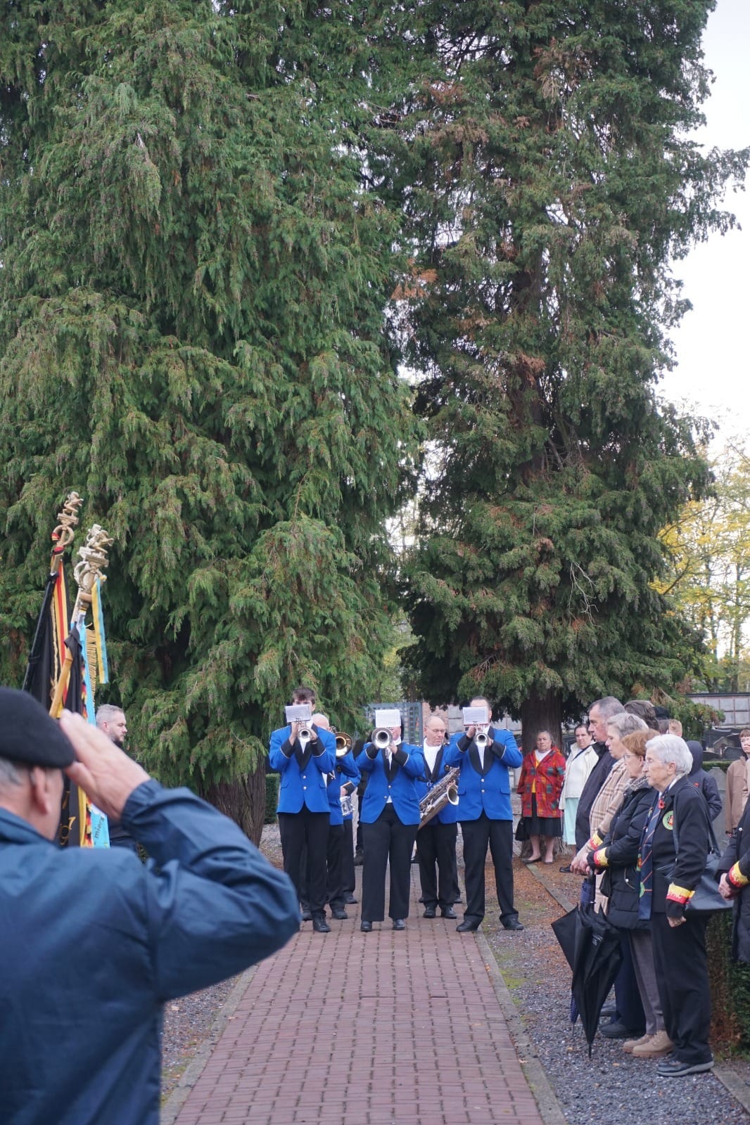 In aanwezigheid van burgemeester Bob Nijs, schepen Vanderkrieken en schepen Verstraeten, legden de leden van de Nationale Strijdersbond een krans neer aan het monument ter ere van de oudstrijders van de Eerste Wereldoorlog. Vervolgens brachten de burgemeester en schepenen hulde aan de oudstrijders, verzetsstrijders, krijgsgevangenen en politieke gevangenen van de Tweede Wereldoorlog .