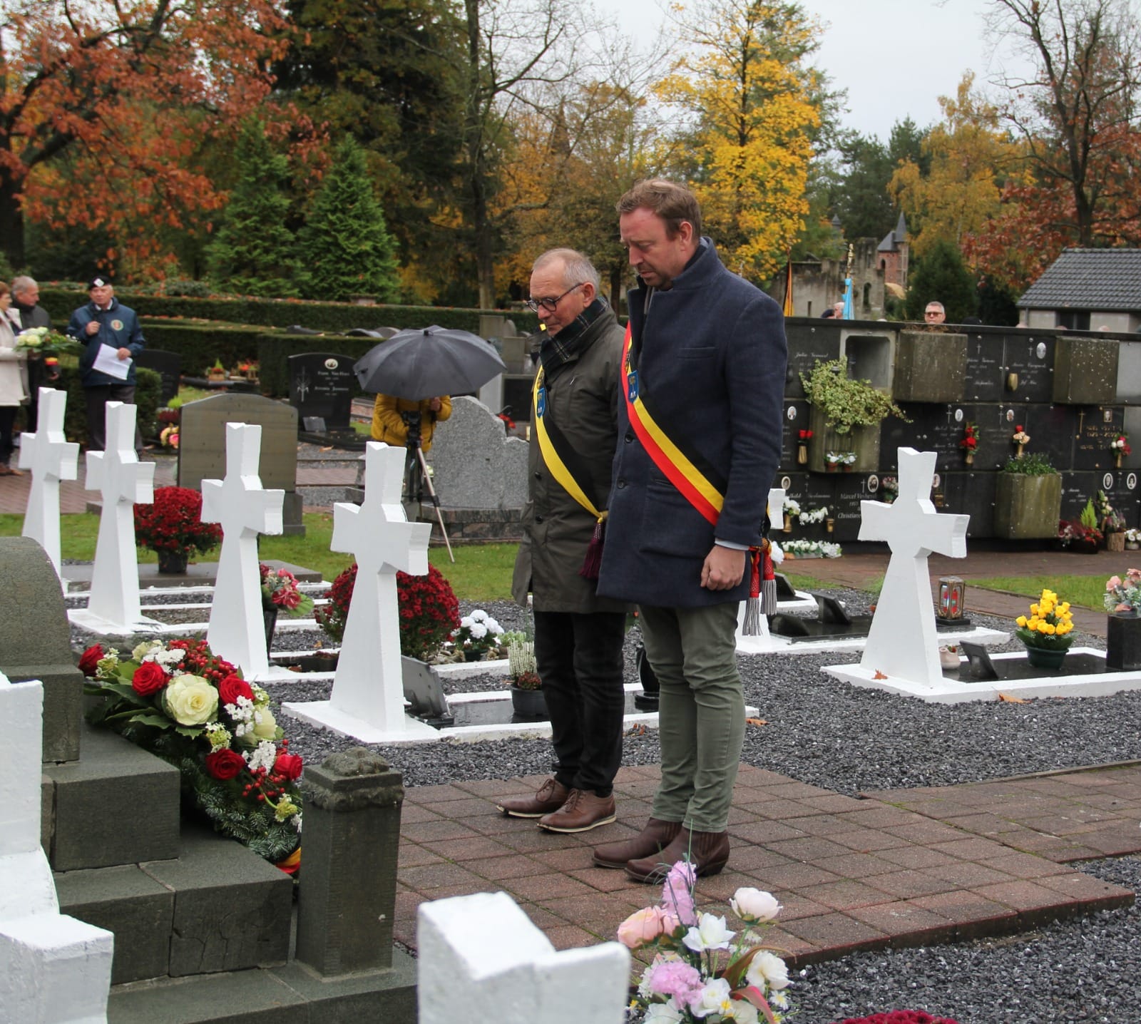 De namen van de gesneuvelden — Gerardus Truyes, Leopoldus de Graaf, Dominicus de Graaf, Arnoldus Truyens, Gijsbertus Janssen, Josef Van Brabant, Henricus Ercken en Julius Coenen — werden met eerbied genoemd. Ook hier werden bloemen neergelegd als teken van dankbaarheid en herinnering.