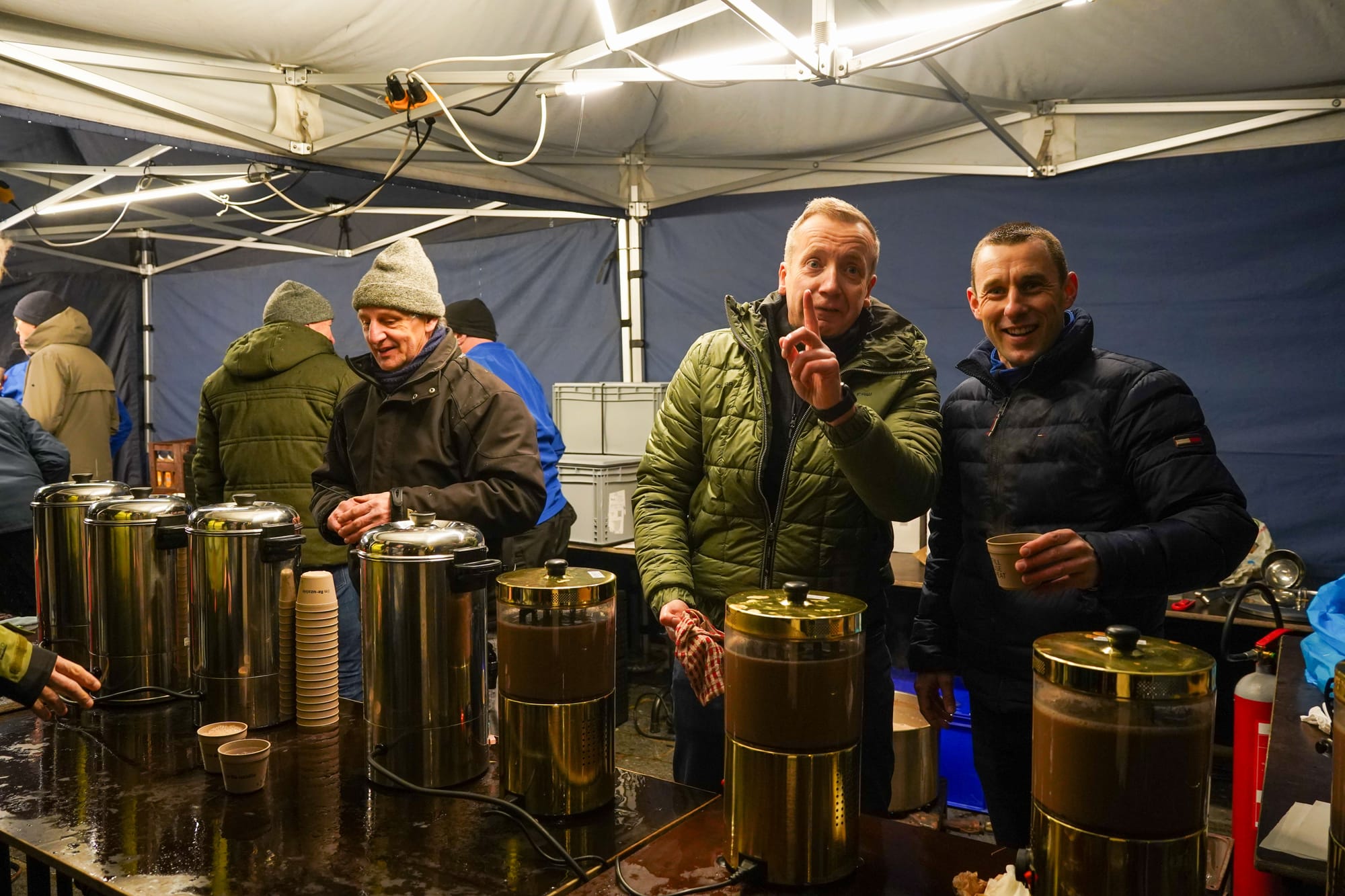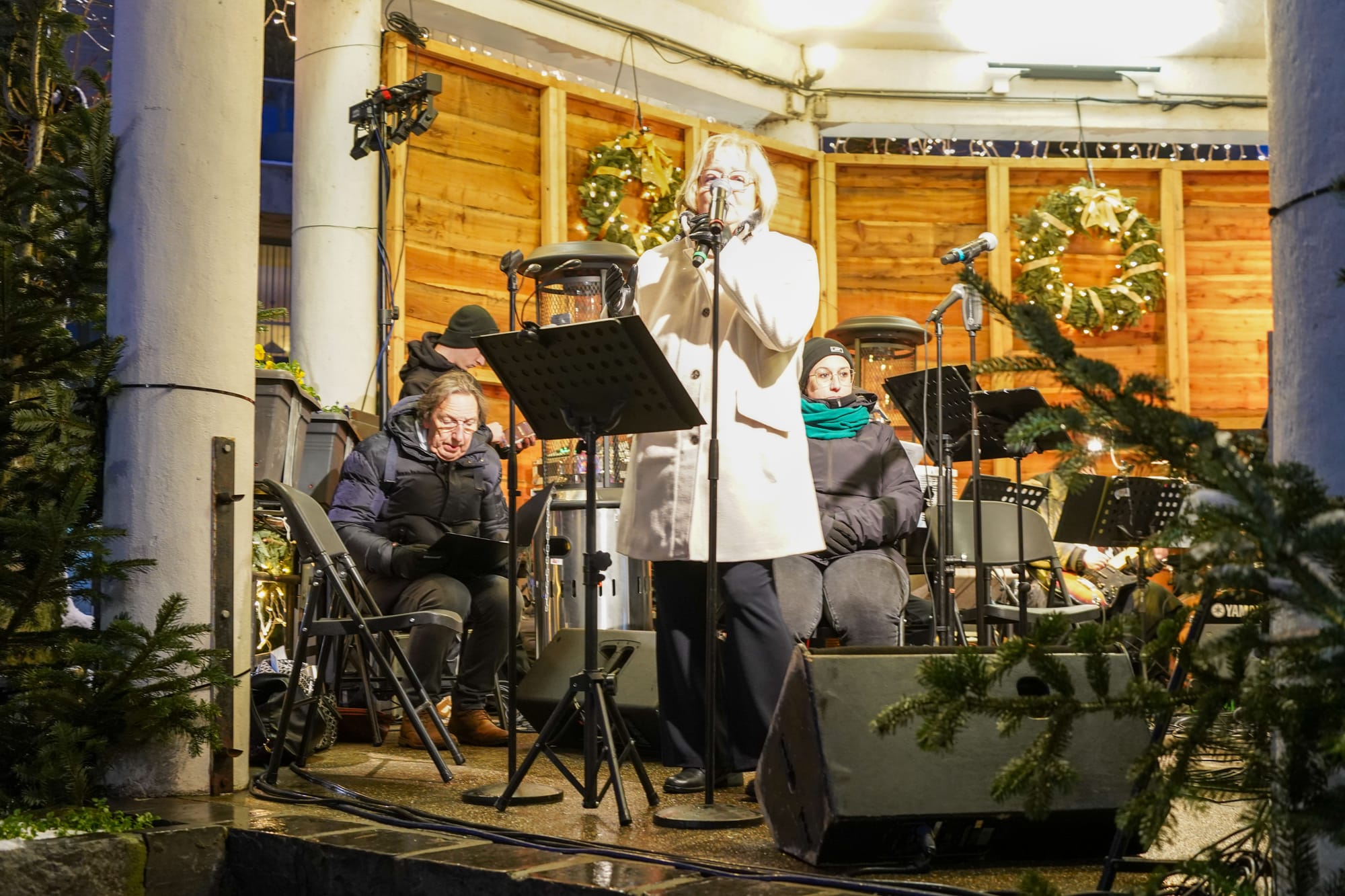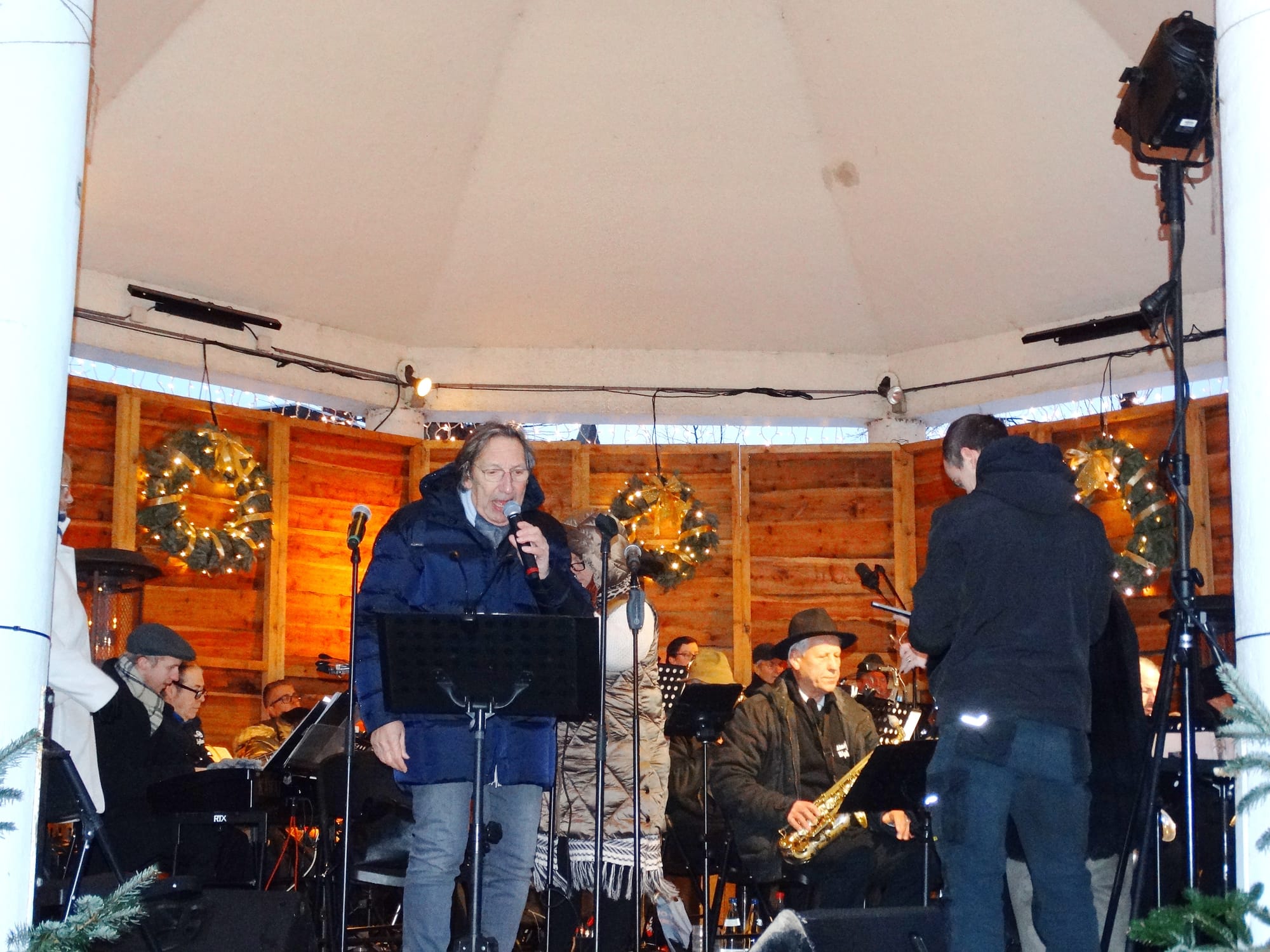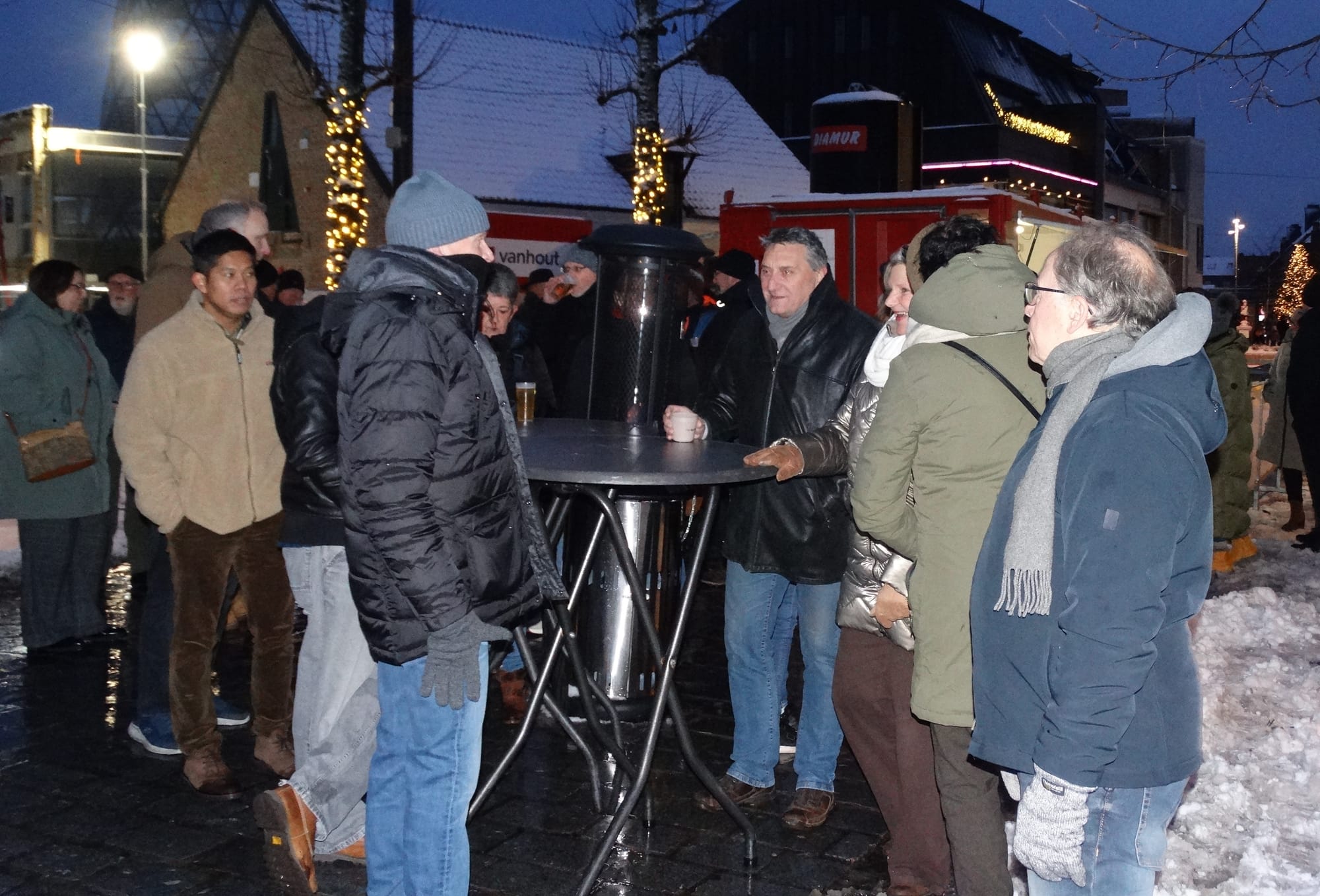 Naar goede gewoonte werden alle inwoners vanavond door het stadsbestuur uitgenodigd op het marktplein om het nieuwe jaar feestelijk in te zetten... Een biertje, glüwhein of soep hielp daarbij, net zoals Aimé's Big Band, die zorgde voor swingende muziek. En uiteraard was er ook de traditionele toespraak van burgemeester Bob Nijs, waarbij hij iedereen een bijzonder goed jaar wenste.