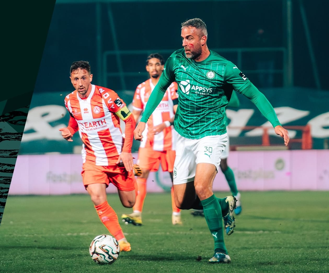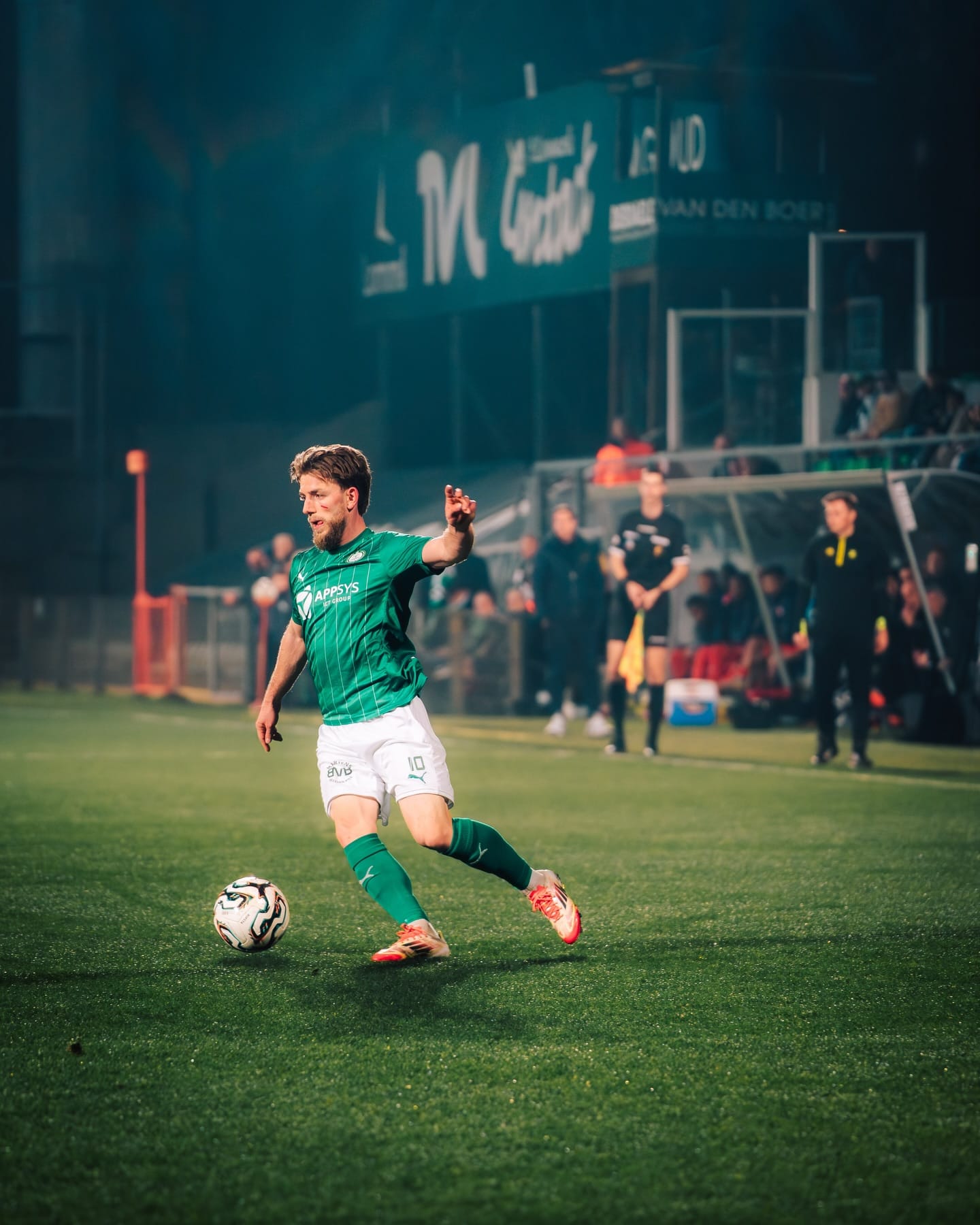 Over de eerste helft kunnen we kort zijn. Veel strijd, veel pittige duels. Maar ook een festival van slordig voetbal, met veelvuldig balverlies langs twee kanten. Beide defensies bleven makkelijk baas over de aanvallers, die met de moed der wanhoop achter onbereikbare ballen bleven aanhollen. Slechts twee keer glipte er eentje door de mazen van het net. Zo scoorde Jason van Duiven met een knap stiftballetje, maar helaas voor hem had hij net tevoren een roodwit obstakel (Anderson) omver gekegeld. Doelpunt afgekeurd. Aan de overzijde koos de snelle Van Landschoot vlak voor de pauze het hazenpad. Oog in oog met keeper Ivezic verkoos hij nog af te leggen op de instormende Anderson, die snoeihard op de bast van de Lommelse goalie schoot. Daar moesten de op spektakel beluste toeschouwers het voorlopig mee stellen.