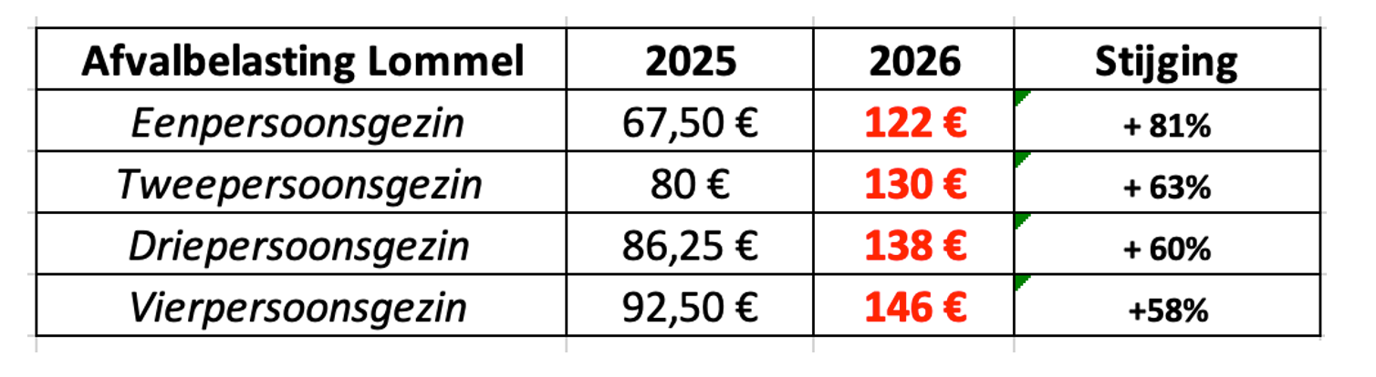 Lommels Stadsbestuur verhoogt afvalfactuur aanzienlijk