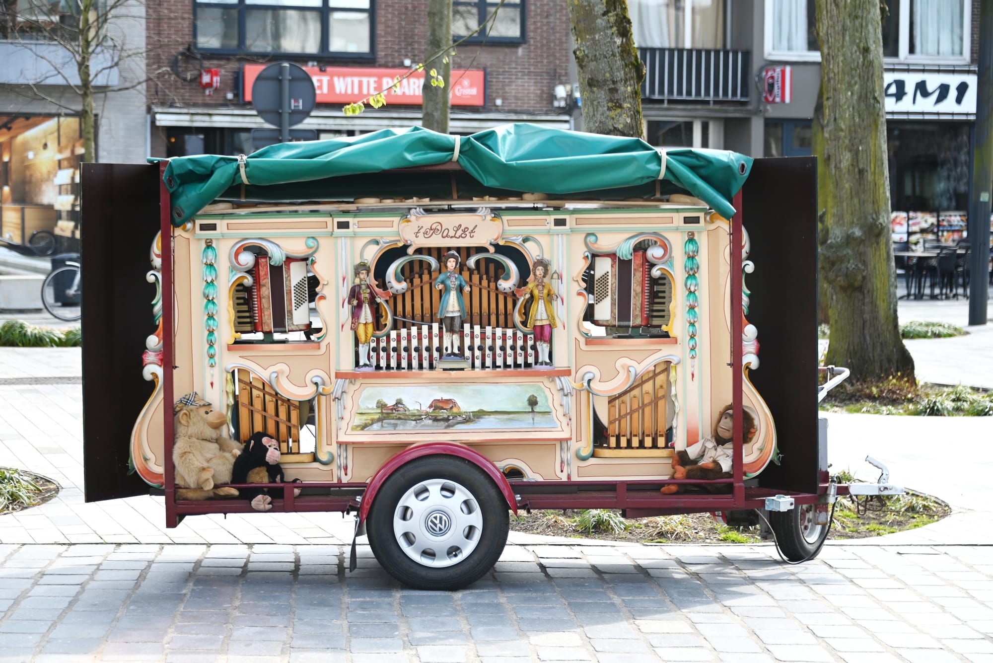 Om toch iets aan de sfeer te doen, mag u in de maand april iedere woensdag op onze woensdagmarkt op het Hertog Janplein wel 'iets' speciaals verwachten... En zo stond er vanmiddag het orgel 't Palet te spelen van Danny Broekmans. Maar dat het marktplein toch belangrijk blijft voor de markt blijkt uit het feit dat deze randanimatie voor de 'Maand van de markt' ook enige tijd te bekijken en beluisteren was OP datzelfde marktplein...