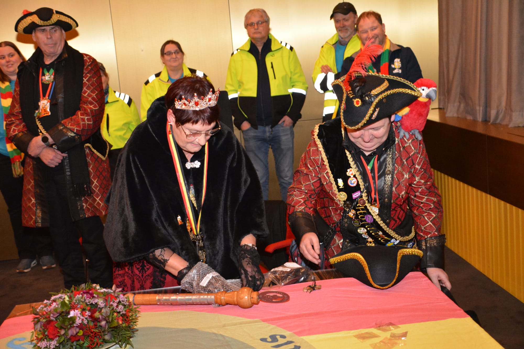 Het carnavalsweekend is nu helemaal van start gegaan. Gisterenavond was er eerst het plechtige gedeelte met de Machtsoverdracht en Sleuteloverdracht. Hierbij kreeg Vorstin Viv de macht terug van de Stad Lommel om zo als Hoogheid het Carnaval in Lommel in goede banen te leiden. Ronny Geysen benadrukte in zijn toespraak de inzet van de vele vrijwilligers die maandenlang werken aan de voorbereiding van carnaval. "Carnaval is niet iets van één weekend," vertelde hij. "Achter de schermen zijn mensen hier een heel jaar mee bezig. Dankzij die inzet kunnen we opnieuw een fantastische carnavalsweek beleven." Nadien waren er tevens korte tussenkomsten vanwege Peter Vanderkrieken en de vorstin zelf, om te eindigen met een kleine receptie.