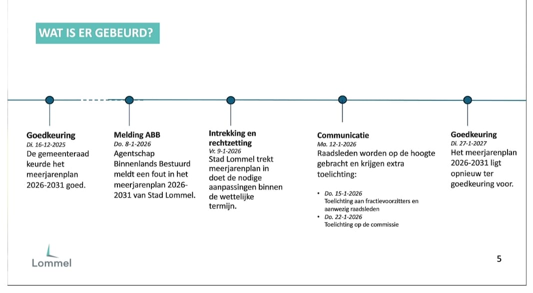 “Financiële voorzichtigheid en ambitie sluiten elkaar niet uit,” wist de burgemeester ,“Door onze cijfers correct te zetten, garanderen we net de ruimte om te blijven investeren in projecten die het leven in Lommel beter maken.”