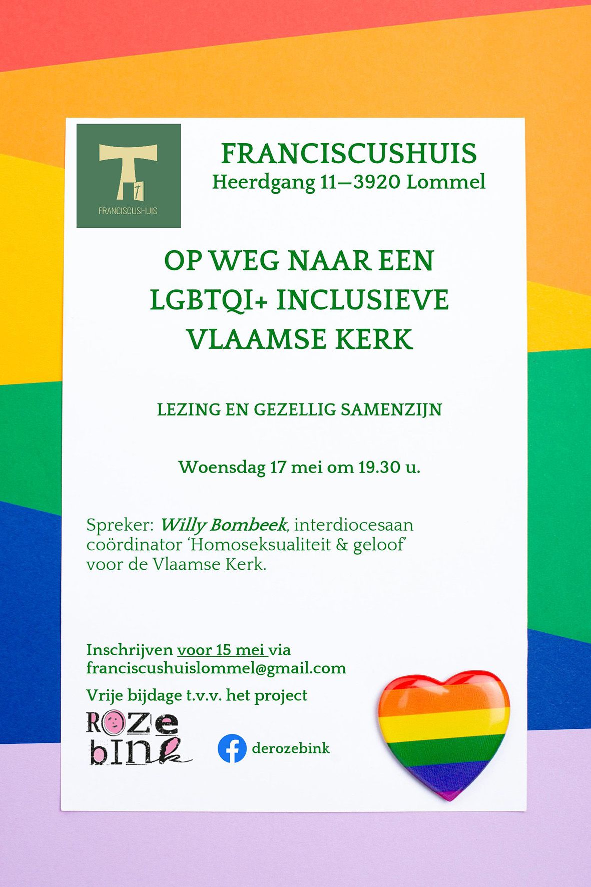 Eveneens morgen is er een lezing in het Franciscushuis met als titel 'Op weg naar een LGBTQI+ inclusieve Vlaamse kerk' om 19.30 uur. En tevens kunnen we melden dat het regenboogzebrapad aan De Soeverein hersteld werd.