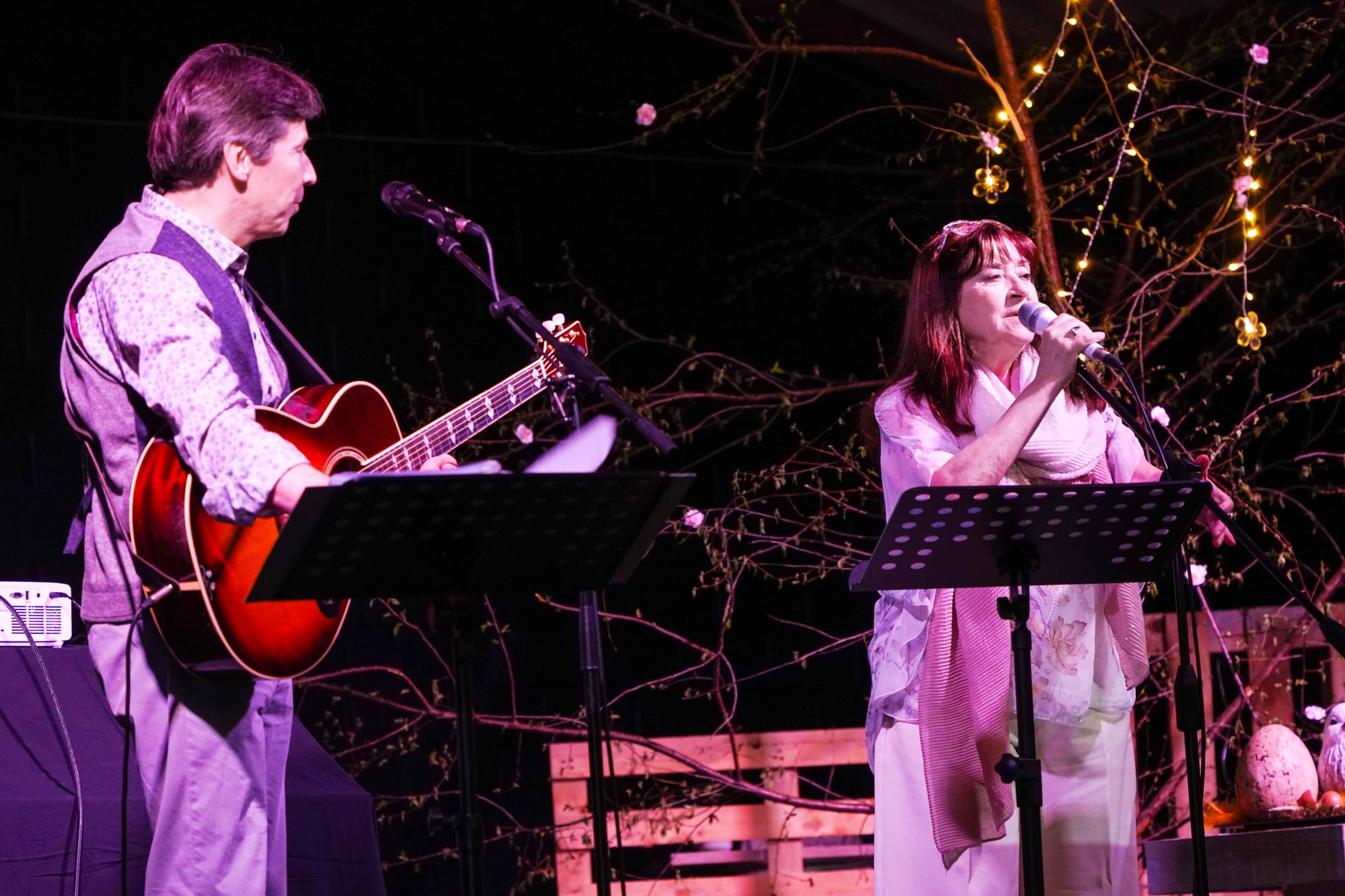 Ze beschikken over een héél uitgebreid repertoire. Een repertoire dat nog steeds groter wordt: ze blijven enthousiast werken aan eigen, origineel werk maar maken ook dankbaar gebruik van nummers van hun voorbeelden: Elly & Rikkert, Miel Cools, Will Tura, Dick Van Altena, …. Pareltjes uit het repertoire van deze mensen kwamen als eerbetoon dan ook aan bod.