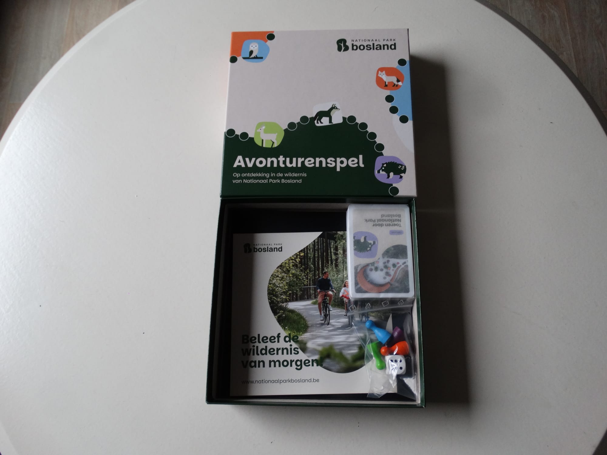 Voor bezoekers is er het avonturenspel, een gratis spel dat natuurbeleving en spel combineert. Het bordspel in de vorm van het Nationaal Park Bosland beeldmerk, wordt gespeeld met 55 kaarten en daagt spelers uit om dieren zoals ree, vos, oehoe en het everzwijn te verzamelen – terwijl ze de wolf te slim af zijn,