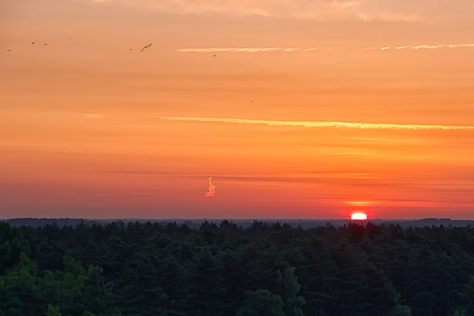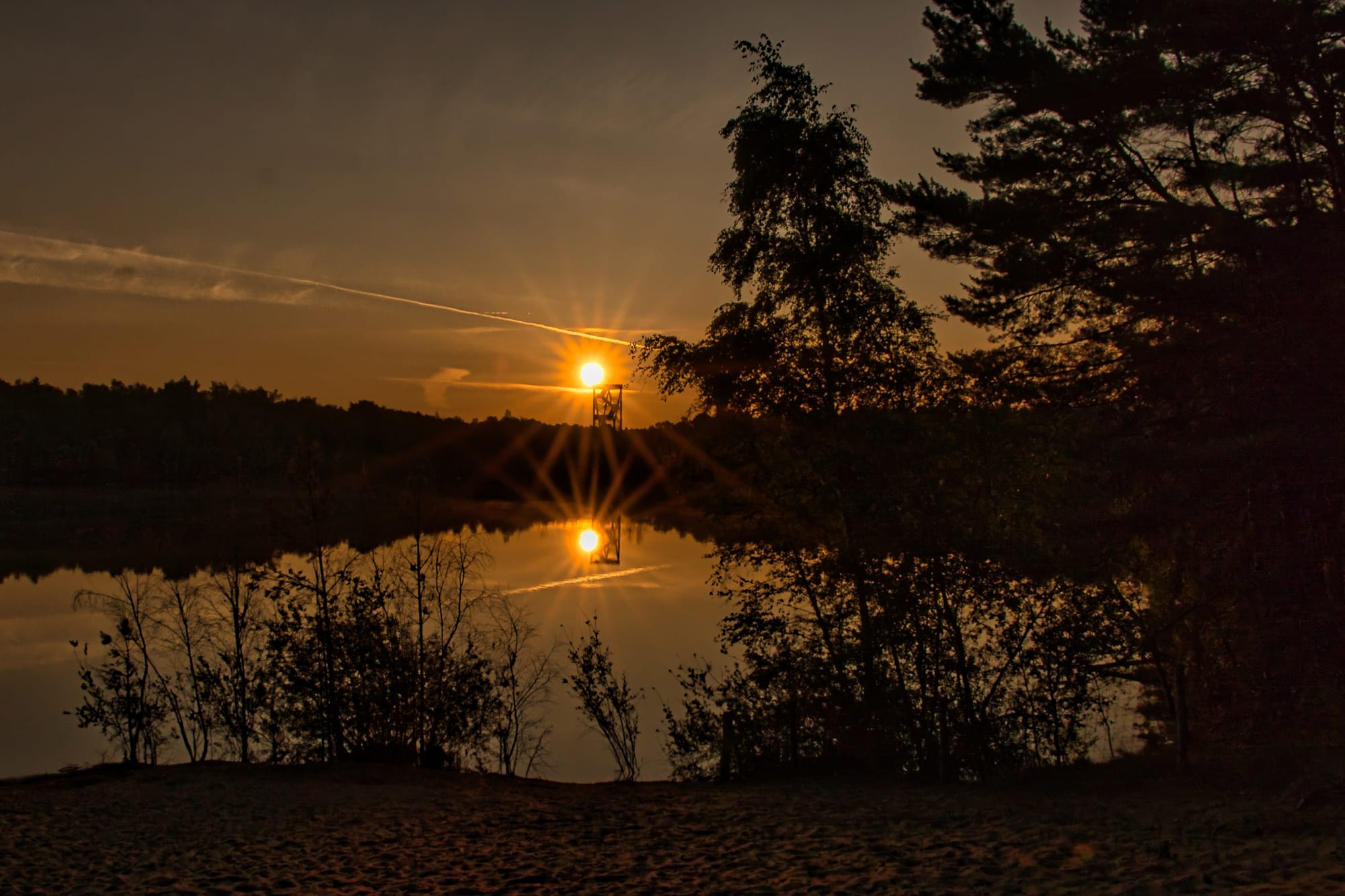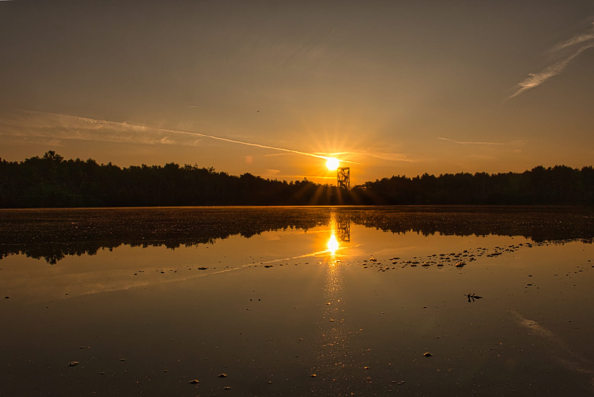 We starten met Jan Thomas: begin van een warme dag 5u20. De eerste gloed van de zon breekt door boven de Lommelse Sahara. Vanaf de uitkijktoren strekt het landschap zich stil en tijdloos uit. Vogels zweven zwijgend over het water โ enkel hun schaduw beweegt. De stilte ademt. De eerste warmte weeft zich zachtjes door de ochtendkoelte. De zon klimt traag boven de toren uit, haar spiegelbeeld glinstert in het stille water beneden โ een gouden belofte voor een zomerse dag...