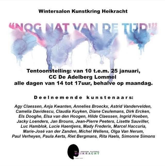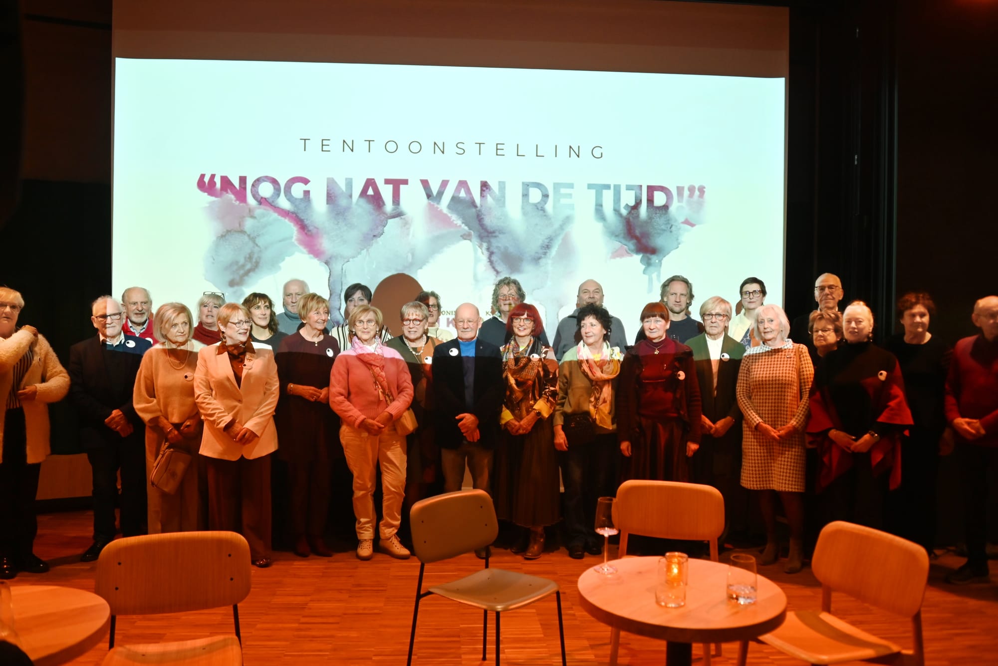 Maar liefst 28 kunstenaars nemen momeneel deel aan de tentoonstelling 'Nog nat van de tijd' door kunstkring Heikracht. Vanmiddag werd deze plechtig geopend door de voorzitter, Marc Witters en schepen van cultuur Peter Vanderkrieken. Daarna konden de erg talrijke aanwezigen het glas heffen op de deelnemende kunstenaars en uiteraard ook op het Nieuwe Jaar!