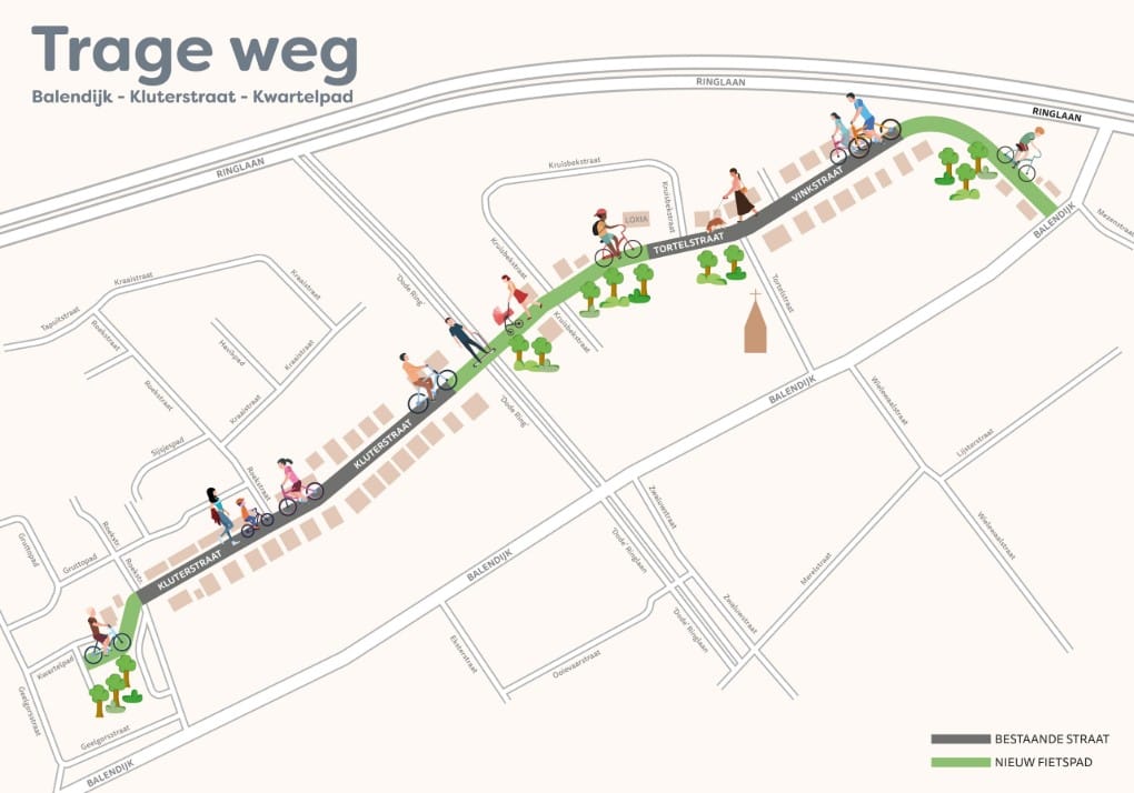 Eén van de punten op de dagorde van de gemeenteraad gisterenavond was de goedkeuring van de aanleg van een nieuwe trage weg tussen Balendijk, Kluterstraat en het Kwartelpad. Met dit project investeert de stad in een veilige en comfortabele verbinding voor fietsers en voetgangers. De werken gaan naar verwachting van start in het najaar van 2026.