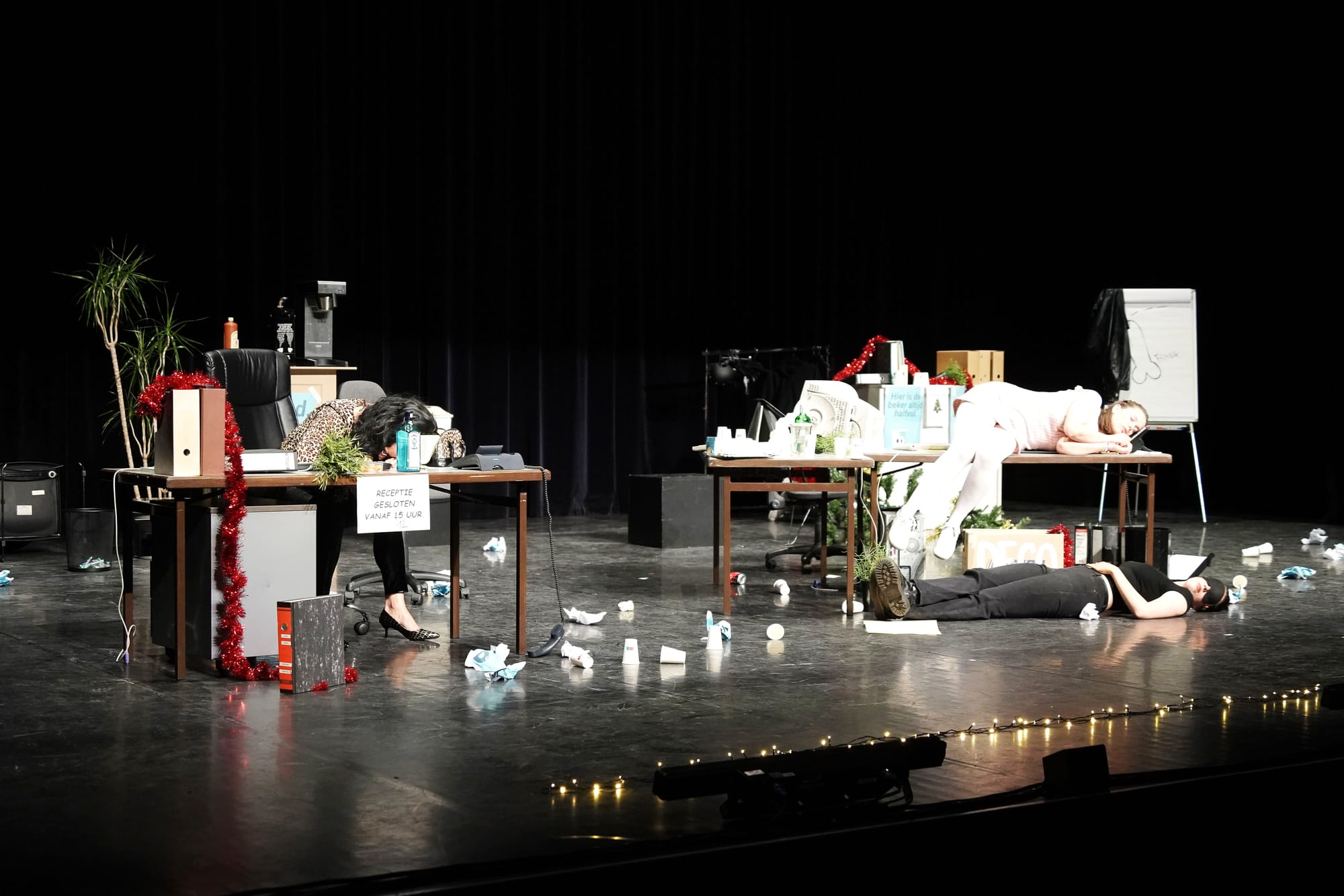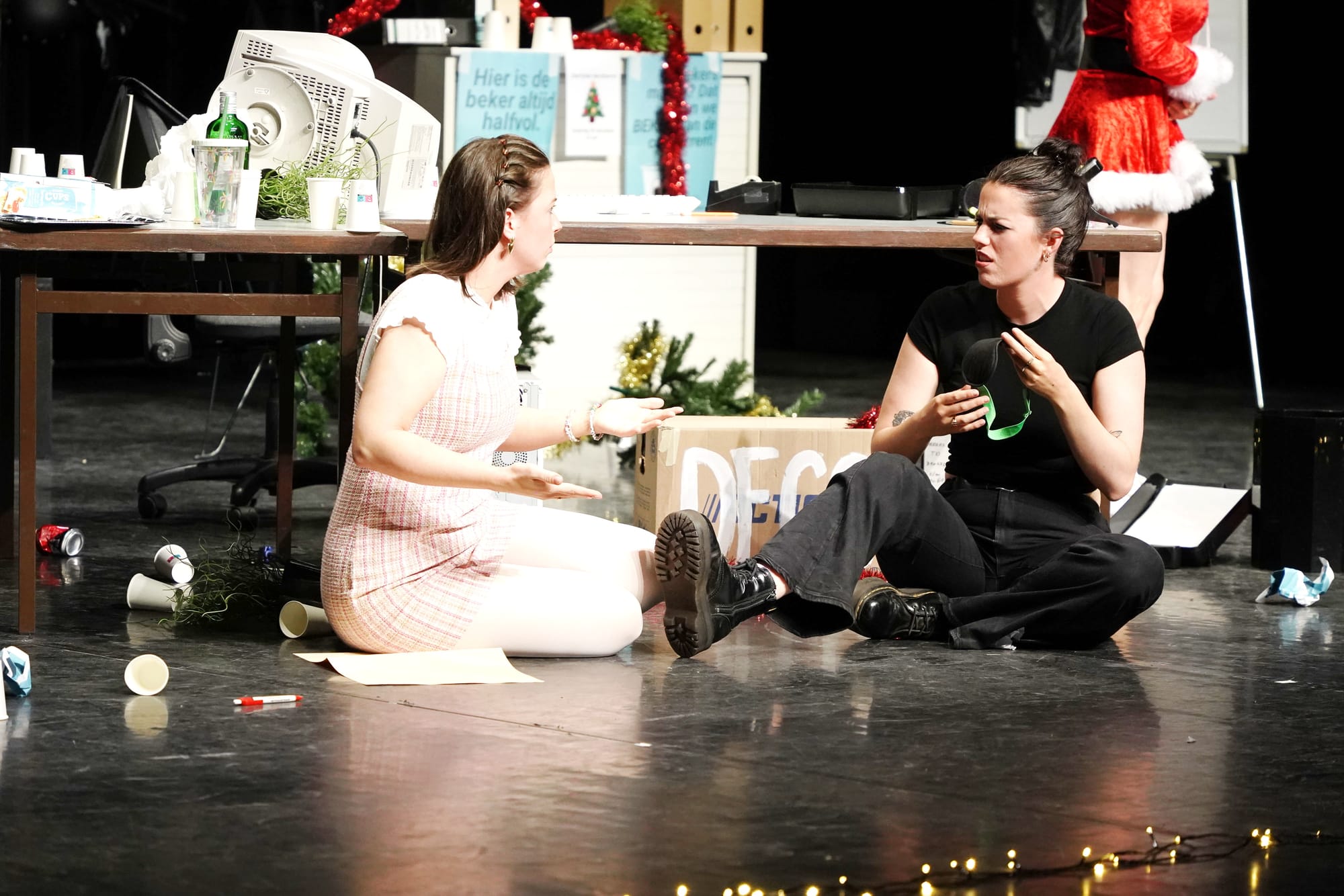 Naar jaarlijkse traditie viert het Lommels bedrijf BEKERS NV een kerstfeest voor alle collega’s. De kerstboom staat klaar, het kantoor wordt versierd met slingers en de alcoholvrije punch is aanwezig: de perfecte ingrediënten voor een onvergetelijk feest. Zeg nu zelf, wat kan er nog mislopen? Veel, blijkbaar, want de ochtend na het kerstfeest is de chaos compleet. Wat is er allemaal gebeurd? Wat heeft Frank van HR hiermee te maken? Wie heeft er met de tamagotchi van Emma geknoeid en vooral: waar is in hemelsnaam die vermiste onderbroek?!