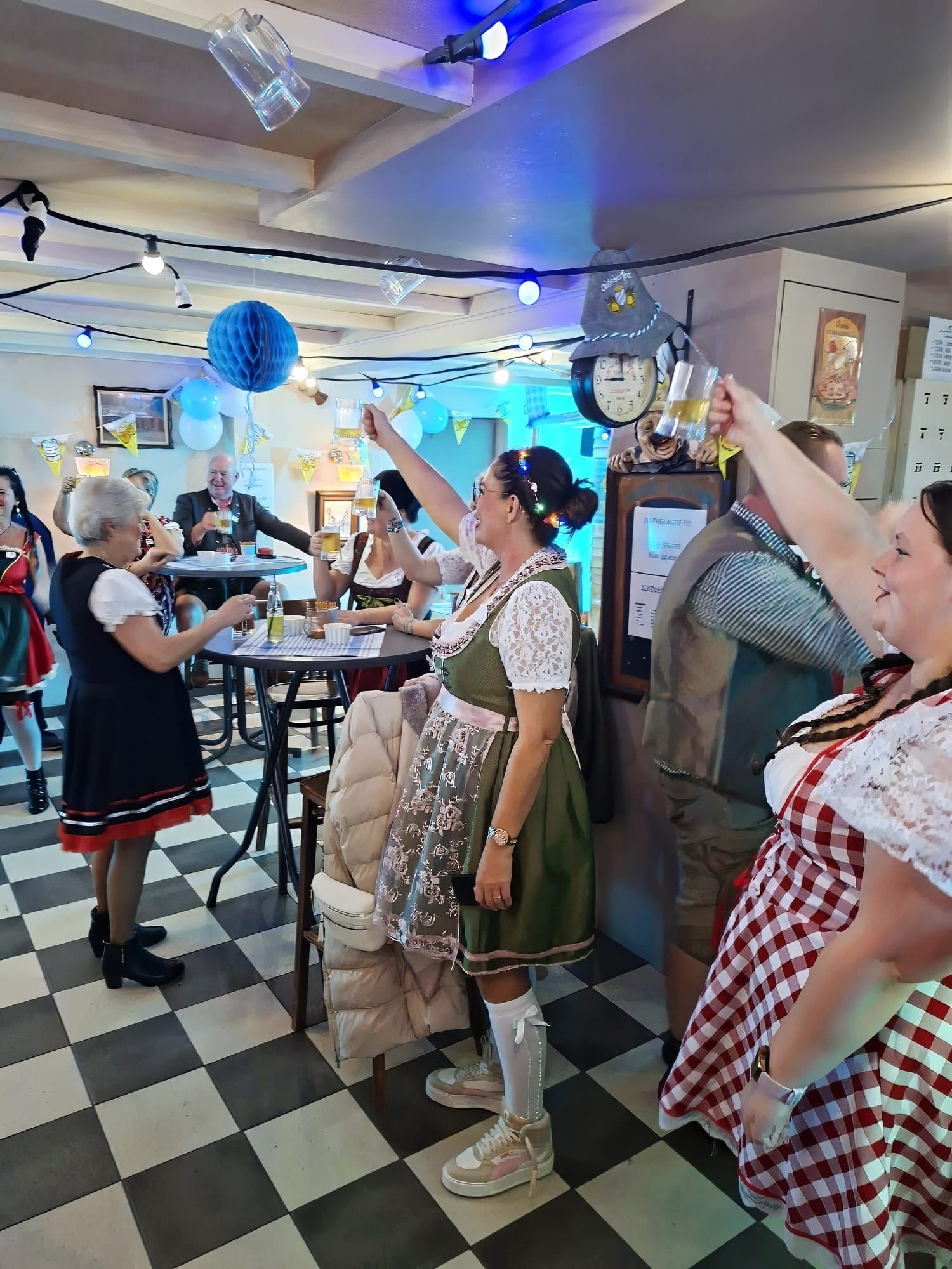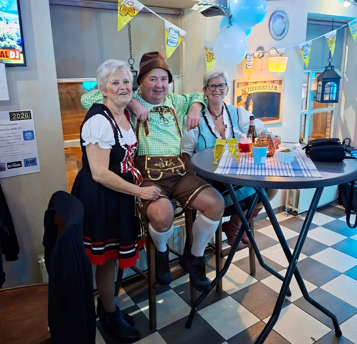 Gisterenavond vond het eerste Oktoberfest plaats van spaarkas D'n Timmer. Het hoeft niet gezegd dat het een gezellige bende geworden is die heeft geduurd tot in de late (vroege...) uurtjes. Uiteraard was iedereen in de juiste kledij afgekomen, er waren hotdogs met braadworsten en er was live muziek van Benny Mols B&M music die zorgde voor de gepaste meezingers. Uiteindelijk werd er ook nog de best verkleedde deelnemer verkozen en dat was Franca Presutto!