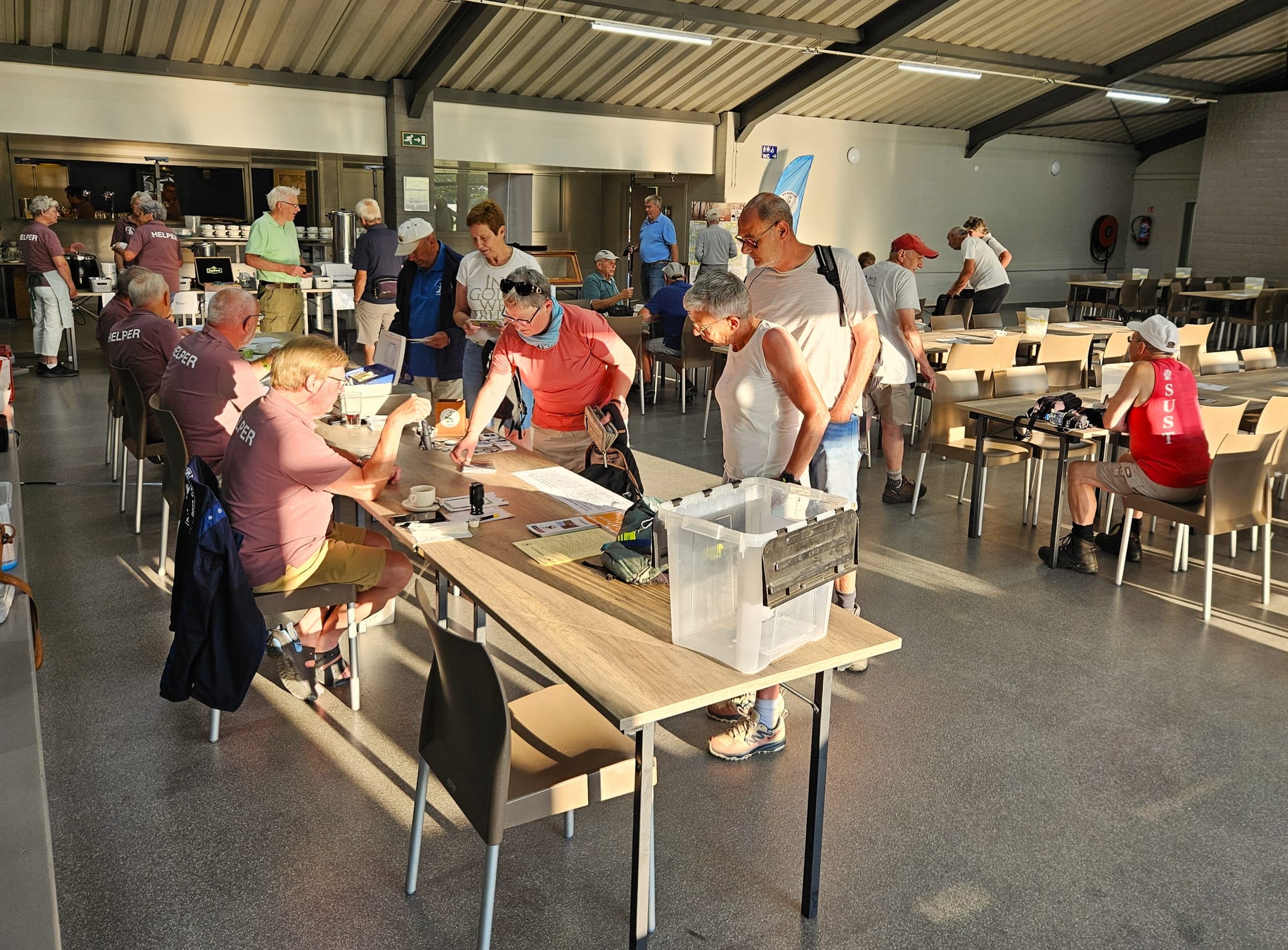 Ruim voor het officiële startsignaal van de lange afstanden (30 – 43 – 50 km) kwamen de eerste wandelaars al aanschuiven aan de inschrijvingstafel van Milieu 2000 voor de 'Tocht der 7 Heerlijkheden'. Zij hoopten zo de voorspelde hitte van 33°C voor te blijven… Helaas…