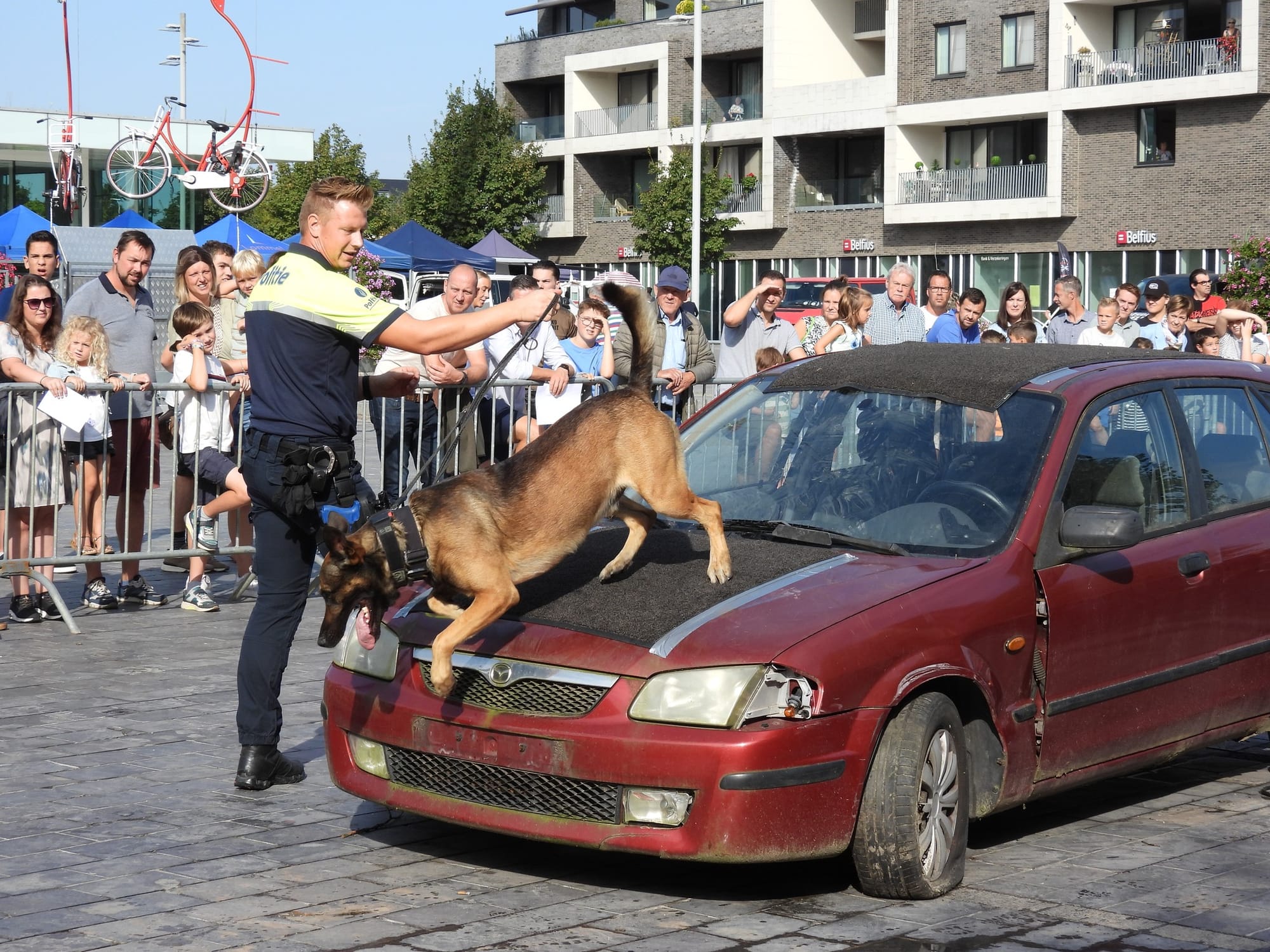 Vandaag kon u bij onze lokale politie terecht voor hun jaarlijkse opendeurdag. Niet alleen kon u het politiekantoor eens van binnen bekijken, de materialen waarmee gewerkt wordt zien, maar ook waren er meerdere demo's zoals de redelijk spectaculaire hondenshow... Er kwam dan ook behoorlijk véél volk af voor deze opendeurdag, zodat de politie kon terugkijken op een erg geslaagd evenement!