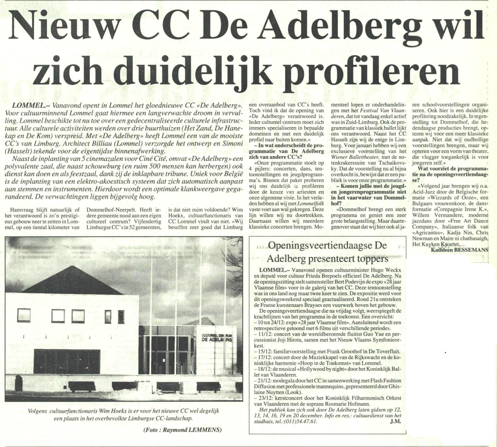 Opening CC De Adelberg in december 1993