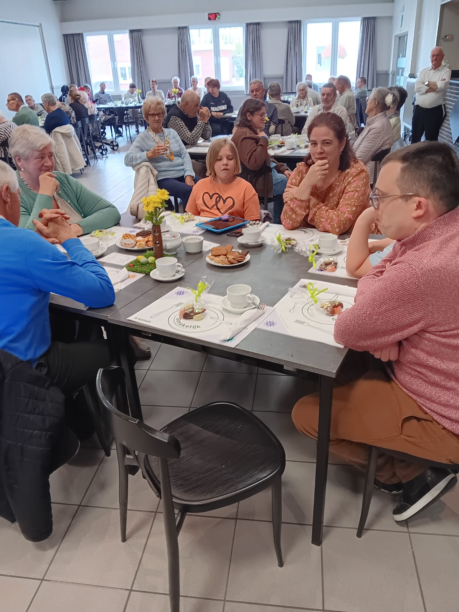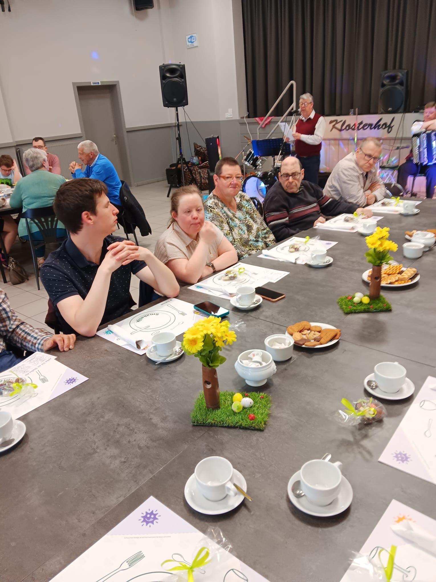 Het was wel erg gezellig vanmiddag in het Klosterhof, want Kannet vierde er hun Paasfeest. Er waren 68 aanwezigen en de muzikale ontspanning voor jong en oud kwam van Jefke Do' en Stafke Re' uit Lille. Een frietkraam zorgde ook nog eens voor de hongerige magen.