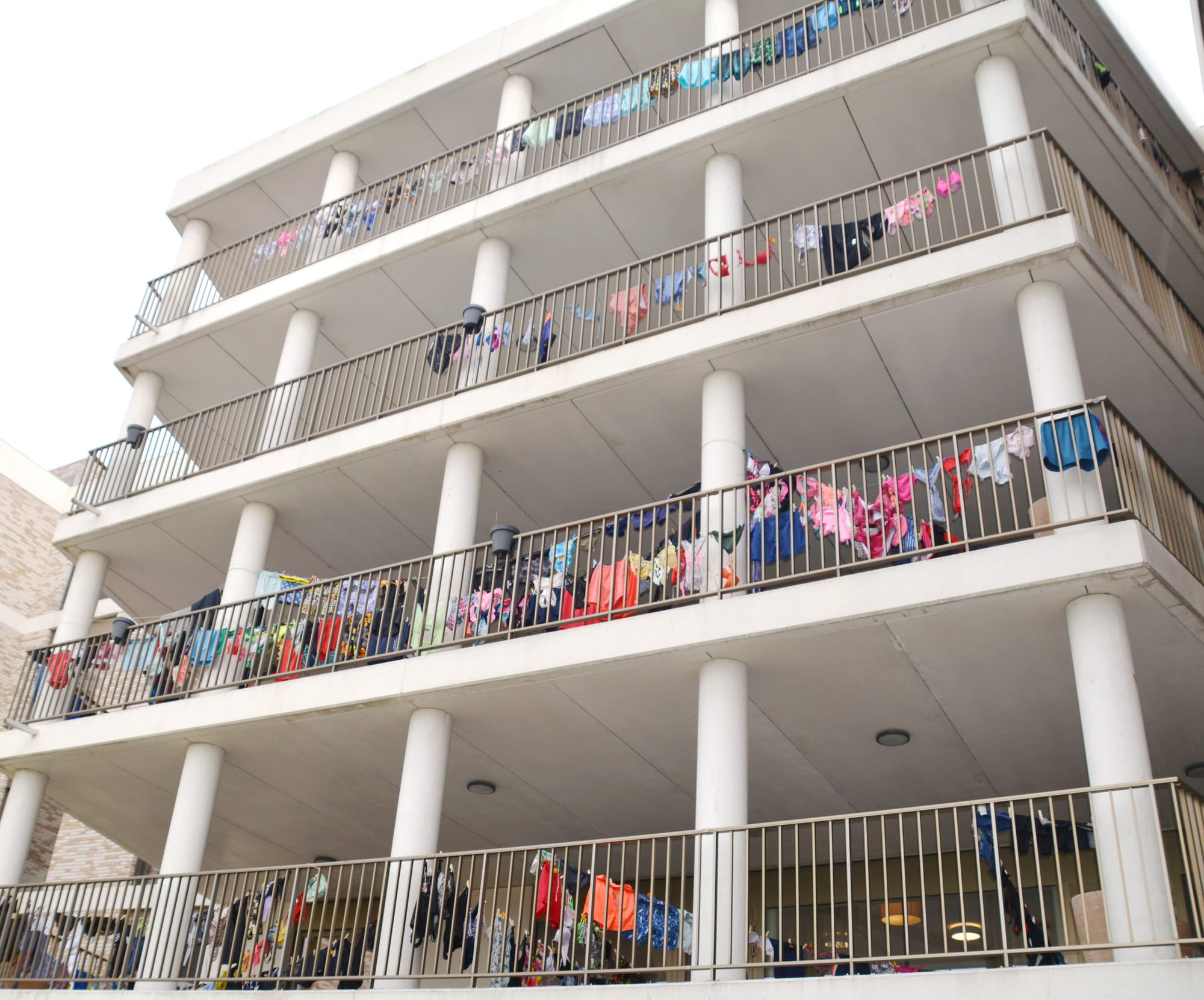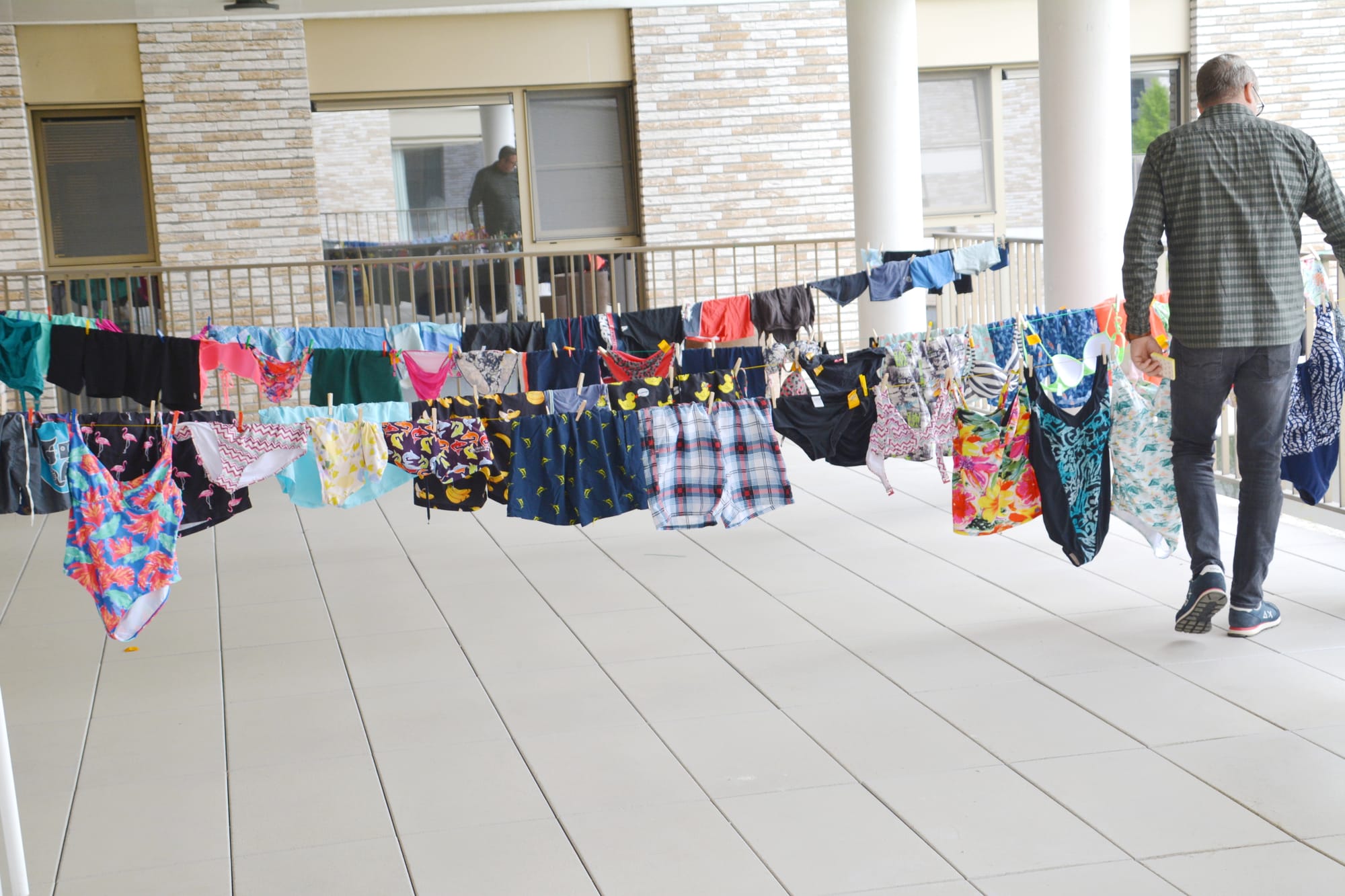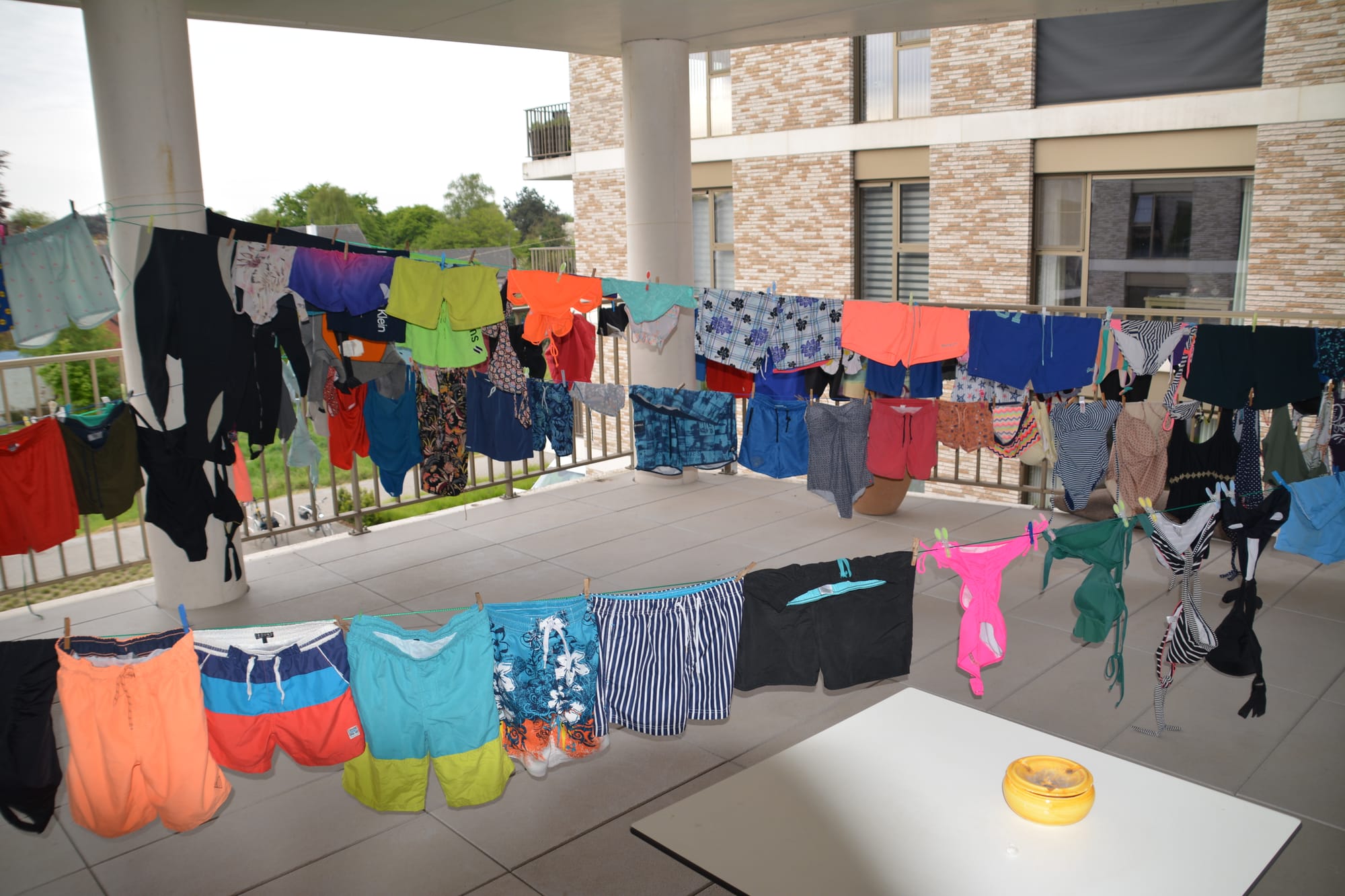 Het was toch een speciaal zicht vanmorgen bij wzc Ploegdries... Lijnen vol met zwembroeken, badpakken en andere zwemkledij hing er netjes naast elkaar uitgestald op vele waslijnen. Dit alles voor een challenge tussen vier afdelingen van het woonzorgcentrum!