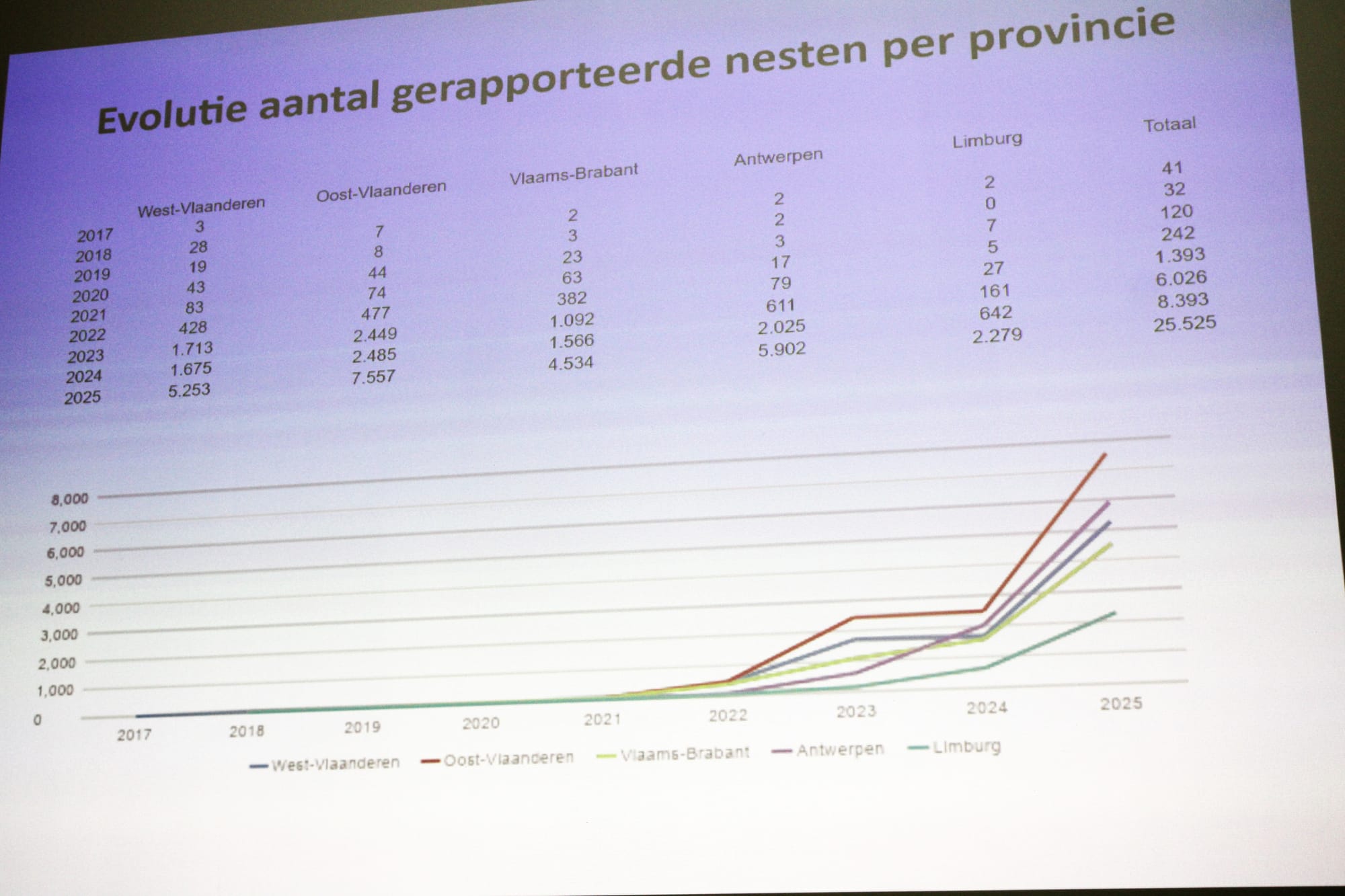 Ken Schevernels: “De Aziatische Hoornaars vormen echt een bedreiging. Een nest eet zo’n 11 kilo insecten waarvan ongeveer de helft honingbijen. Ze doen dat zonder natuurlijke vijanden en bedreigen daardoor onze biodiversiteit. Dat is een probleem want we hebben onze bijen echt nodig want ze spelen een belangrijke rol in de bestuiving in onze voedselketen.”