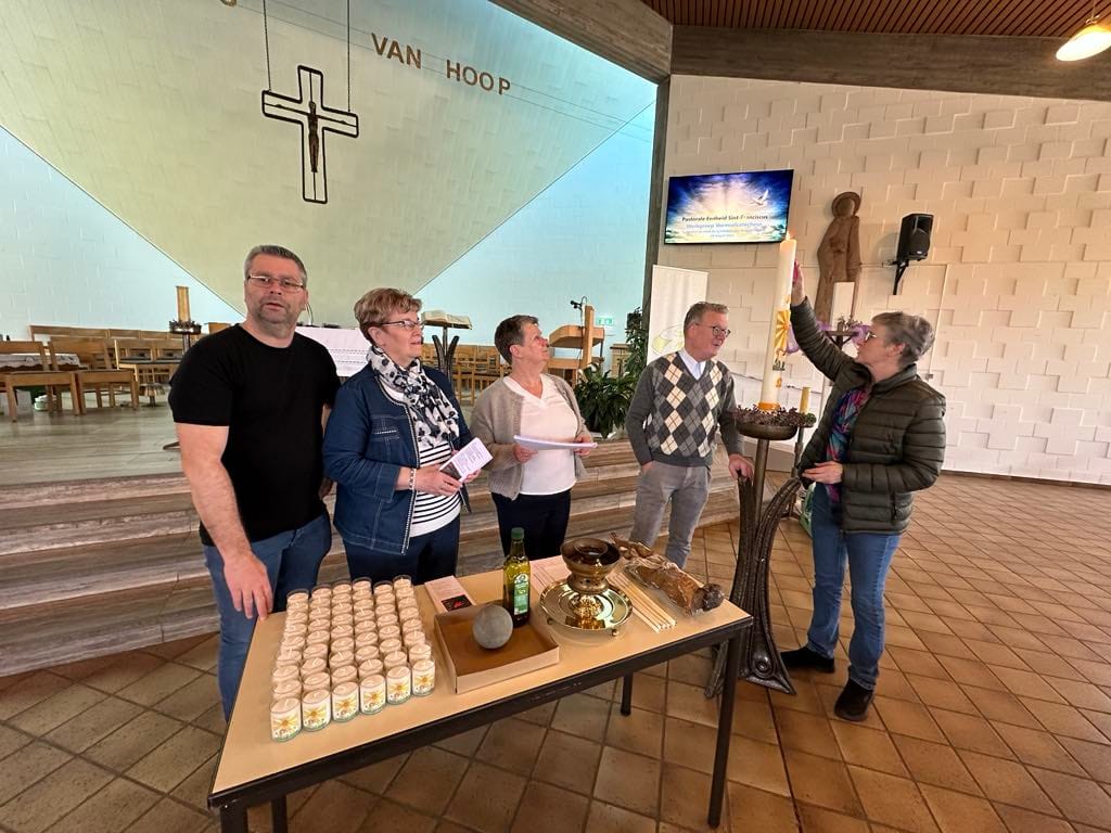 Afgelopen weekend vond er in de kerk van Heeserbergen een activiteit plaats ter voorbereiding van het vormsel. Deze activiteit ging over wat er bij het vormsel zoals gebeurt: ze krijgen een kruisteken met olie op hun voorhoofd, er is een handoplegging... En aangezien het belangrijk is dat de vormelingen de betekenis daarvan ook begrijpen, deze activiteit!