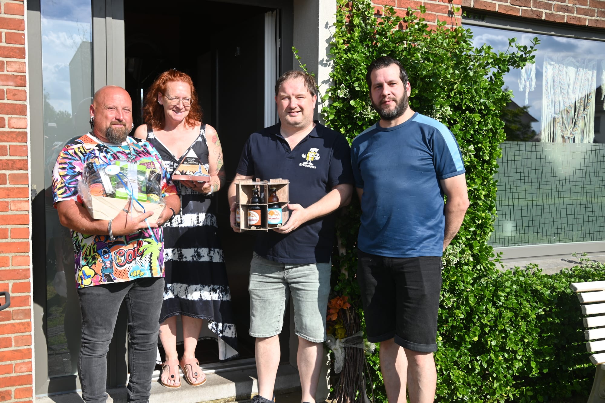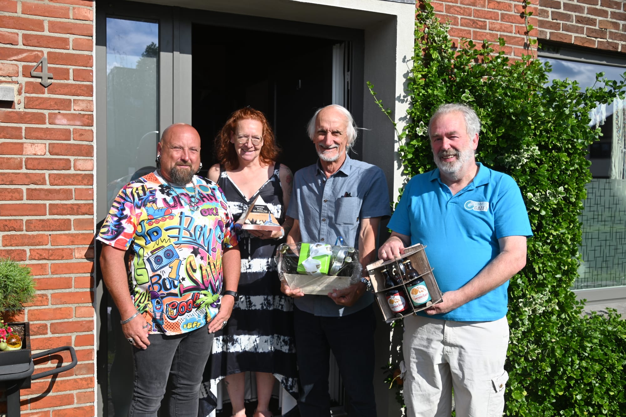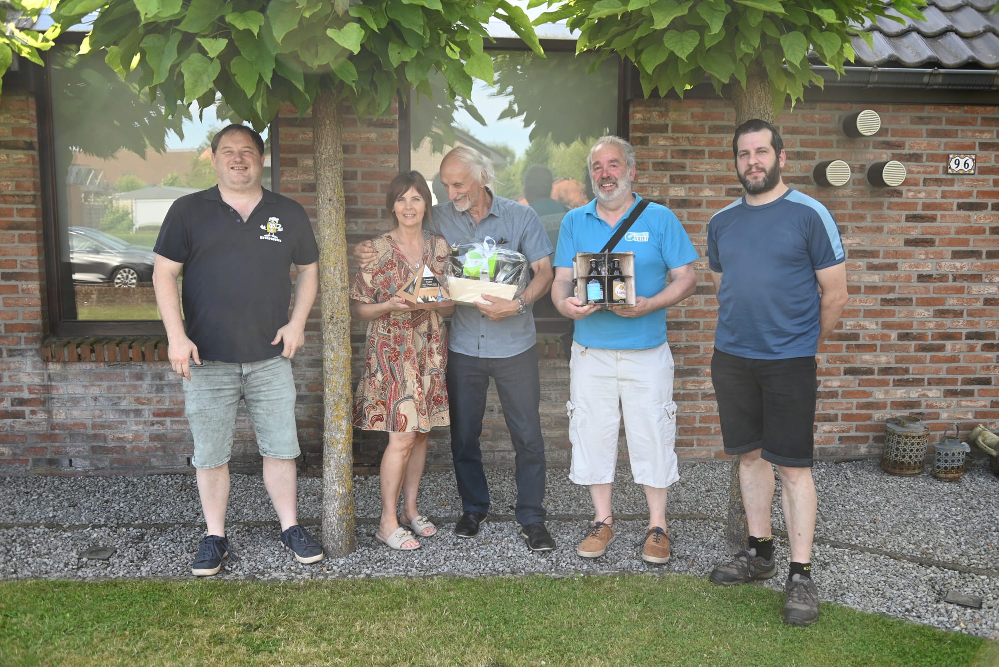 Voor 2023 was Marnick Stamper (foto bovenaan) de gelukkige, voor 2024 Kim Van Limbergen, voor haar gingen we bij haar ouders op visite... En dus trokken de organisatoren (de Braspappies) in de vooravond naar beiden om hun geschenk te overhandigen. En aangezien beiden op de Barrier wonen, was het geen al te lange verplaatsing...
