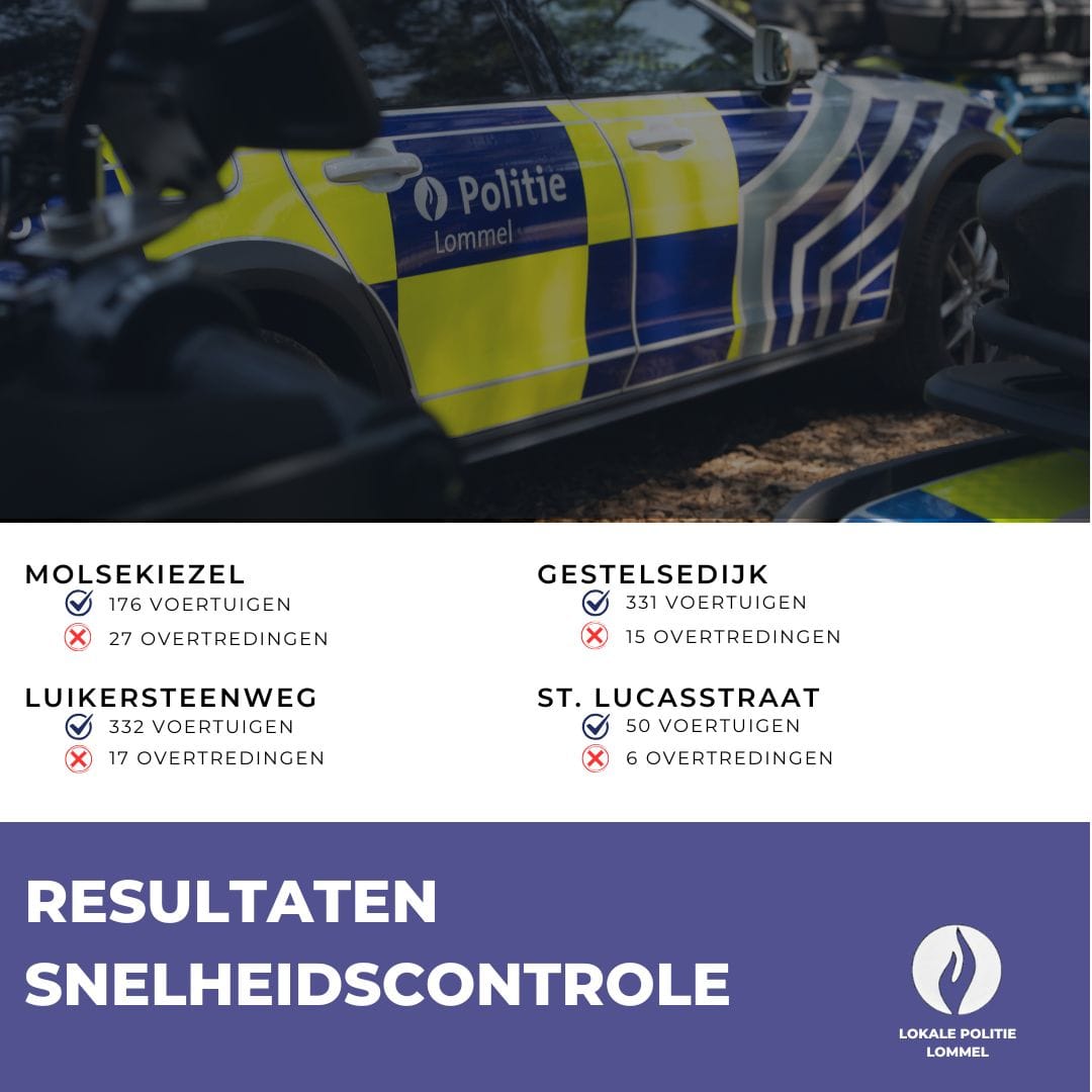 Vorige week heeft onze verkeersdienst snelheidscontroles uitgevoerd op verschillende locaties.Hieronder de resultaten van gecontroleerde voertuigen en aantal overtredingen.