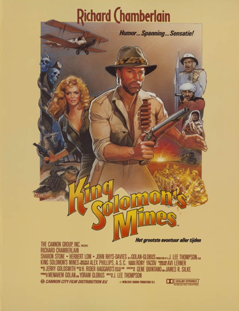 Ik zette hem op en schrok meteen van de valse decors, de clichés en lachwekkende dialogen, overgoten door een grotesk acteren. Het leek een beetje op een slechte comedy met dialogen samengeraapt tijdens een dronken nacht schrijven. Op zich had deze film in de videotheken best wel succes, het speelde in op de revival van de avonturenfilms; met ‘Indiana Jones and The Riders of the Lost Ark’ (1981) en die andere kaskraker ‘Romancing the Stone’ (1984)*. King Solomons Mines** lijkt echter meer op een Aldi-versie van voorgaande films, alhoewel er niets mis is met de Aldi (en al zeker in deze tijden).