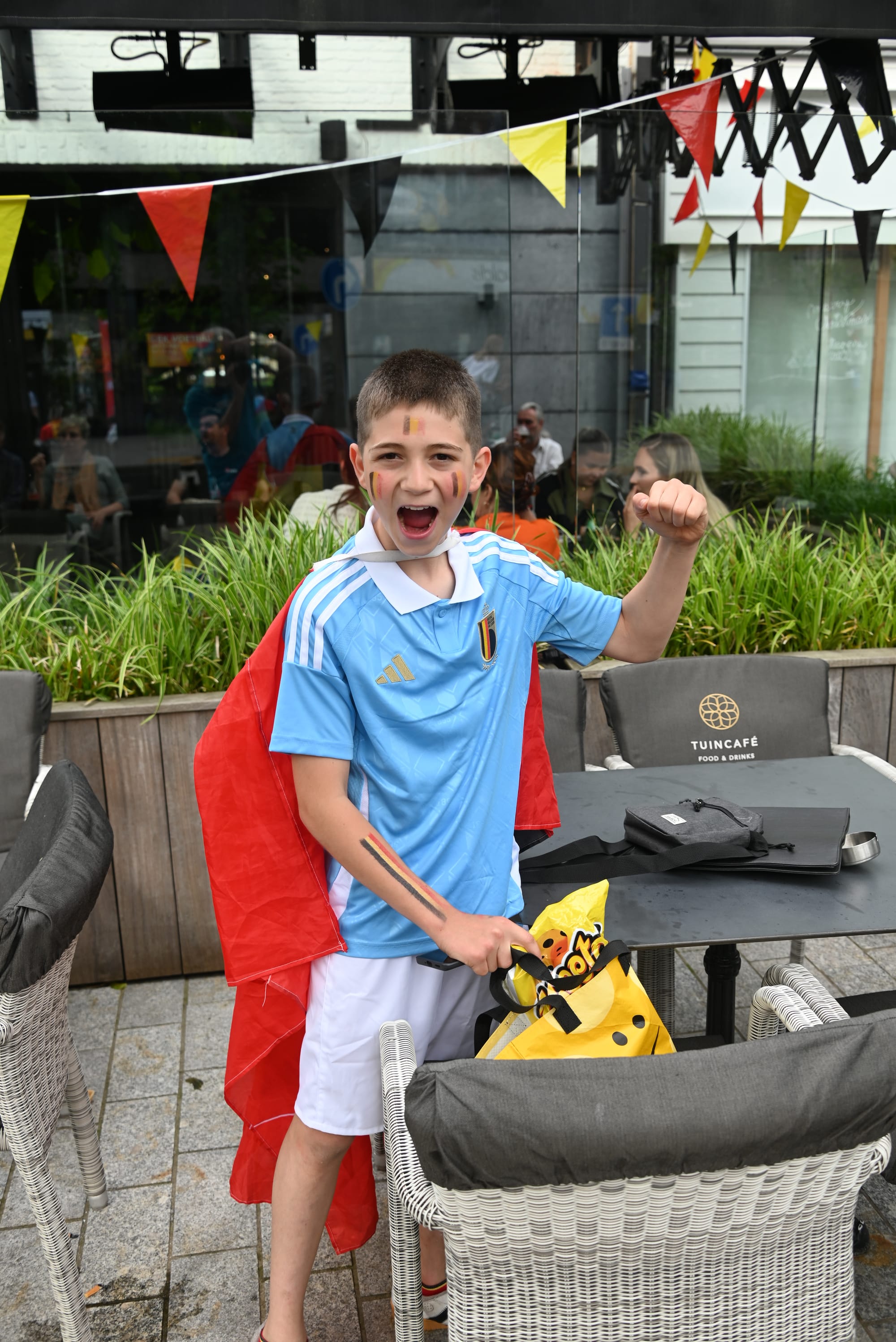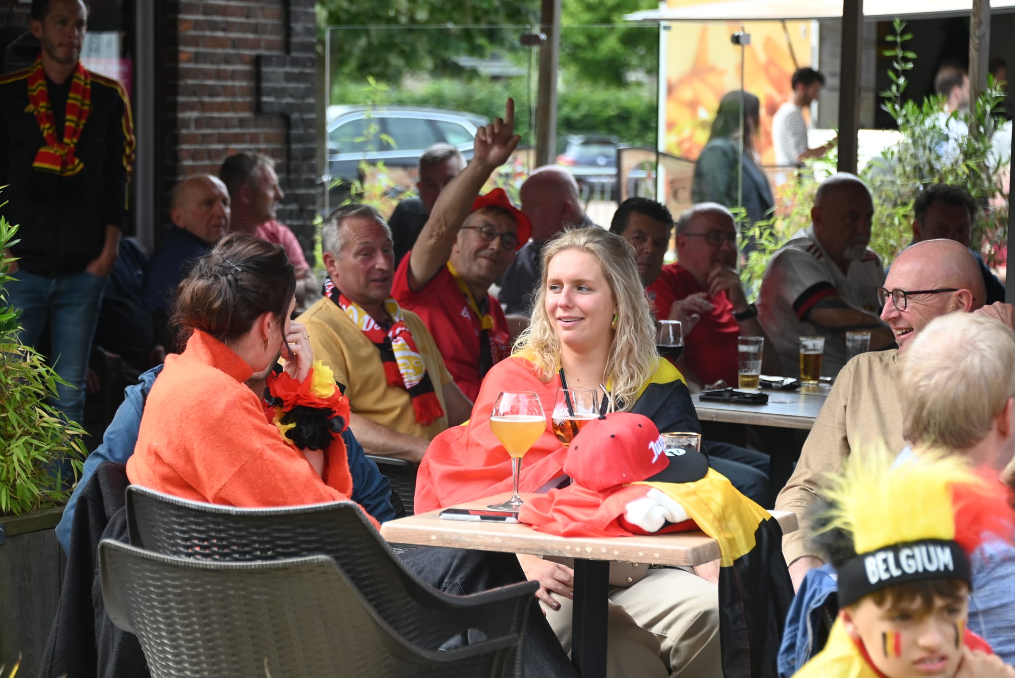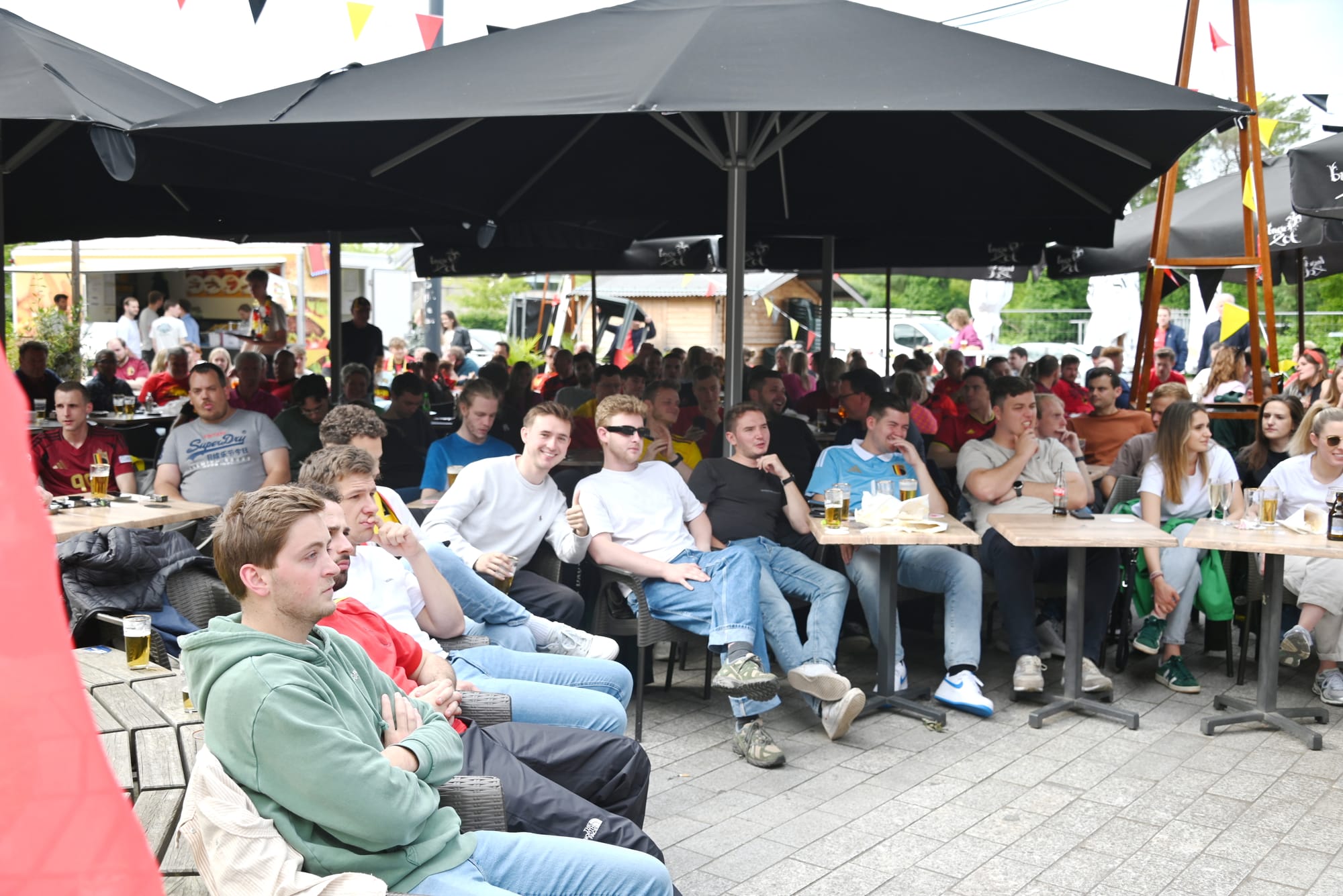 Toch zaten de terrassen waar de wedstrijd tegen Slovakije werd uitgezonden goed vol. Maar de tijden van duizenden aan één groot scherm met enorme ambiance zijn ver verleden tijd. Wij namen vandaag poolshoogte aan het Horecaplein waar twee schermen stonden, en ook bij Vill'Artistiek (hiervan later foto's).
