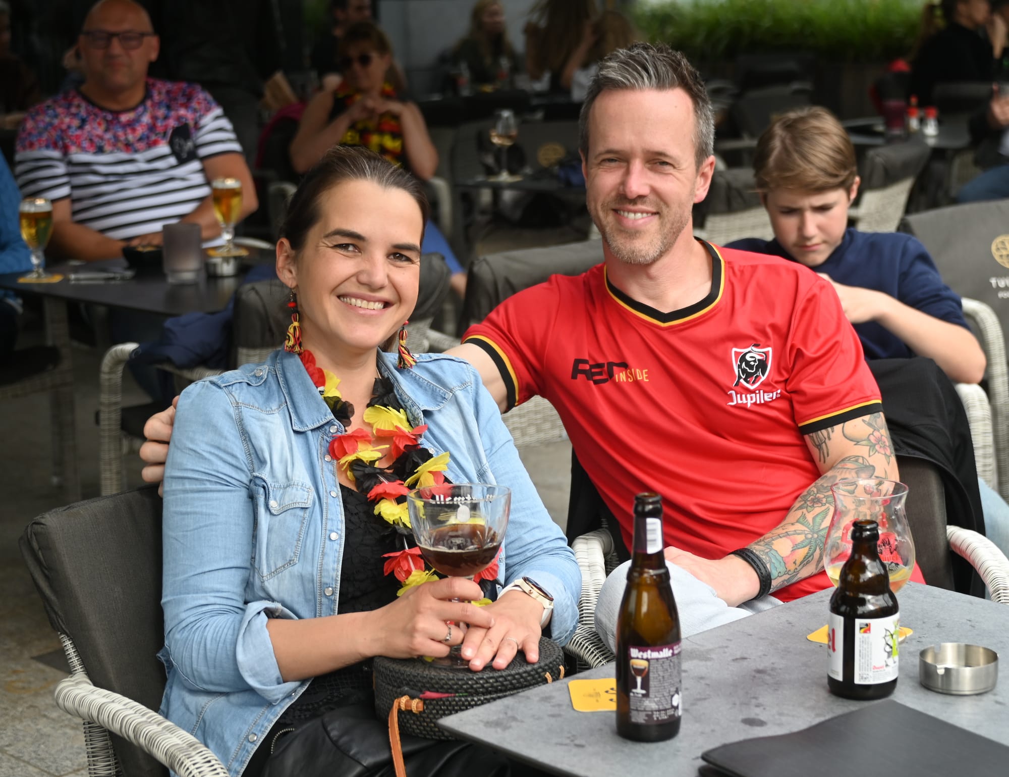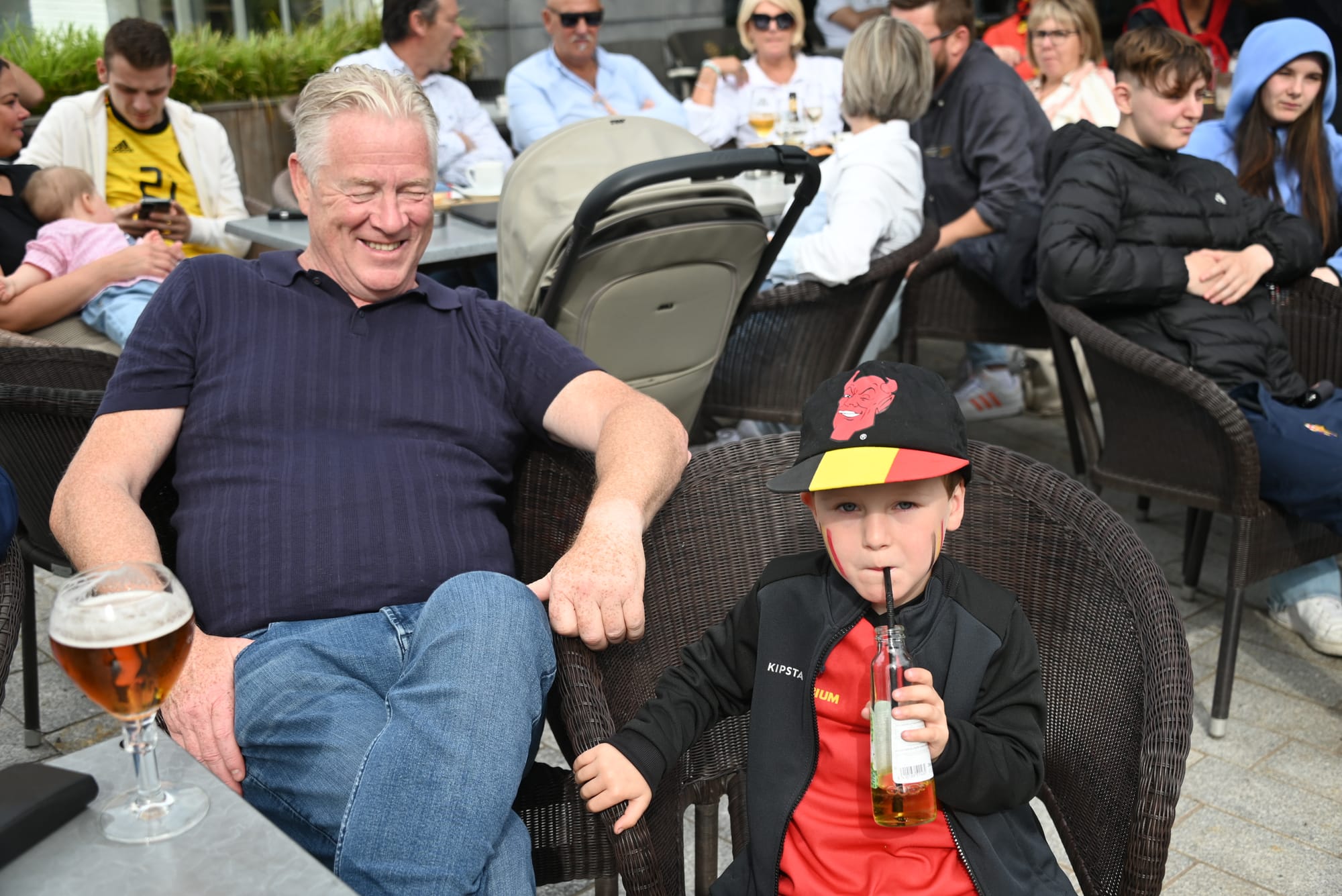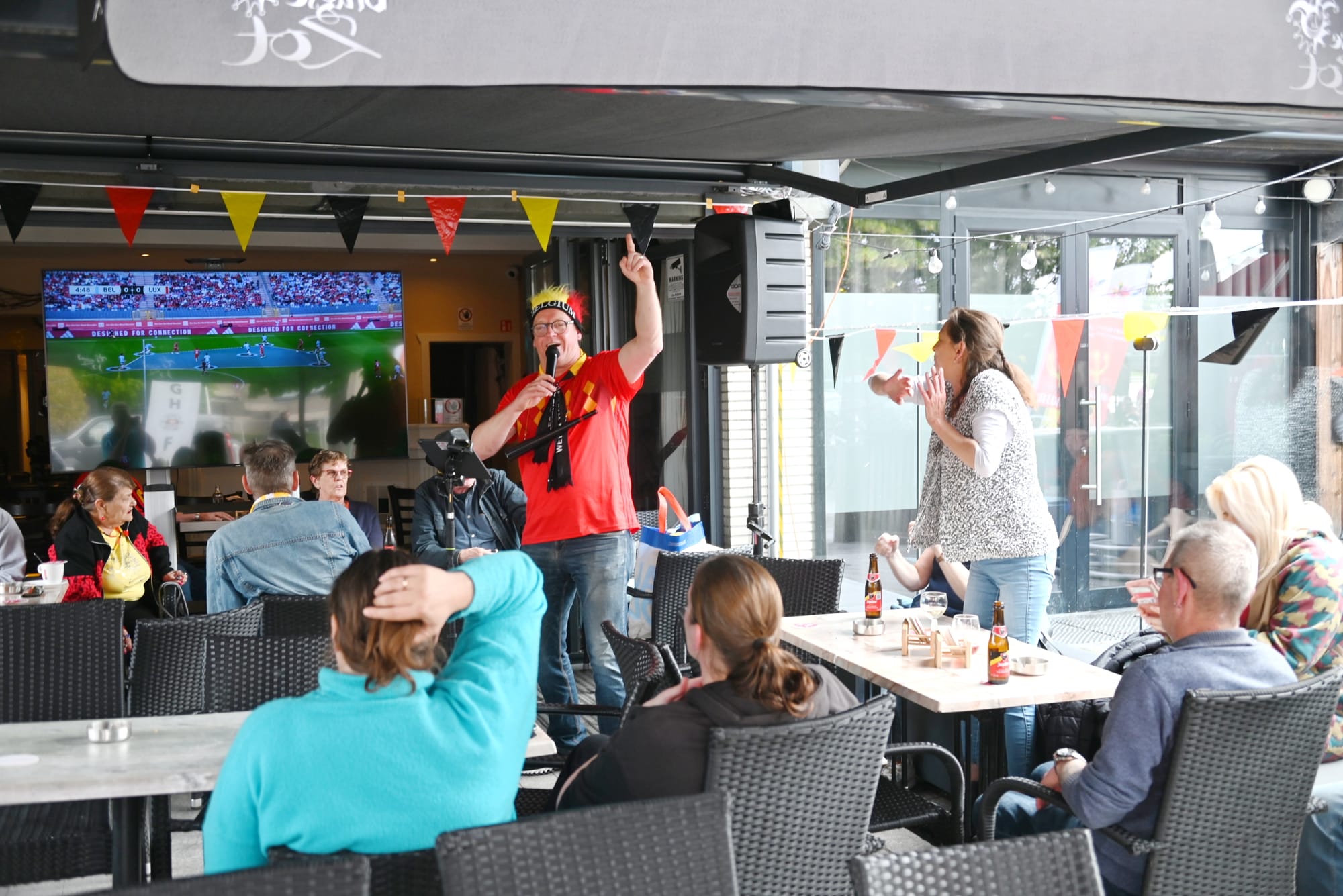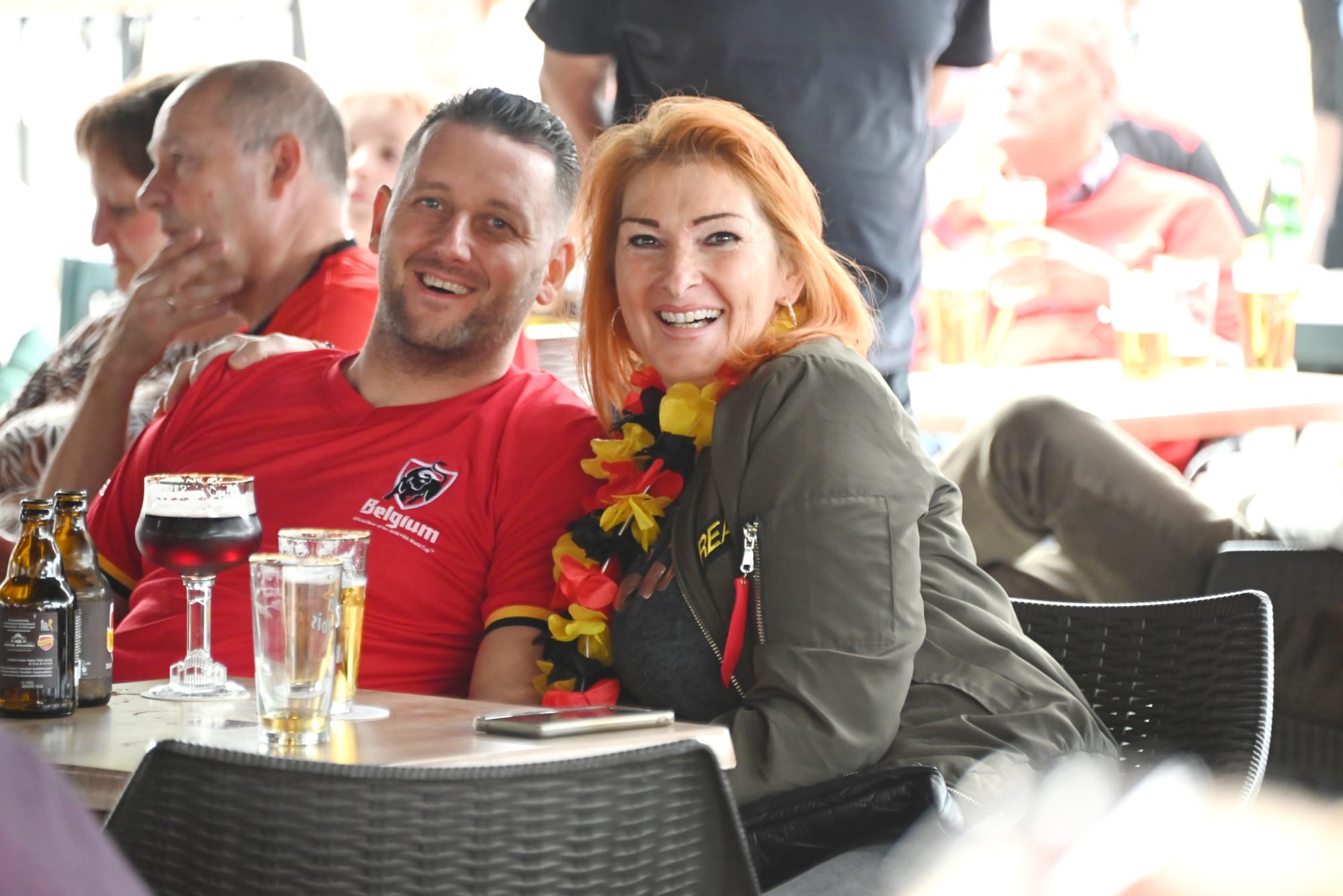 Toch zaten de terrassen waar de wedstrijd tegen Slovakije werd uitgezonden goed vol. Maar de tijden van duizenden aan één groot scherm met enorme ambiance zijn ver verleden tijd. Wij namen vandaag poolshoogte aan het Horecaplein waar twee schermen stonden, en ook bij Vill'Artistiek (hiervan later foto's).