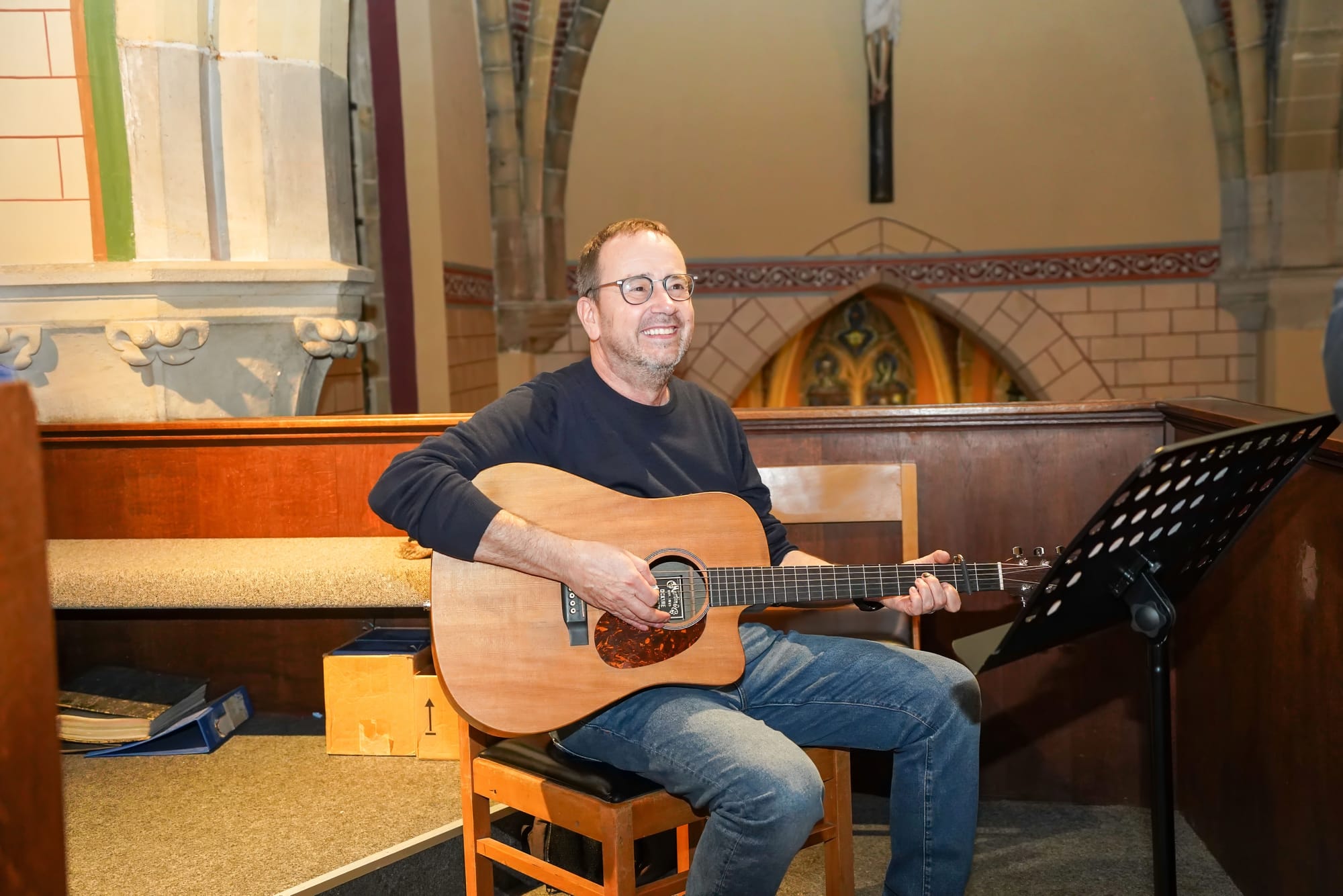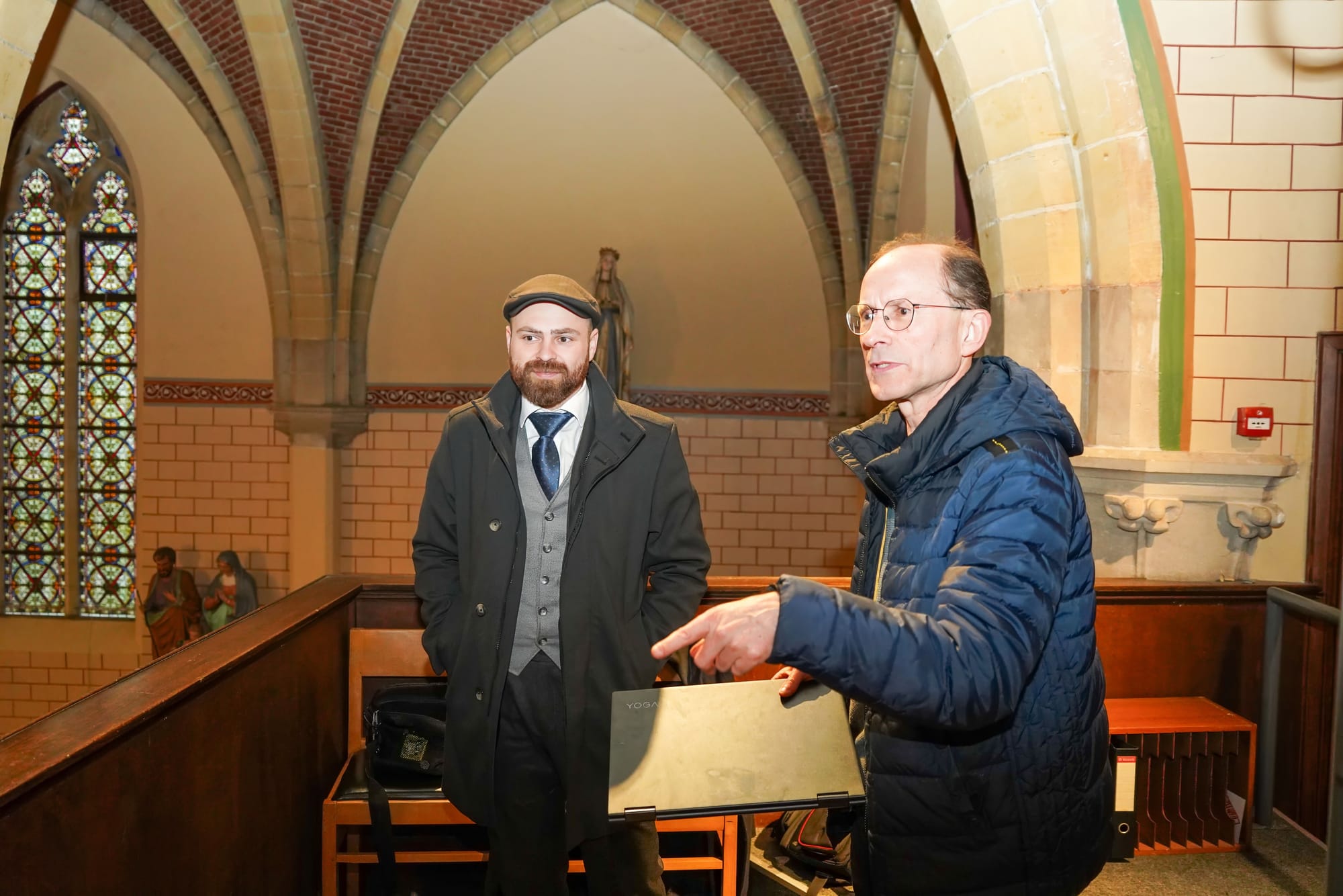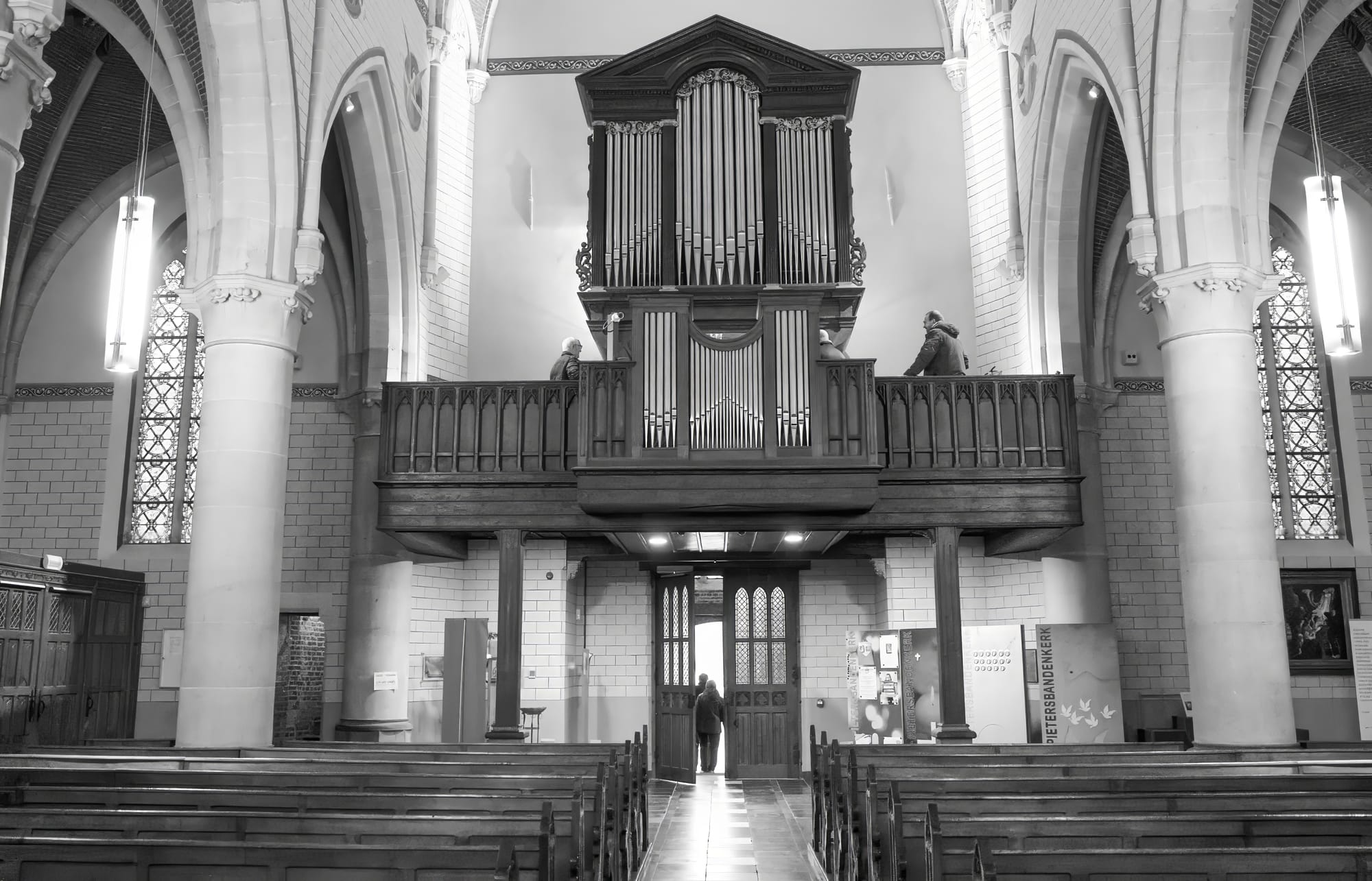 Er kwamen wel wat kinderen op af die liever niet op de foto gingen, maar er waren ook twee volwassenen van koor Lokomotief die zongen en gitaar speelden, en die we dus wél op foto en video hebben vastgelegd... En zélfs onze fotografe waagde zich (even) aan het orgel!