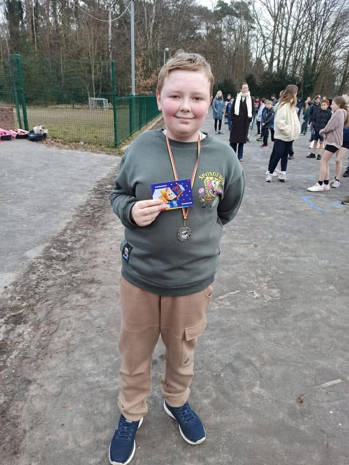 Nathan van groep 18 verzamelde in zijn eentje het hoogste bedrag, hij viel ook in de prijzen. Net zoals Sterre (groep 20), Lex (groep 10), Kylian (groep 11) en Matz (groep 19). Zij liepen ieder 11 rondjes van 325 meter en dit op 20 minuten tijd. Ze waren hiermee de snelste lopers van de hele school.
