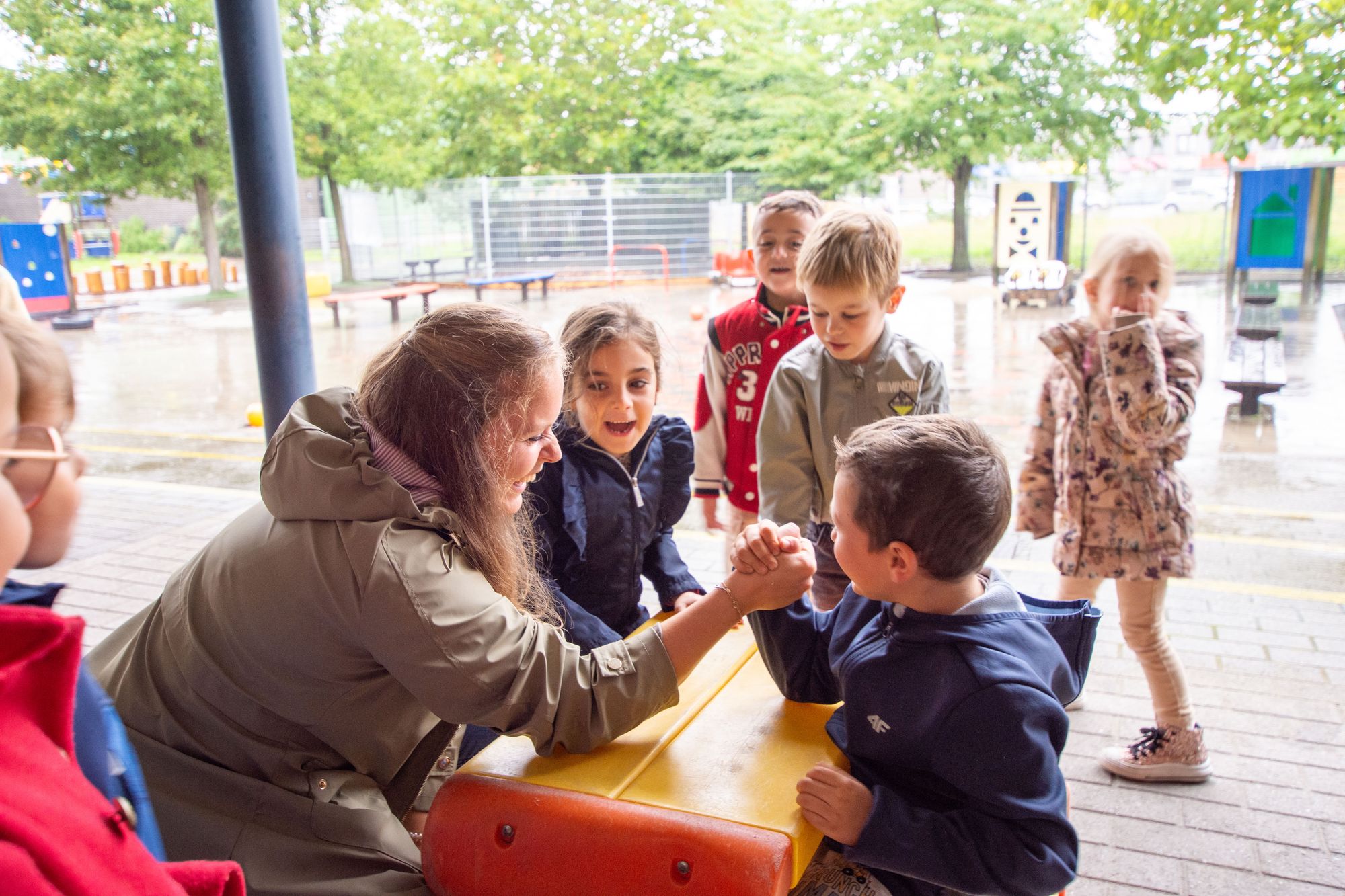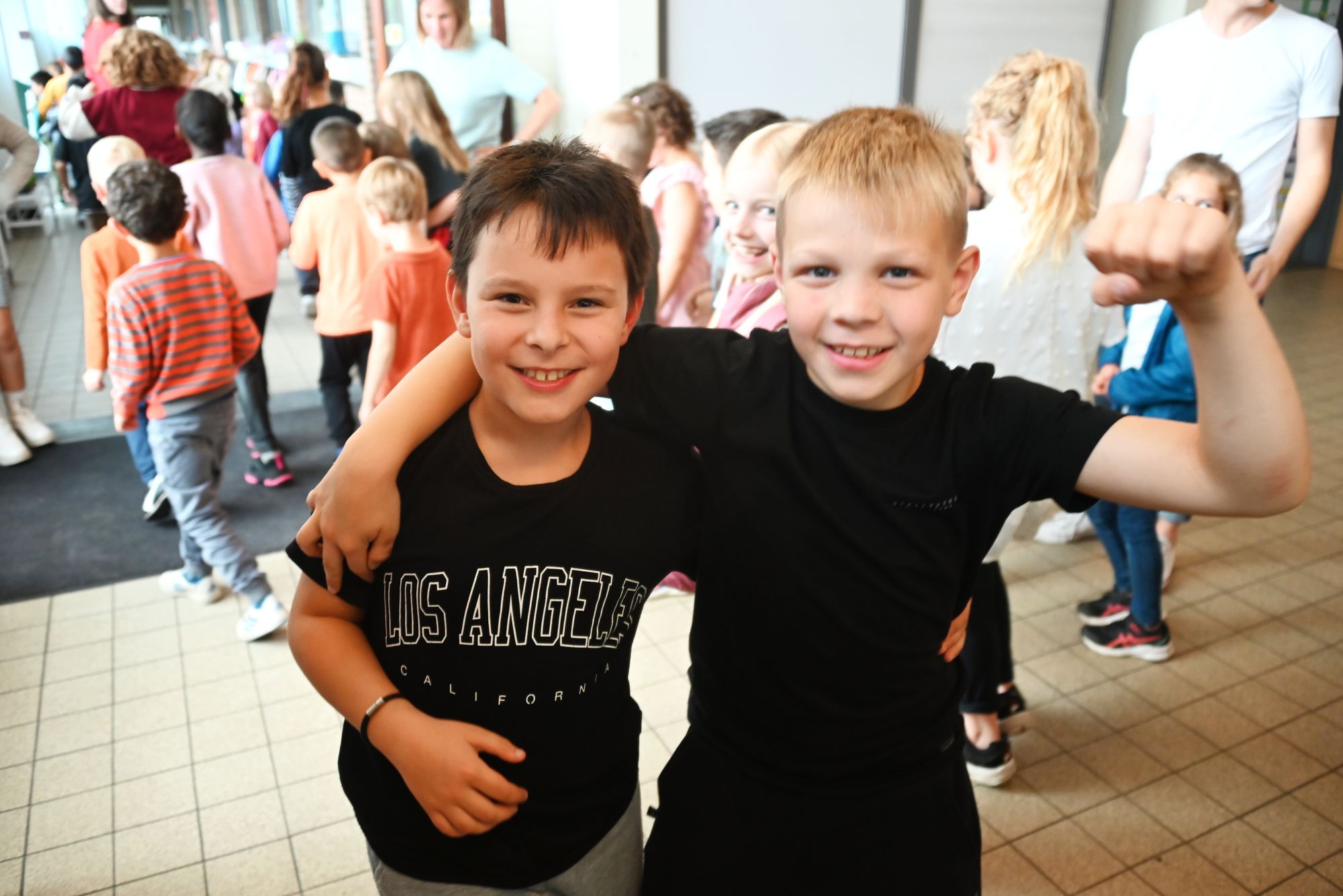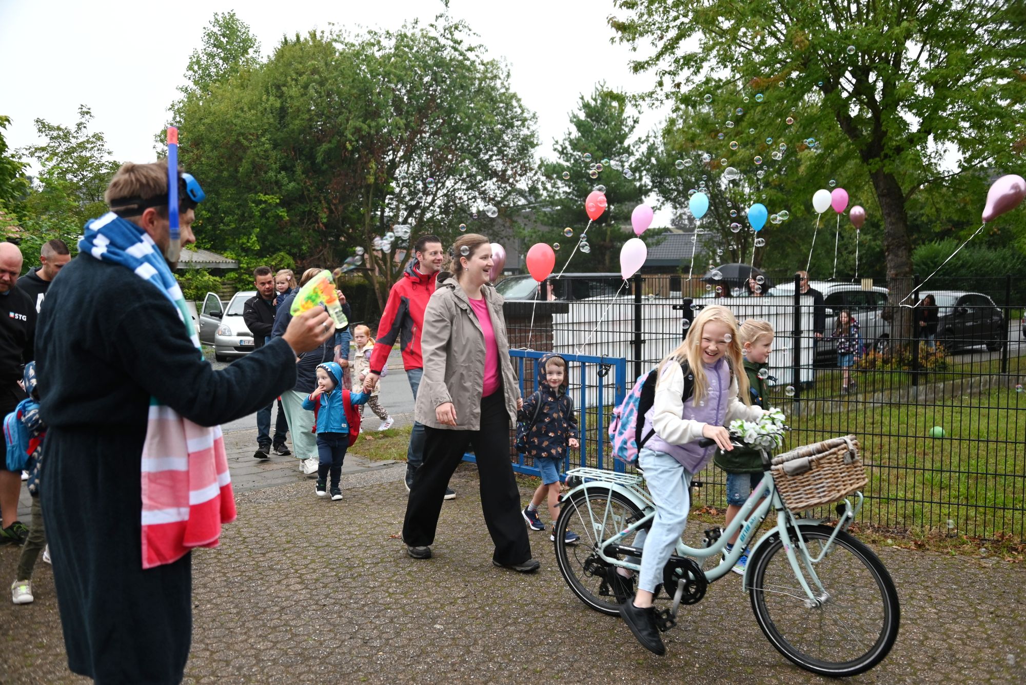 "In onze school is er geen lerarentekort en gelukkig maar. Iedereen staat hier paraat om alle kinderen op een leuke manier te ontvangen. We blazen letterlijk het nieuwe schooljaar in."