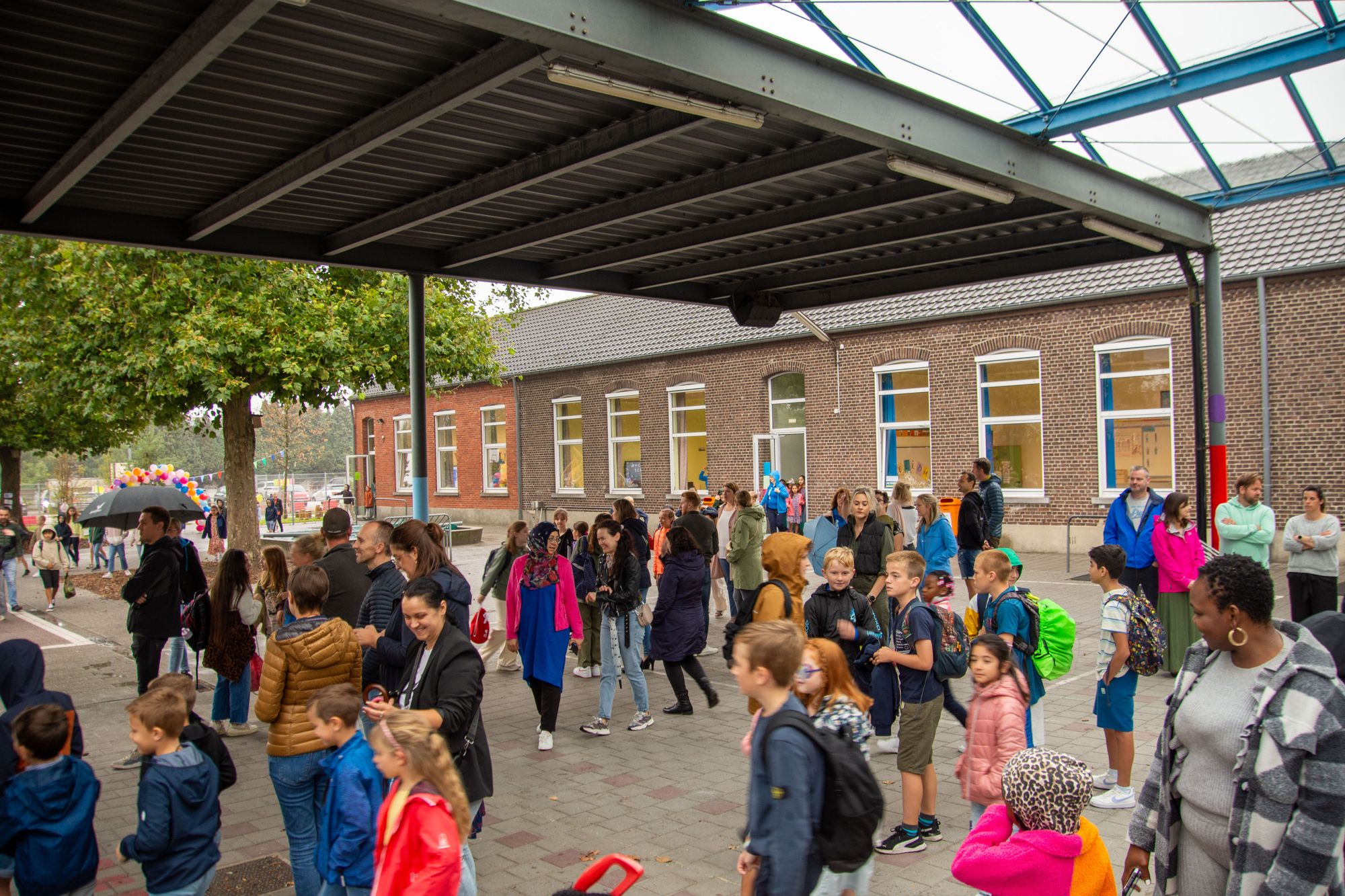 We waren dus ook te gast in 'De Speling', en ook in de kleuter en lagere school aldaar zijn ze vanmorgen gestart in de regen Maar de kinderen hadden er wel zin in ze kregen allemaal een puzzelstukje en als die oke was zouden alle kinderen er moeten zijn.