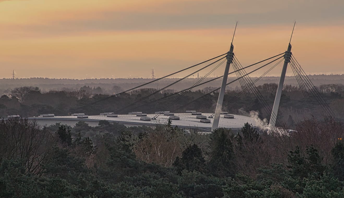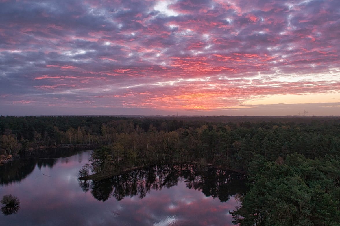 In de vroege ochtend sta ik op de uitkijktoren van de Lommelse Sahara. De kou is scherp maar stil, een koude die niet bijt maar blijft hangen, alsof ze deel wil uitmaken van het landschap.