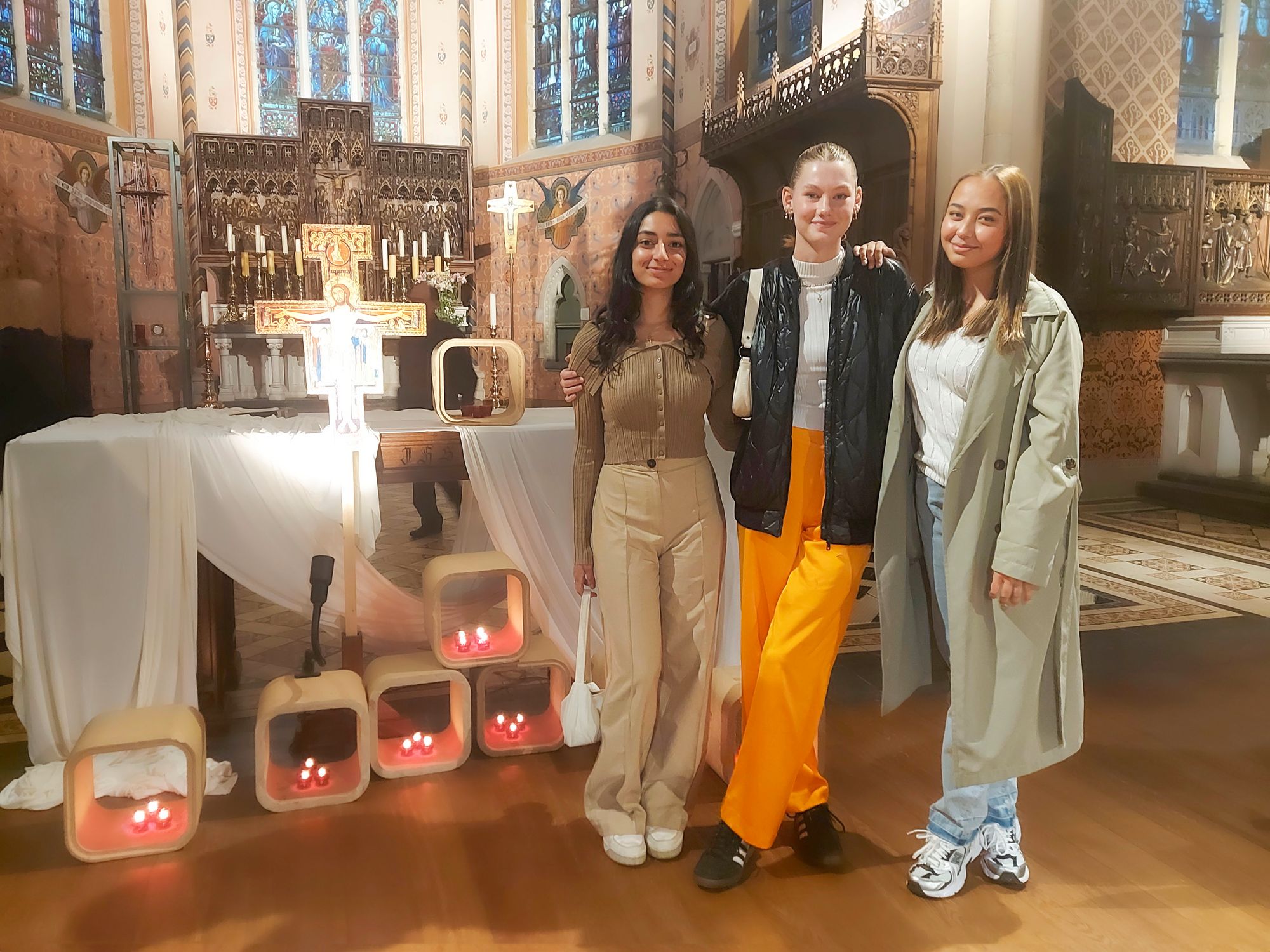 Dit Taizégebed is voor mensen van alle leeftijden, van oud tot jong. Onder de jongeren mochten ze ook drie deelneemsters aan de wereldjongerendagen in Lissabon verwelkomen (eerste foto onderaan). Deze bijeenkomst werkt verbindend: mensen uit Lommel, Hechtel-Eksel, Pelt, Hamont, Peer en Mol waren aanwezig.