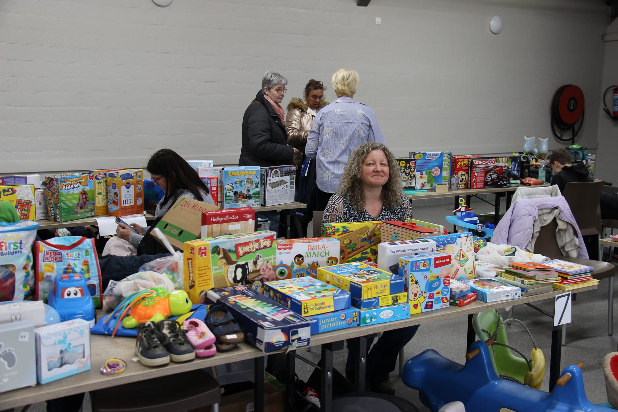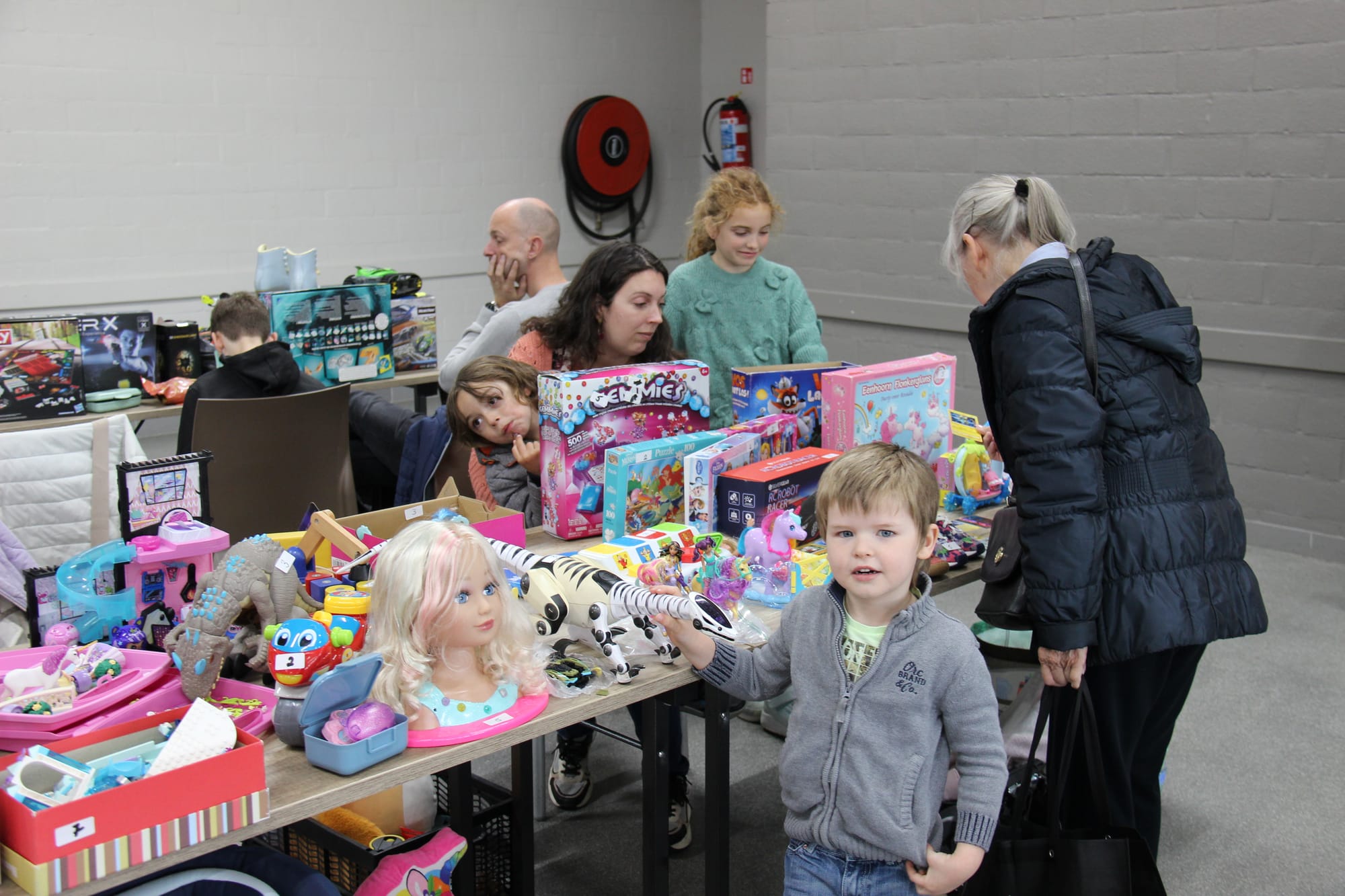 De Gezinsbond organiseerde vanmiddag een tweedehandsbeurs met kinderkleding en speelgoed. Op deze tweedehandsbeurs was te koop: allerlei kinderkleding voor baby’s, kleuters en kinderen tot 12 jaar, duurzaam babymateriaal, kinderwagens, buggy, park, ... en allerlei speelgoed voor binnen en buiten. Tijdens de beurs kon je in het cafetaria terecht voor een drankje en taart. Er was redelijk wat volk komen opdagen, en één bepaalde tafel (met Hotwheels...) was al zeer snel in één keer door één iemand volledig opgekocht!