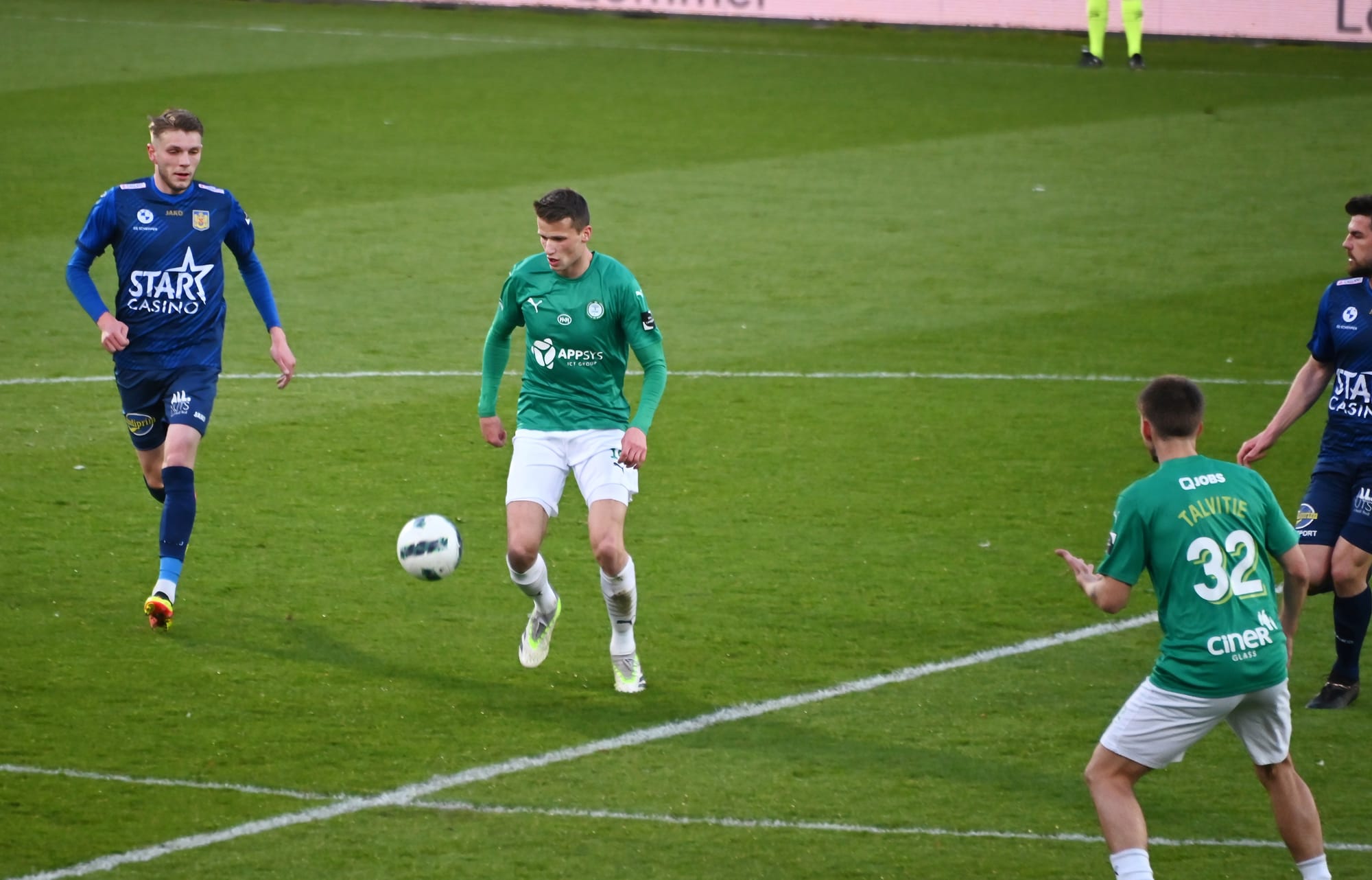 De aftrap werd gegeven door Lommels veldritfenomeen Laura Verdonschot. Na amper 5 minuten stond het al 1-0 voor Lommel na een snelle aanval, een goeie actie van Talvitie waardoor de bal eerst tegen de lat ging door toedoen van een verdediger van Beveren, maar in de rebound scoorde Vancsa onhoudbaar de 1-0. En ondertussen kwam Beveren amper over de middellijn, tot aan de 18de minuut toen ze dan toch een klein kansje kregen via Servais. Maar De Busser stond op de goeie plaats… En in de tegenaanval zagen we een goede voorzet van Talvitie, maar Reus haalde het gevaar weg. In de 26ste minuut zagen we nog een gekraakt schot van Granell, maar het ‘heilige vuur’ van de aanvangsminuten was wel wat weggeëbd ondertussen. En zo bleef het tot aan de rust… Een rust waarbij wij eens gingen kijken wat de twee grootste concurrenten deden op dat ogenblik, en Dender… die stonden voor met 0-2 terwijl Deinze op 0-1 stond. Virtueel Dender dus rechtstreeks naar 1A en Lommel dat viede zou zijn, en dus tegen de vijfde moet uitkomen voor die derde stijgersplaats.