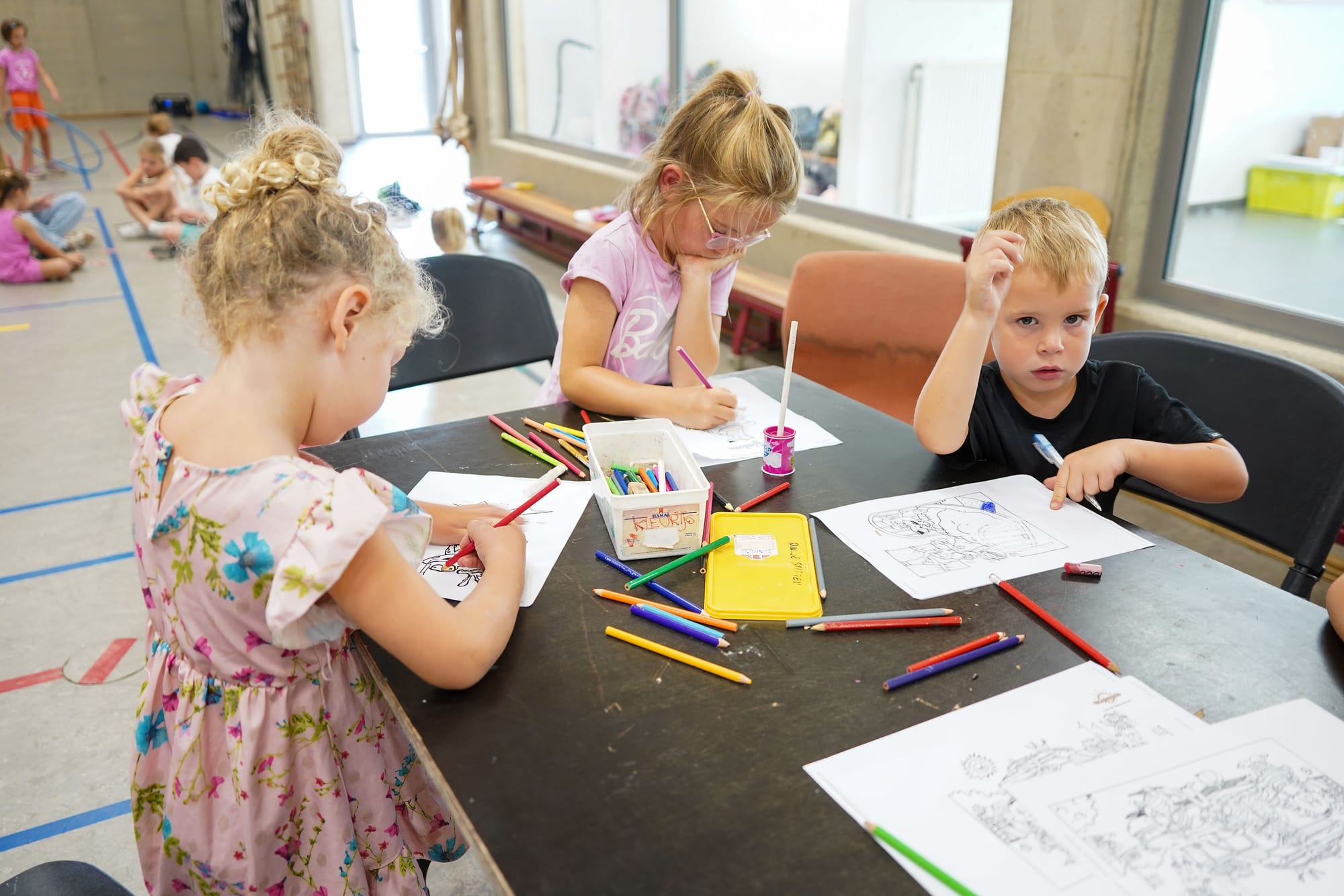 Vandaag kon je zulk een kamp bijwonen in basisschool De Schommel op Kattenbos... Er waren twee groepen, de kleuters en de 7 tot 12-jarigen.