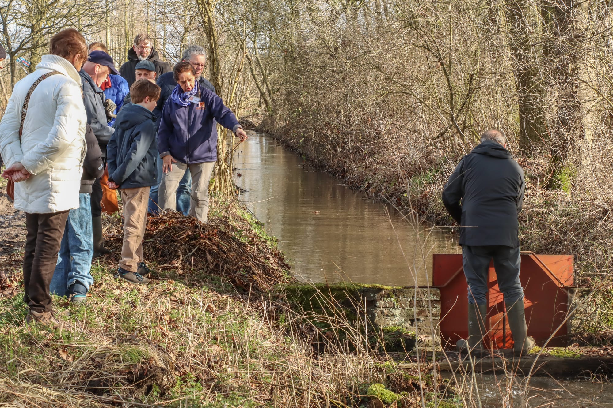 Dit jaar werd ervoor gekozen om de grote groep op te splitsen ; een groep volwassenen en een groep die bestond uit verschillende gezinnen met kinderen. Ook dit jaar ging Dirk Delchambre met de groep volwassenen op pad. Hij nam hen met veel enthousiasme en kennis van zaken mee in het verhaal van de vloeiweiden: van de geologische oorsprong tot het ontstaan van het ‘witteren’, een eeuwenoude landbouwtechniek uit de vroege middeleeuwen die vandaag erkend is door UNESCO als Immaterieel Cultureel Erfgoed van de Mensheid.