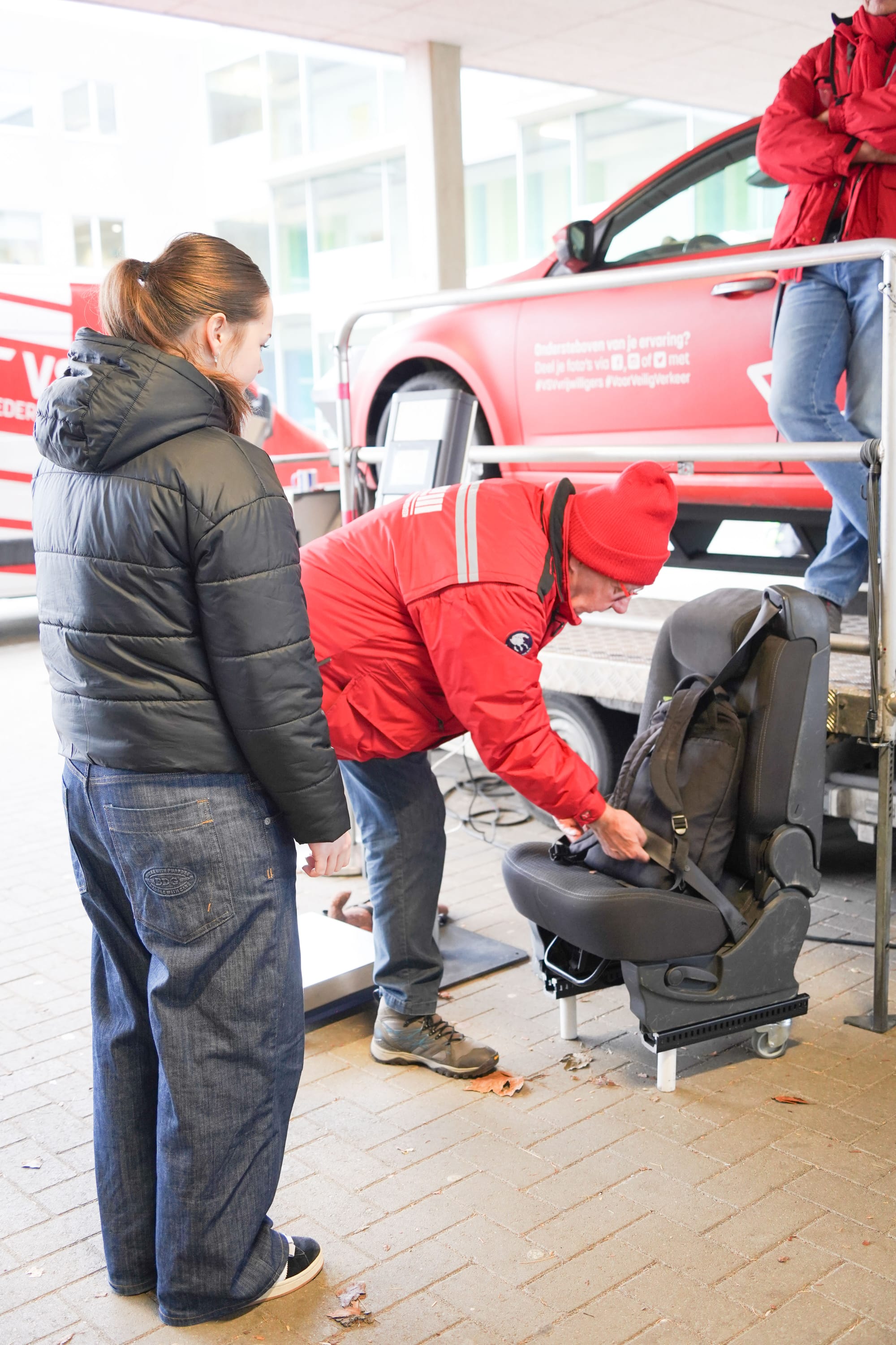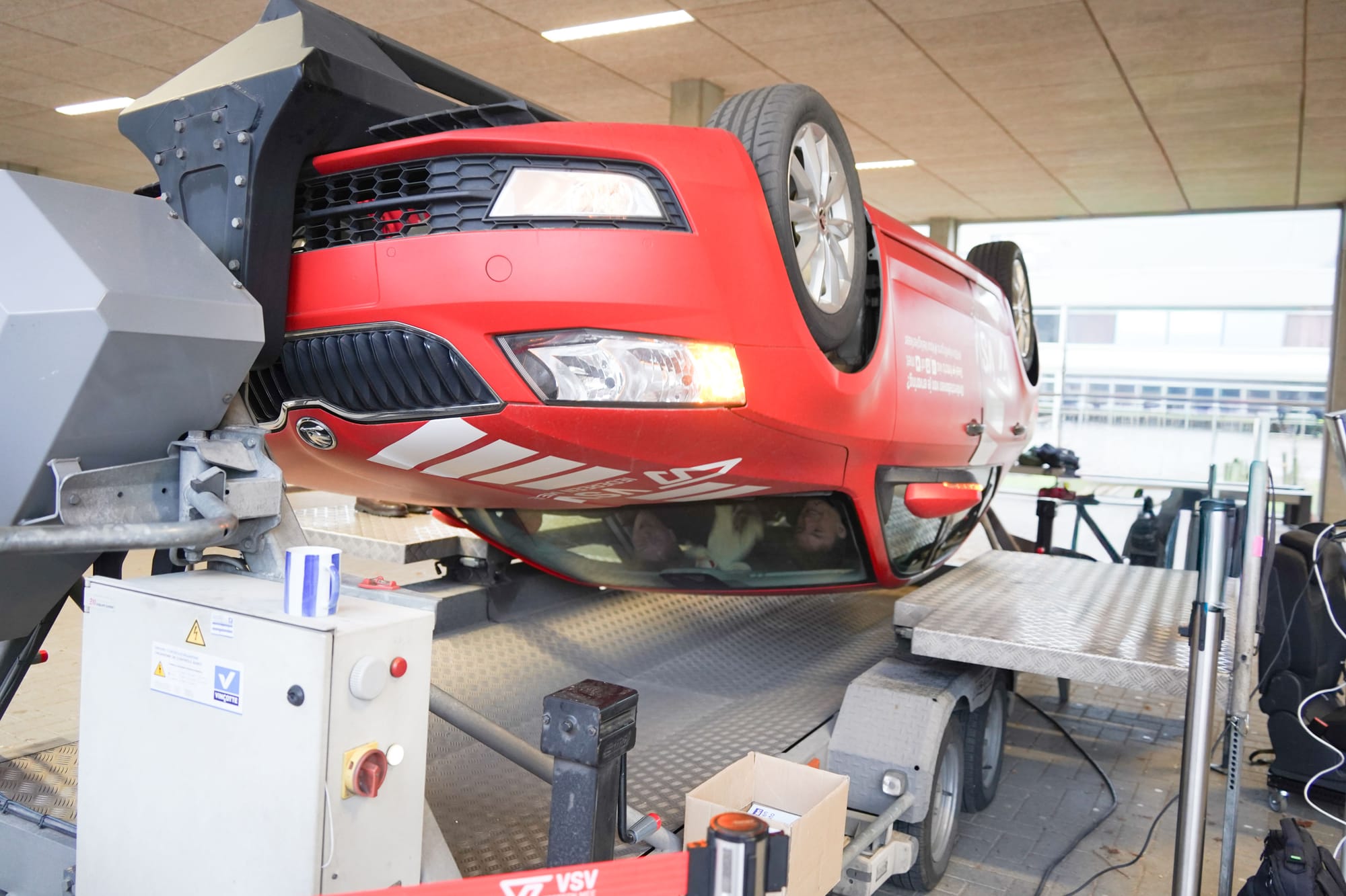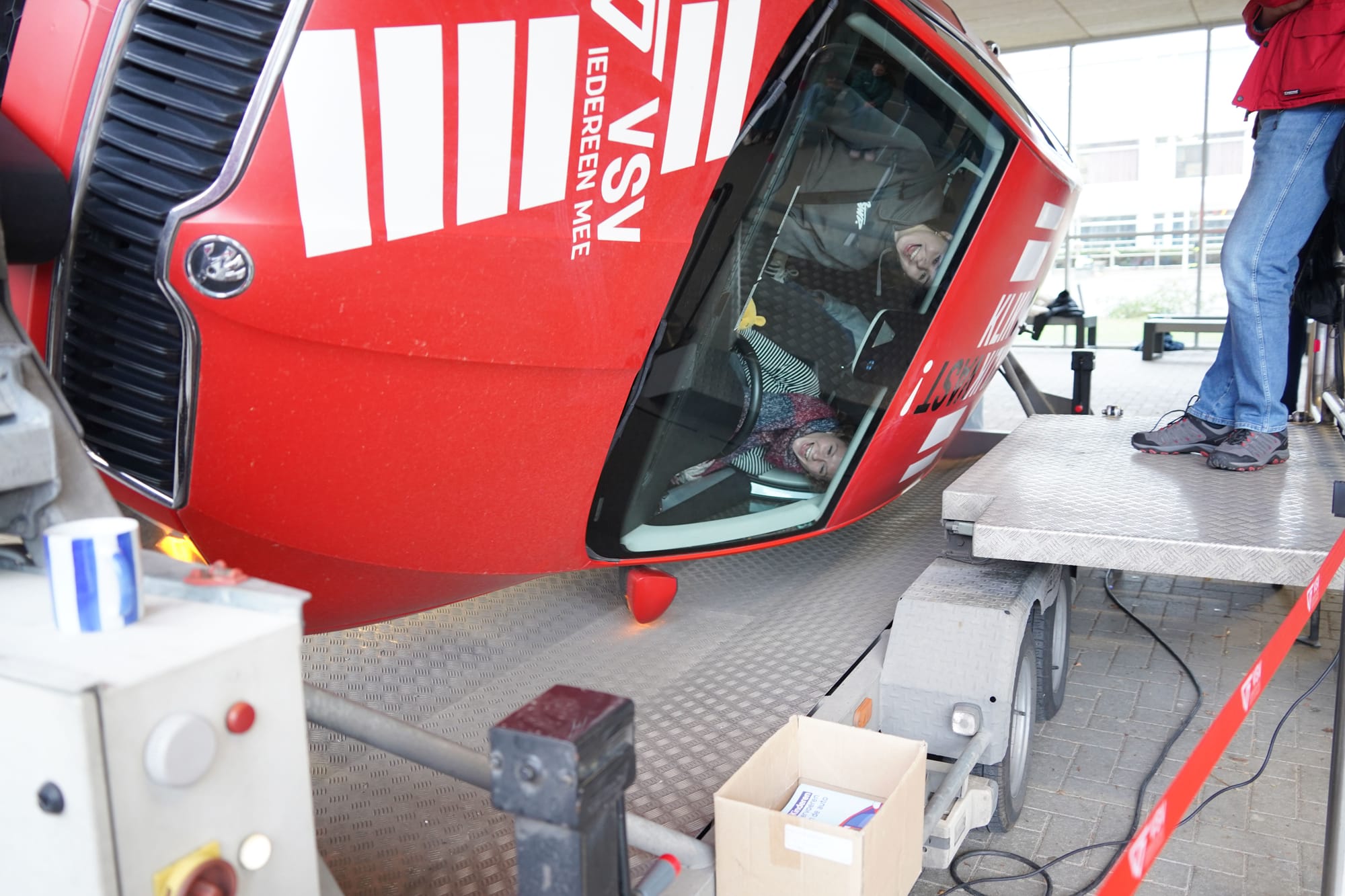 Dit was wellicht de 'spectaculairste' workshop van allemaal, want op geen enkele andere manier kan je zo overtuigd zijn van het nut van de veiligheidsgordel als na het bezoek aan de tuimelwagen. Het belang van een simpele klik vergeet je nooit meer, nadat je een paar keer overkop ging in deze simulator.