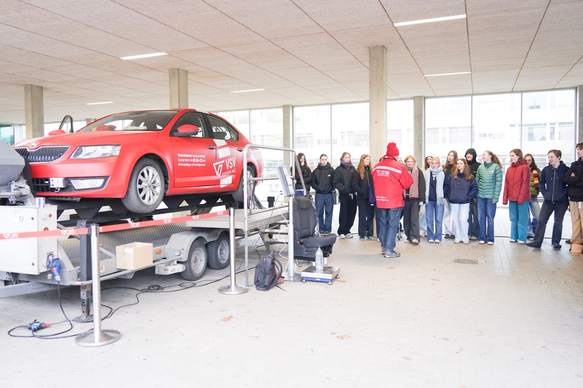 In de toekomst zul je ook geen losse voorwerpen meer in de auto laten slingeren. Want dat gevaar wordt snel duidelijk aan de hand van zacht losliggend materiaal in de tuimelwagen. De impactweegschaal die bij deze module hoort, geeft een idee van hoe sterk de klap is bij een botsing.