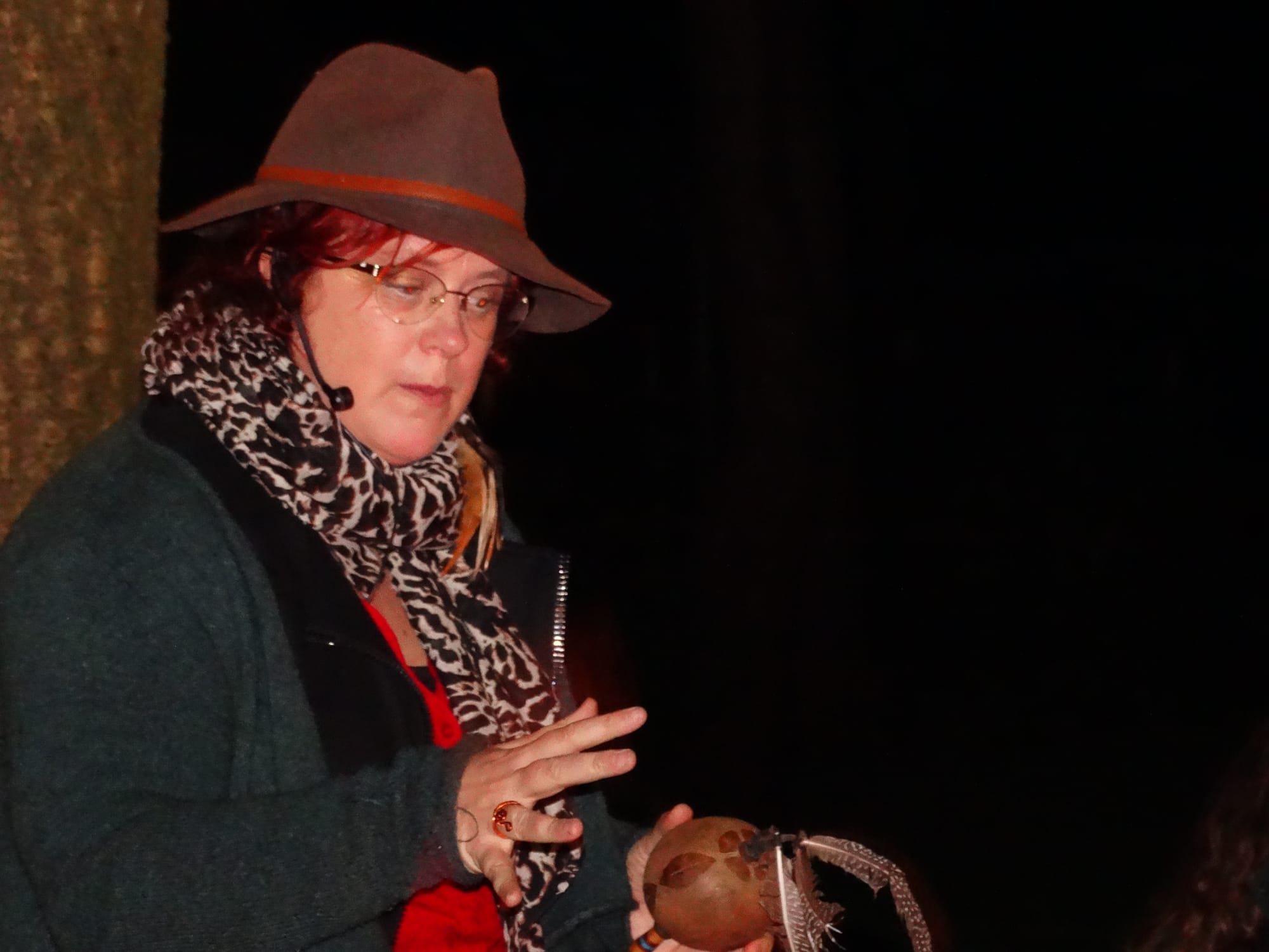 Zij bracht een oud initiatieverhaal, een meeslepend verhaal dat deuren opende naar de binnenwereld van de talrijke aanwezigen, waar alle mogelijkheden wonen. Het is een vergeten gnostisch geheim dat we ooit allemaal deel zijn geweest van een wilde tweeling, maar dat we elkaar kwijtraakten bij de geboorte en heel ons leven op zoek gaan naar onze andere helft. Rond het kampvuur werd er gereisd naar ieders wilde tweeling.