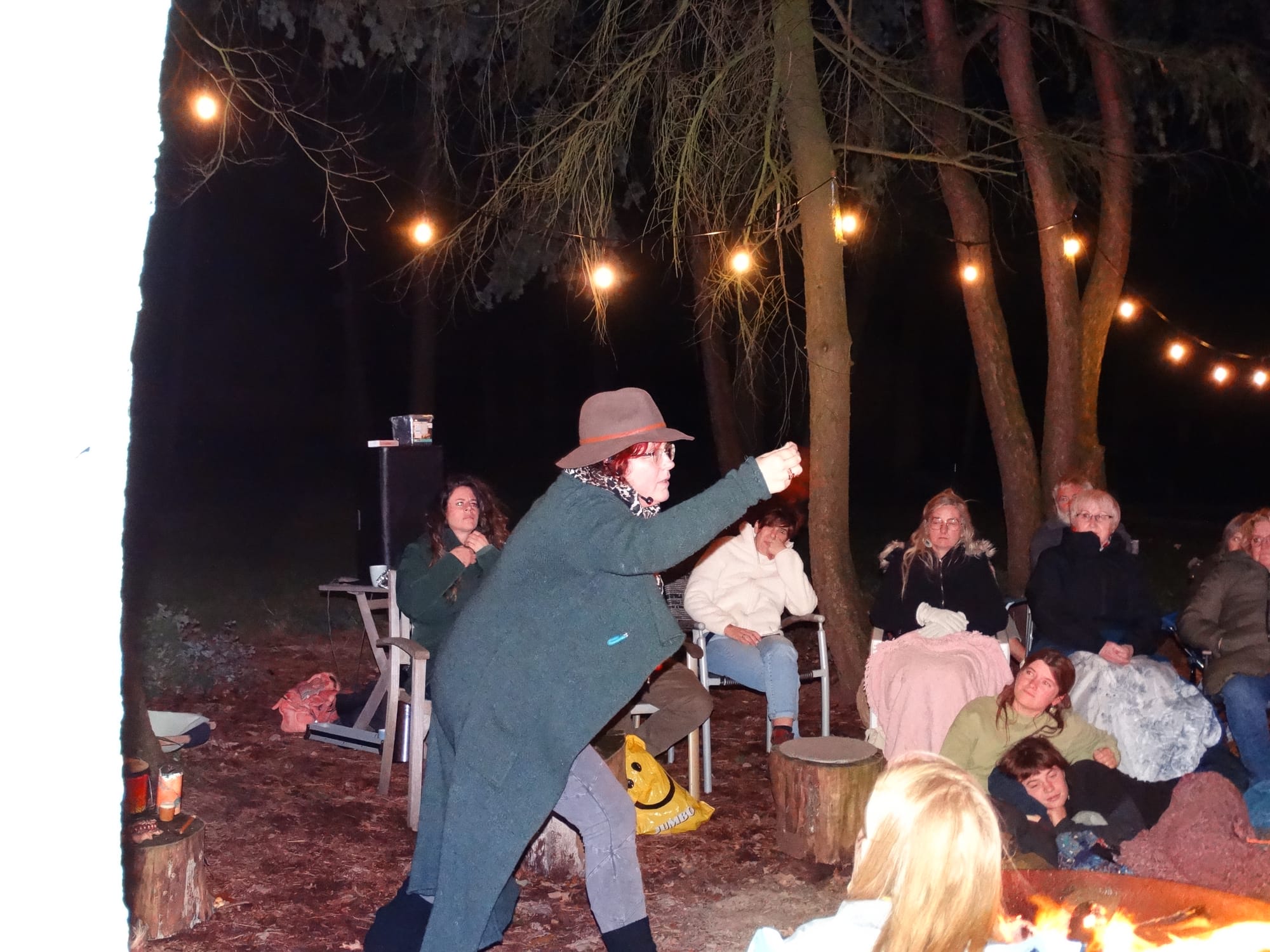 Na een erg geslaagde kampvuuravond met muziek, was het gisterenavond de beurt aan doorwinterd vertelster Lien Van Camp (Lien Wilde Wortels) om je mee te nemen in haar wereld van verhalen uit het wilde Noorden.